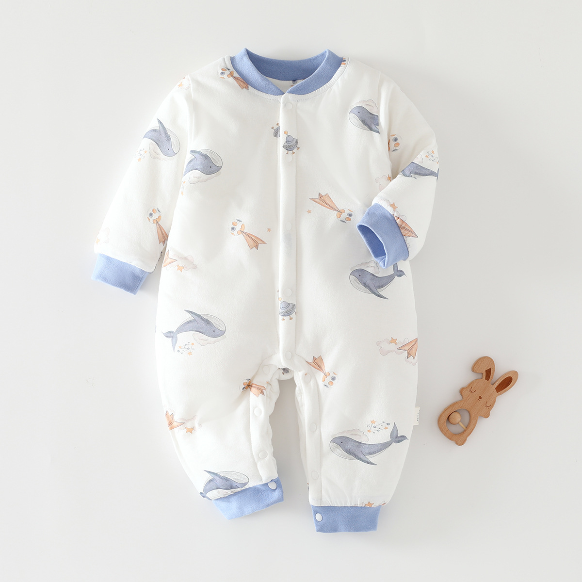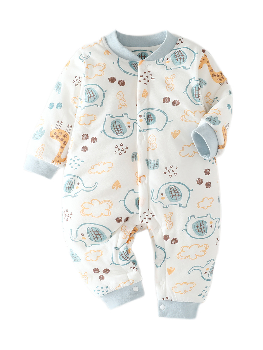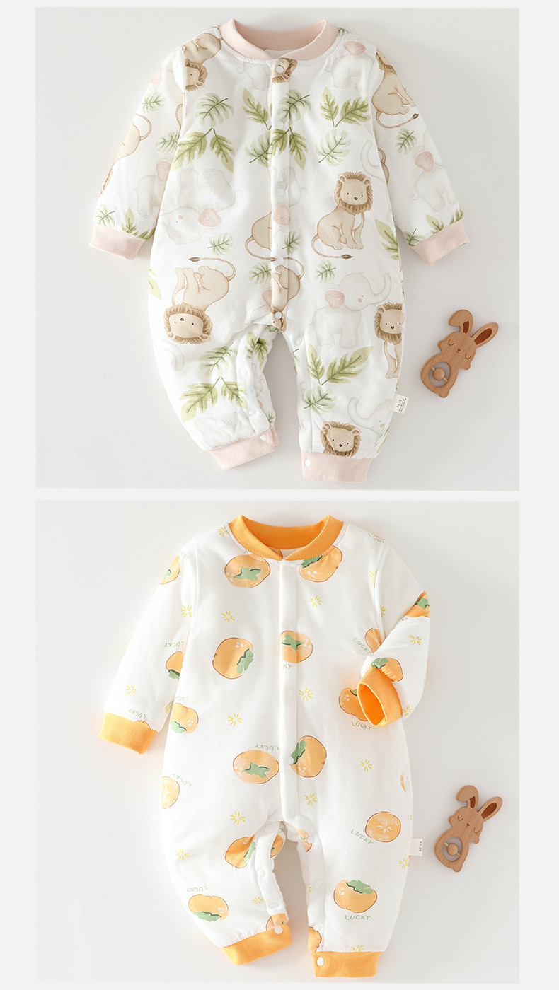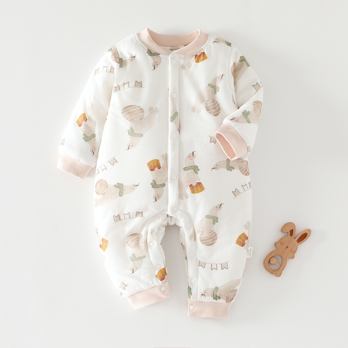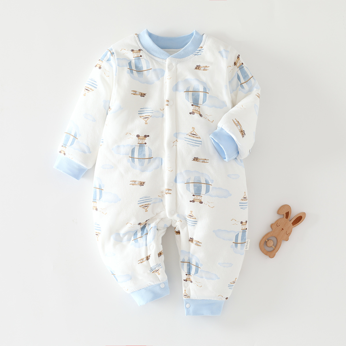 秋冬新款婴幼儿保暖连体衣150g薄棉卡通长袖闭裆哈衣男女宝宝爬服