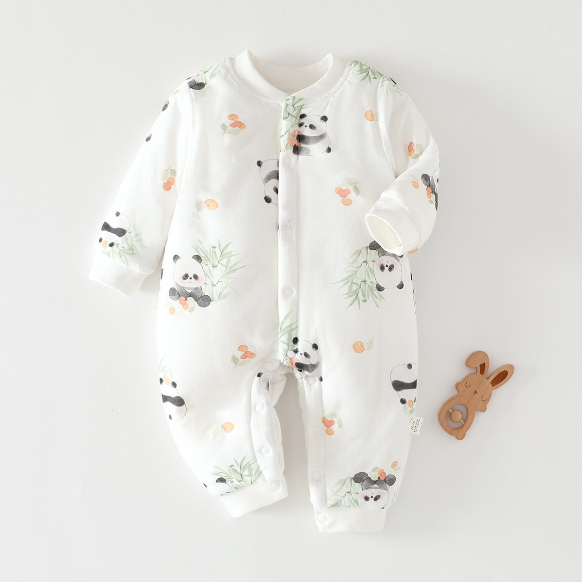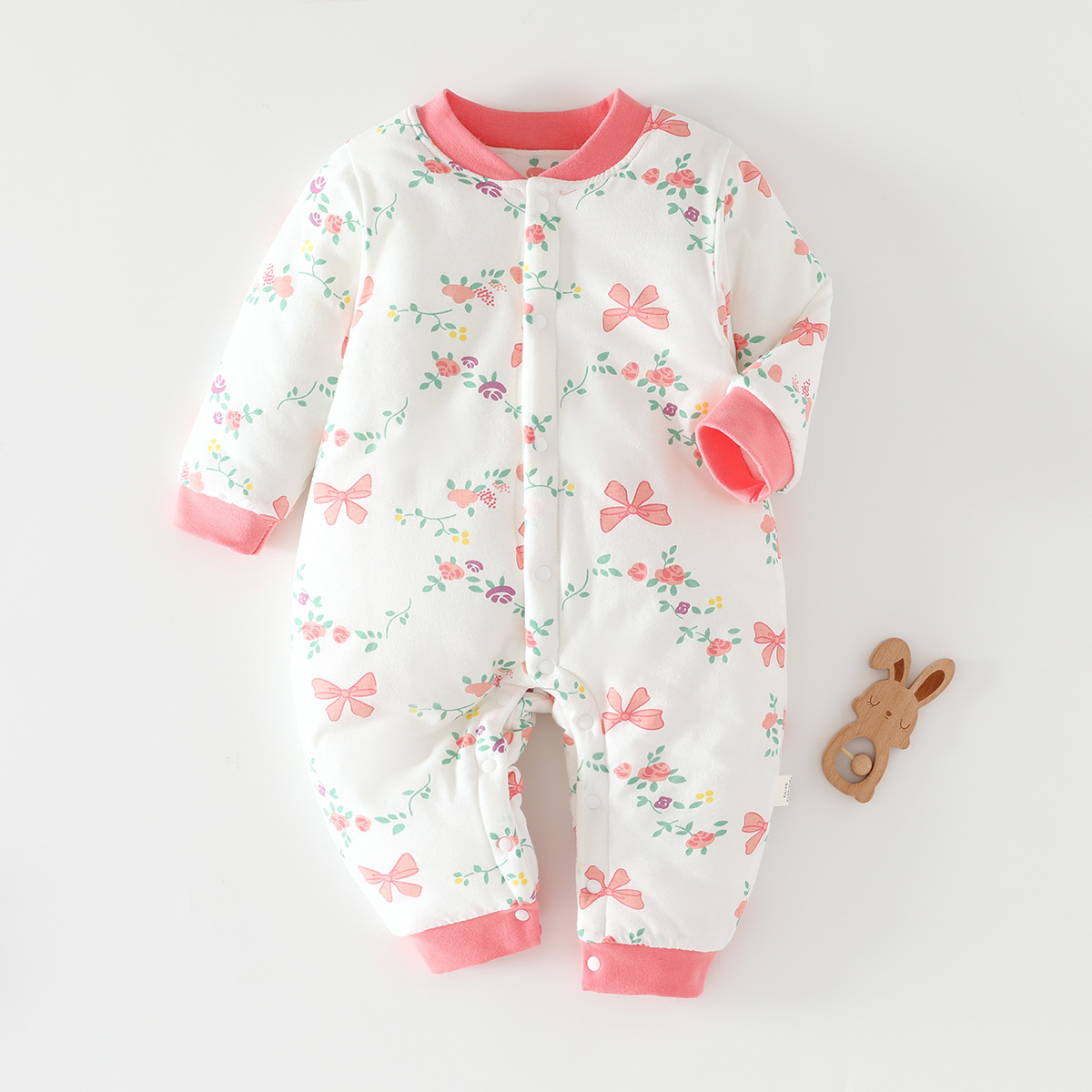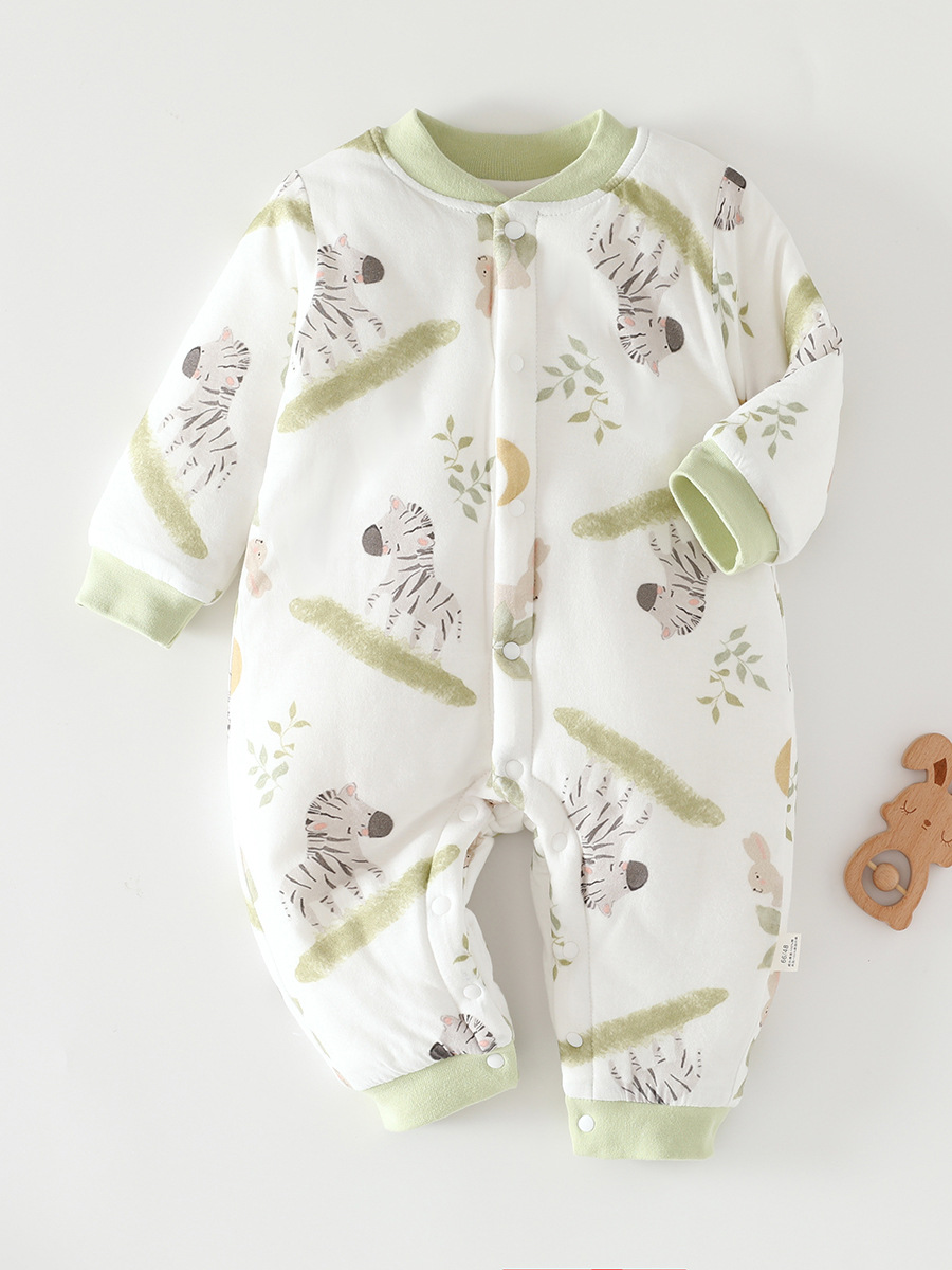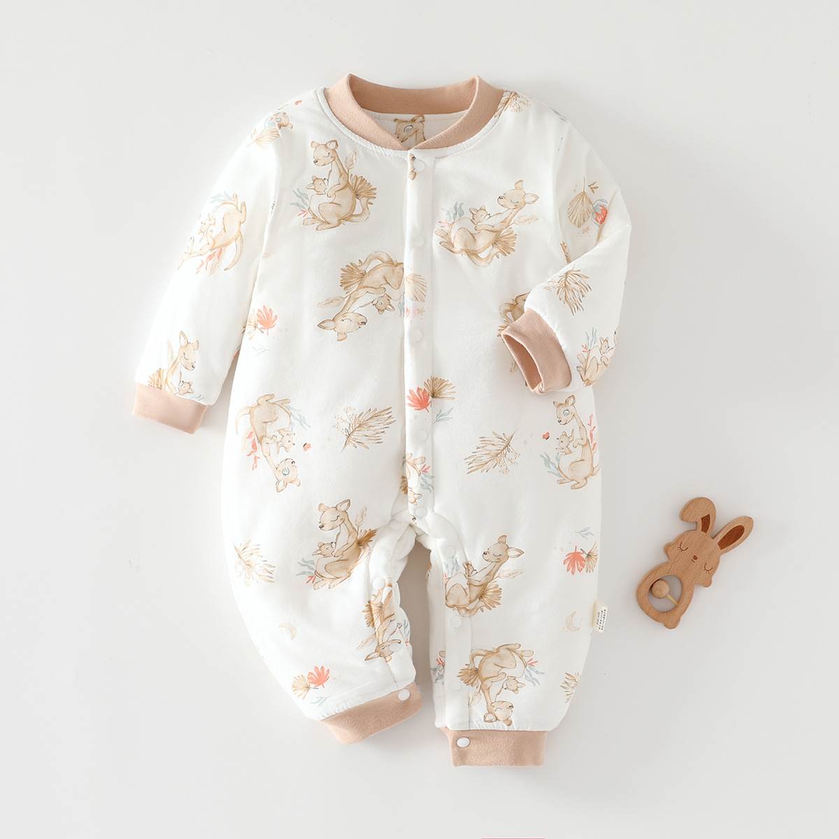 秋冬新款婴幼儿保暖连体衣150g薄棉卡通长袖闭裆哈衣男女宝宝爬服