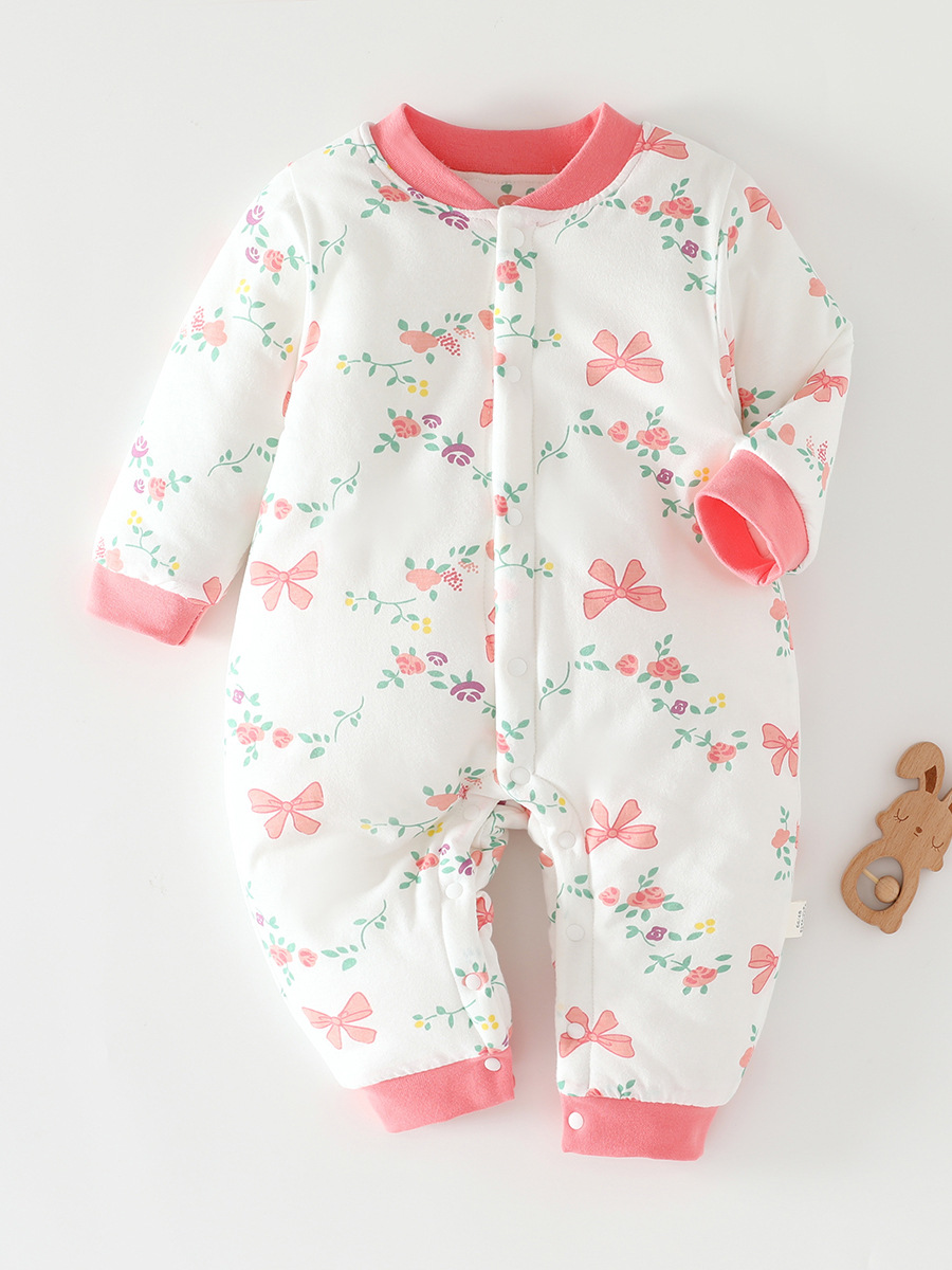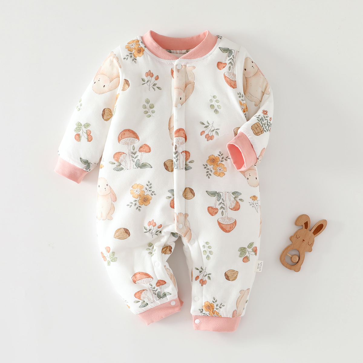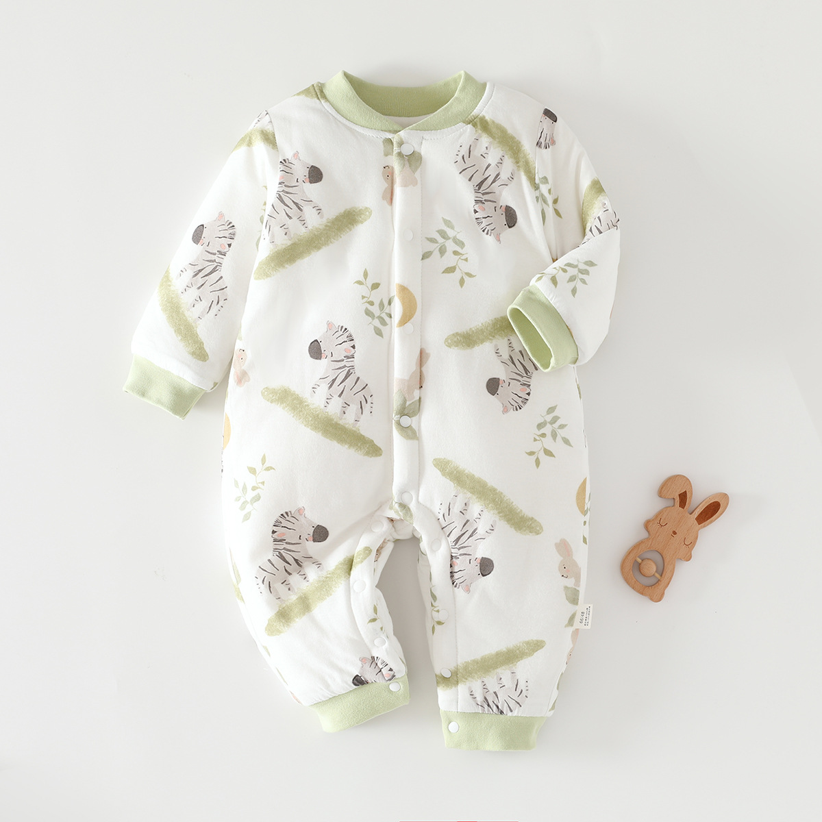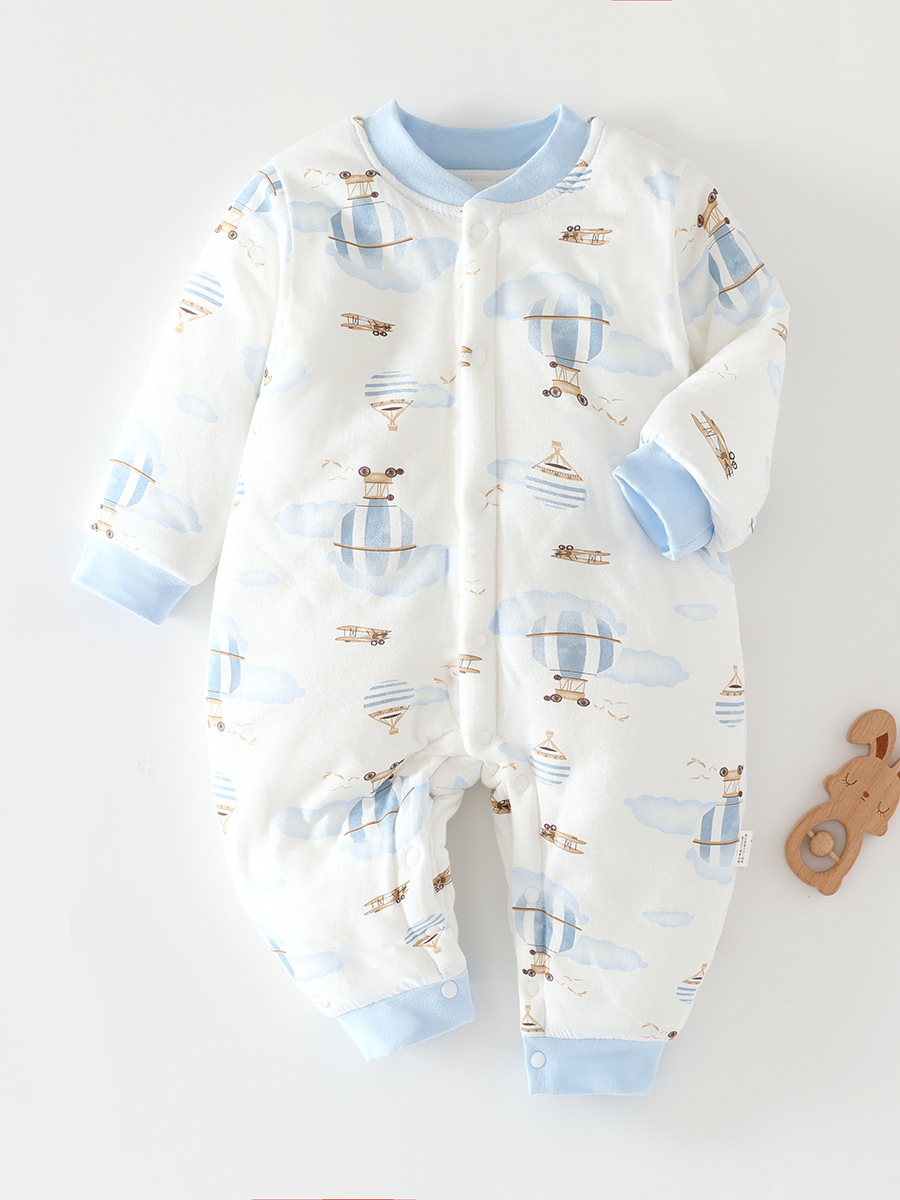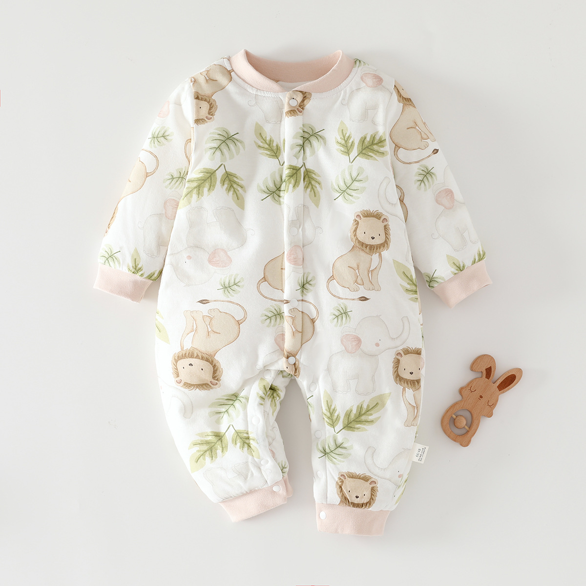 秋冬新款婴幼儿保暖连体衣150g薄棉卡通长袖闭裆哈衣男女宝宝爬服