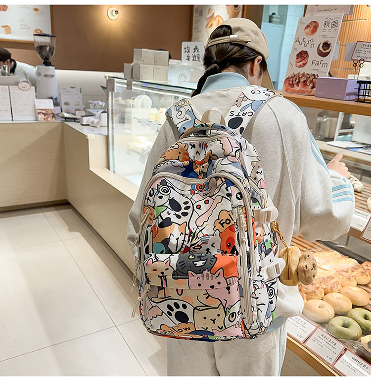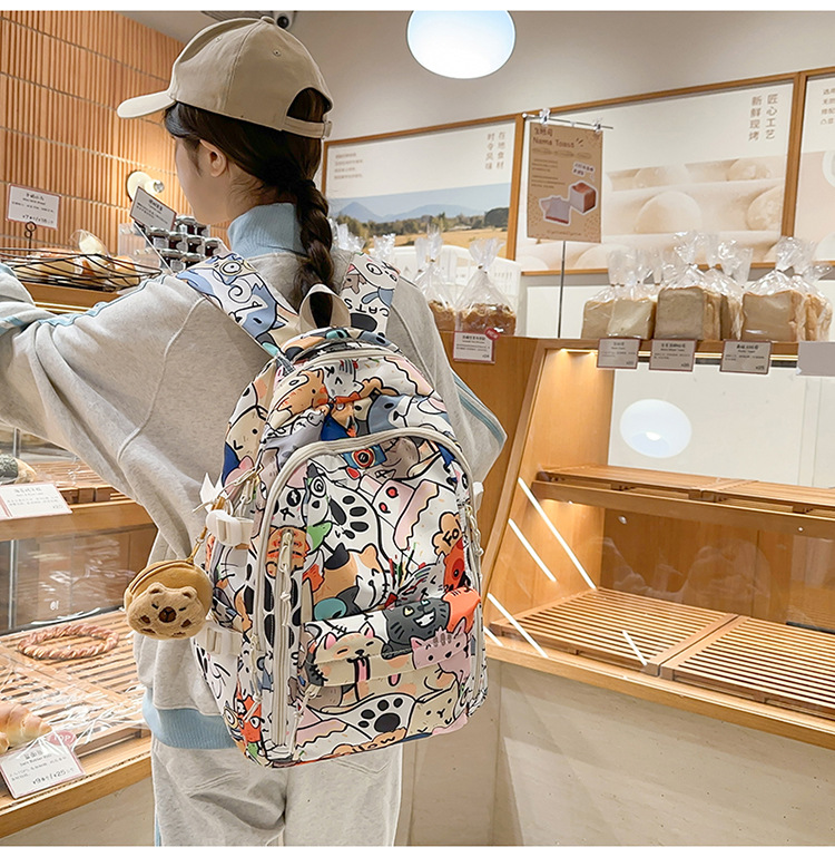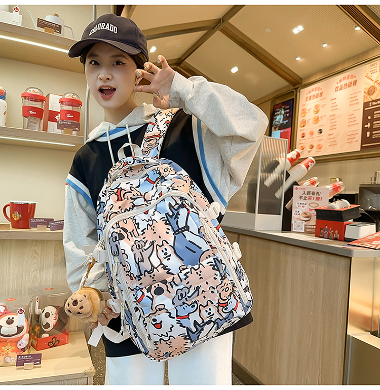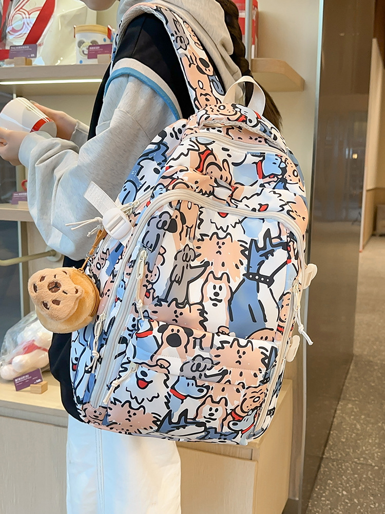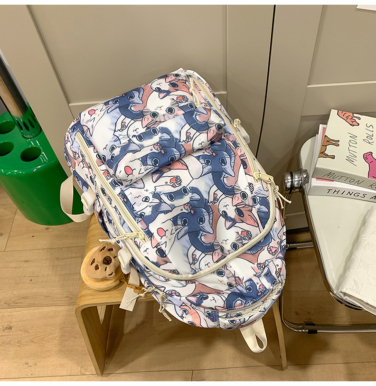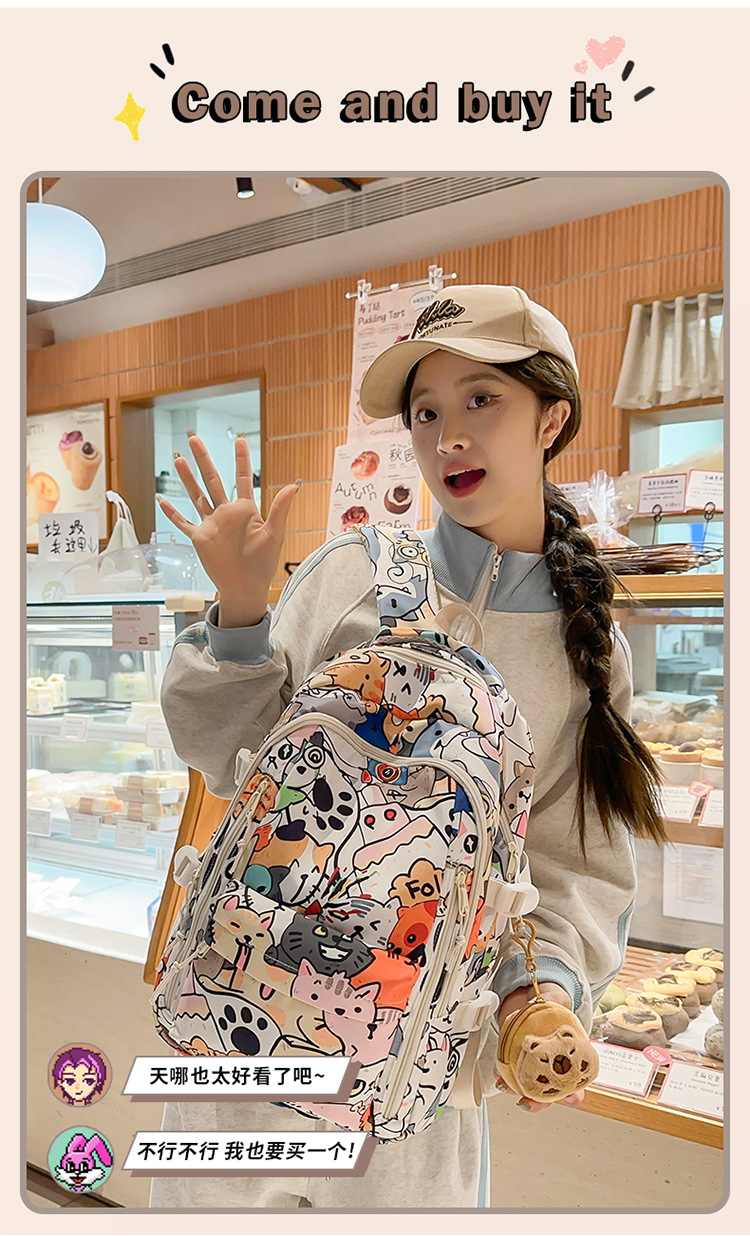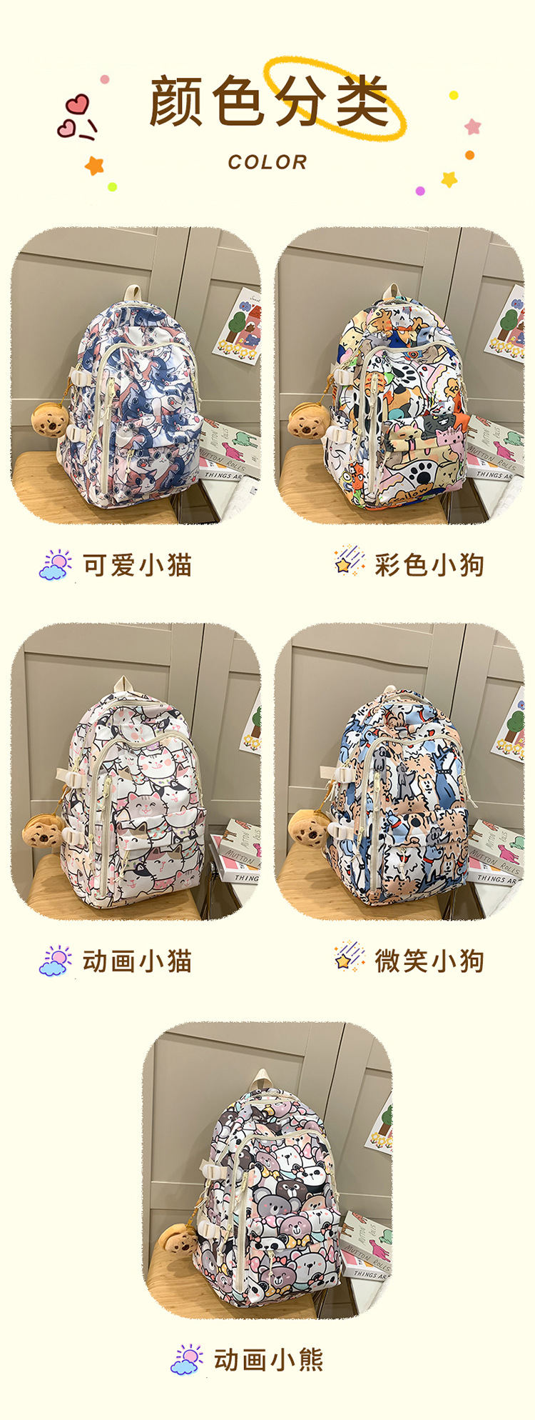 书包女ins可爱卡通印花猫咪小狗中学生双肩包