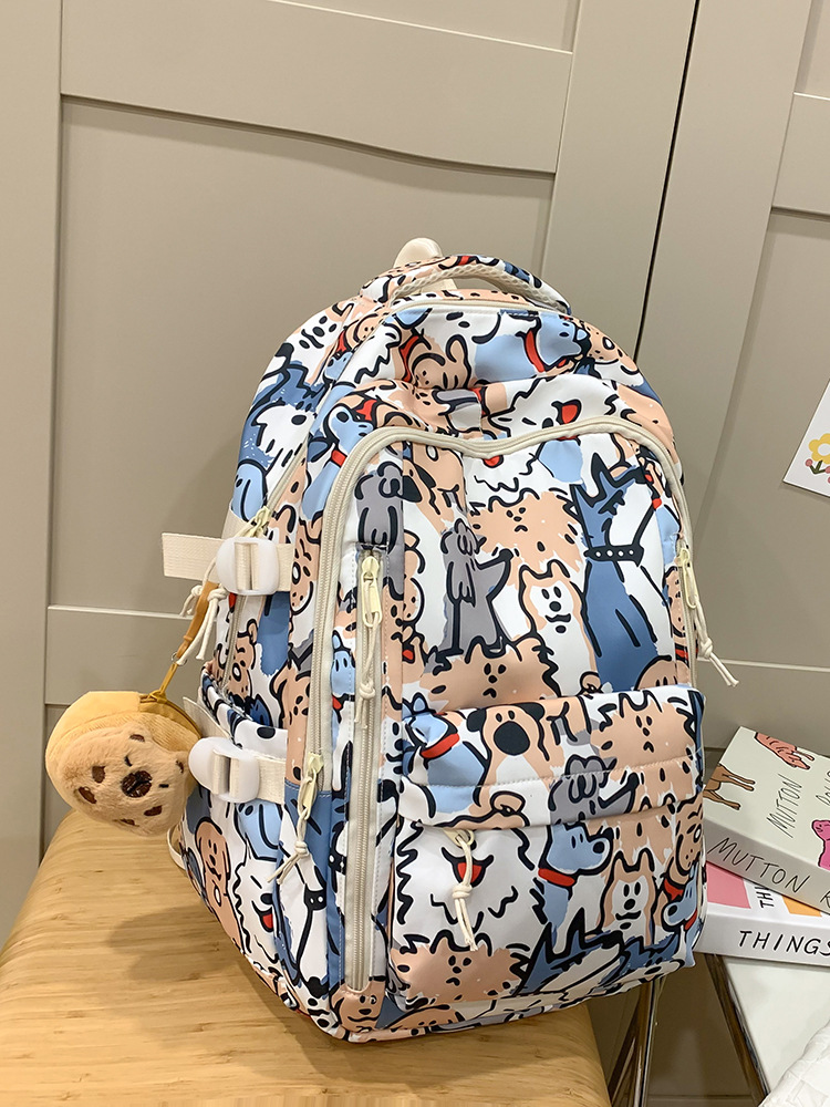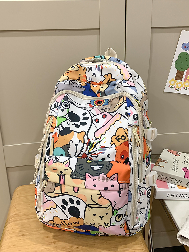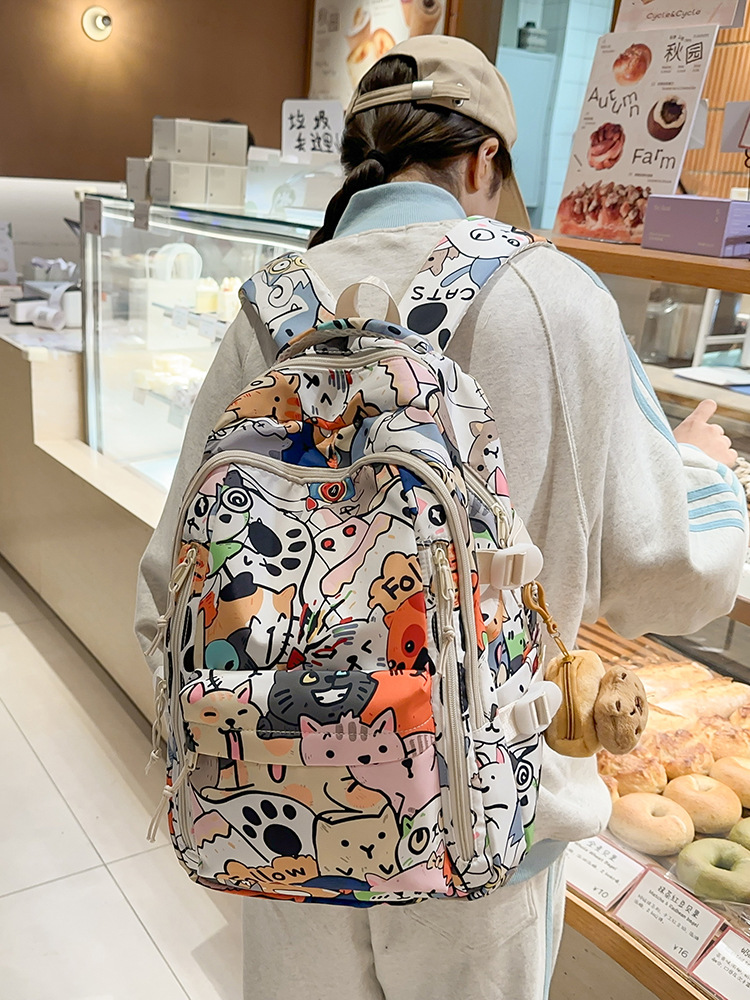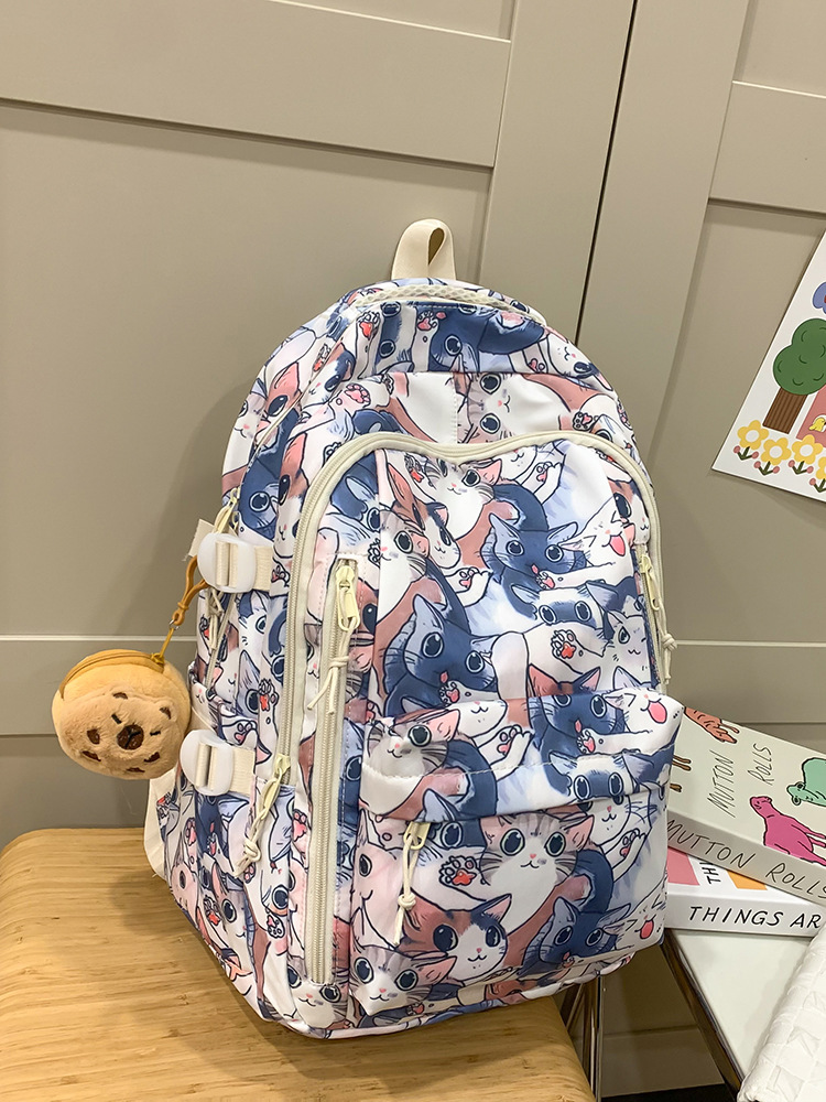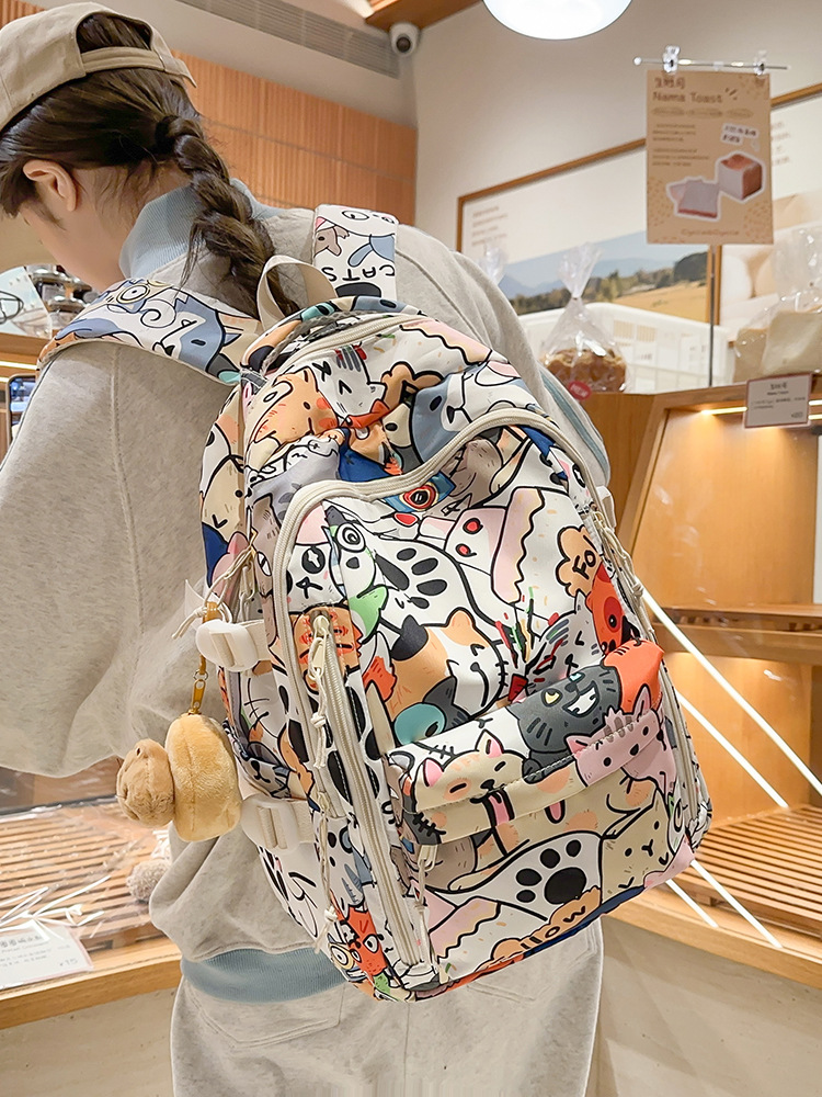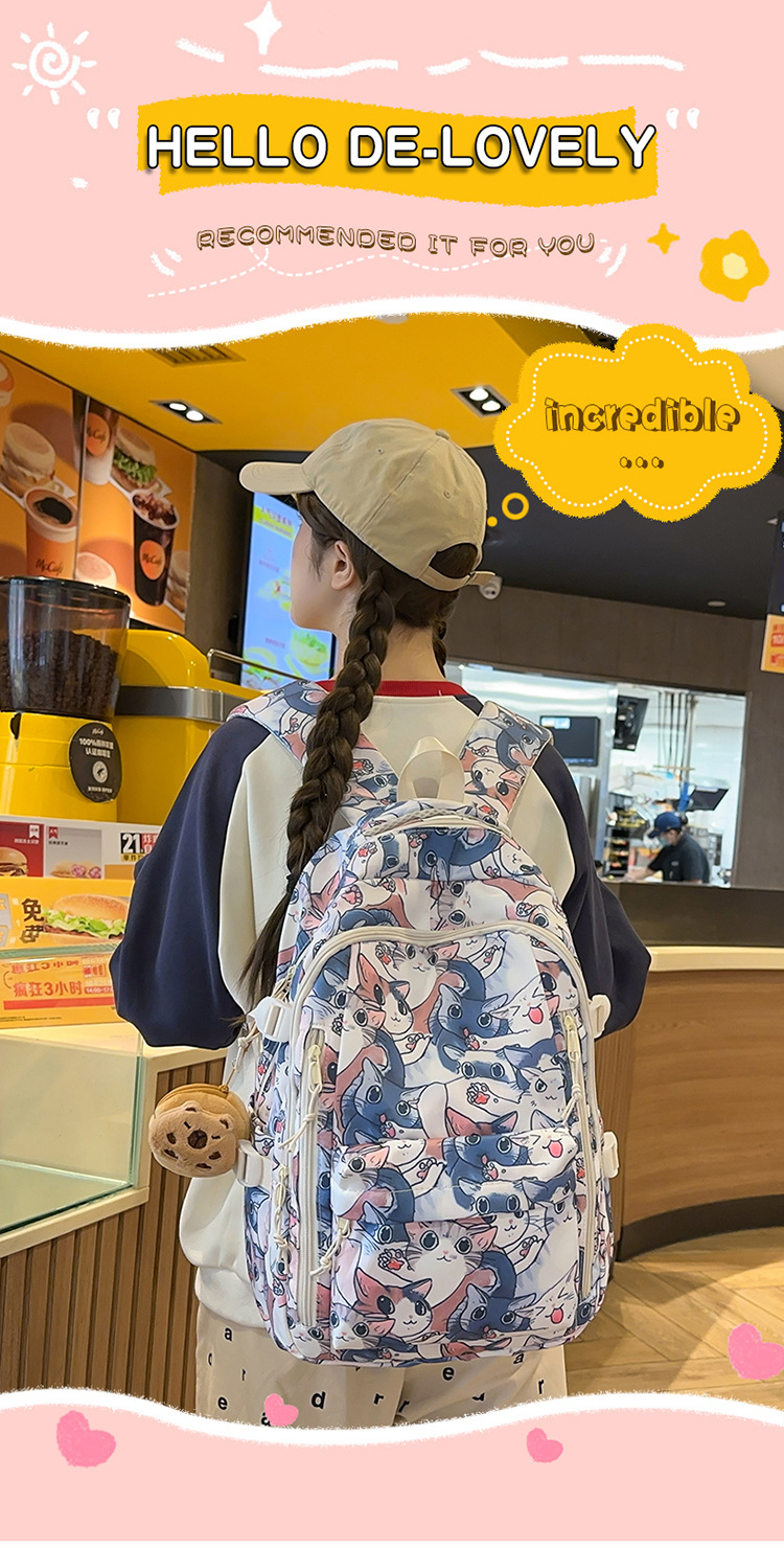 书包女ins可爱卡通印花猫咪小狗中学生双肩包