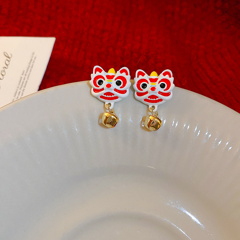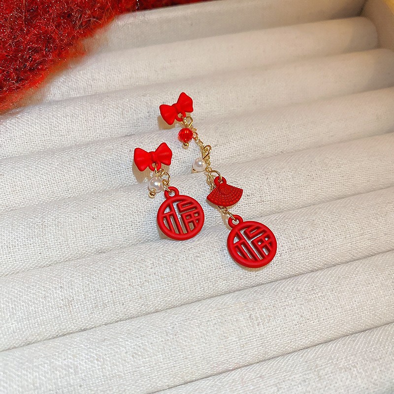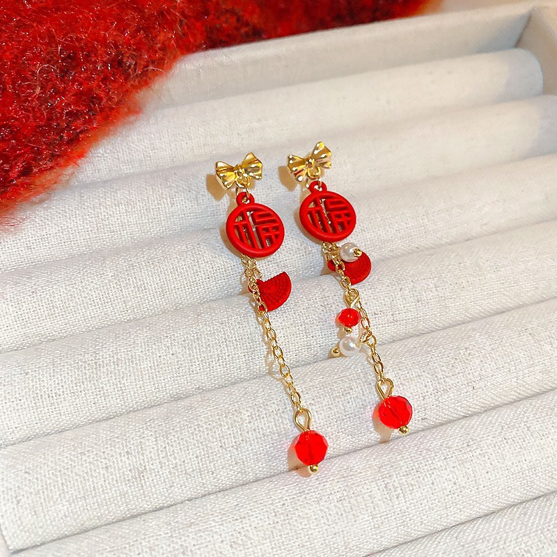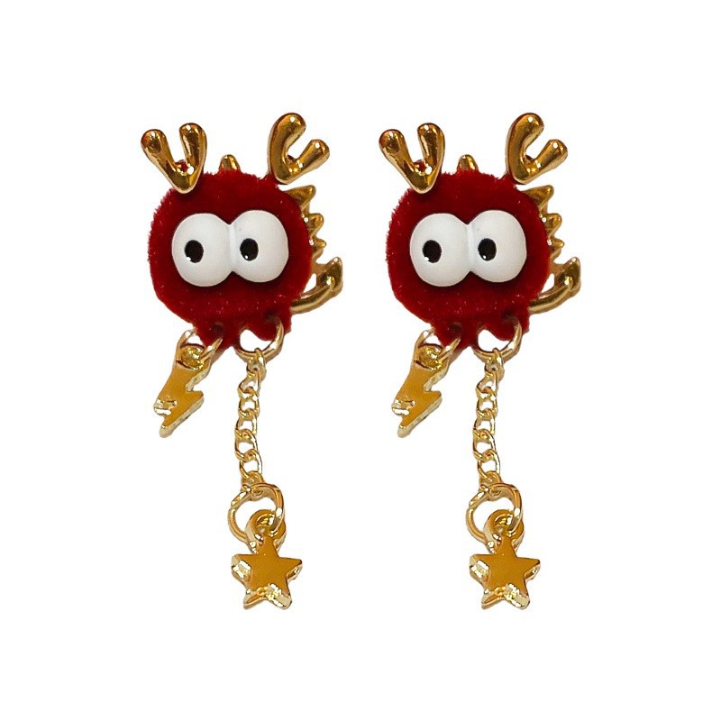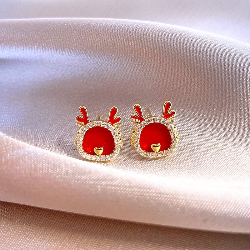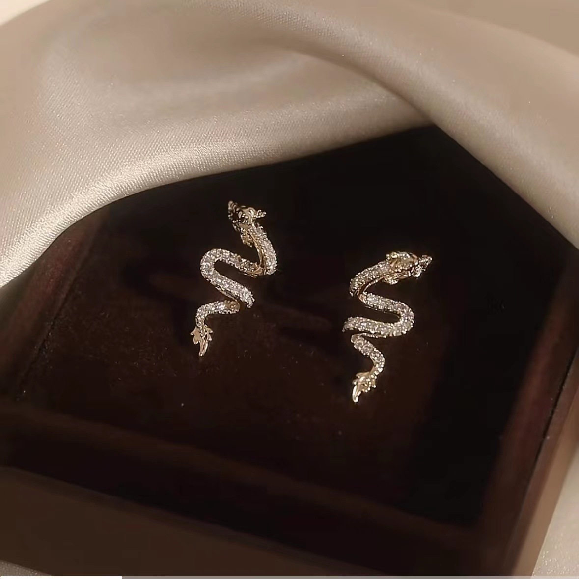 真金电镀银针镶钻本命年龙形耳环国潮红色龙年耳钉新年轻奢耳饰女