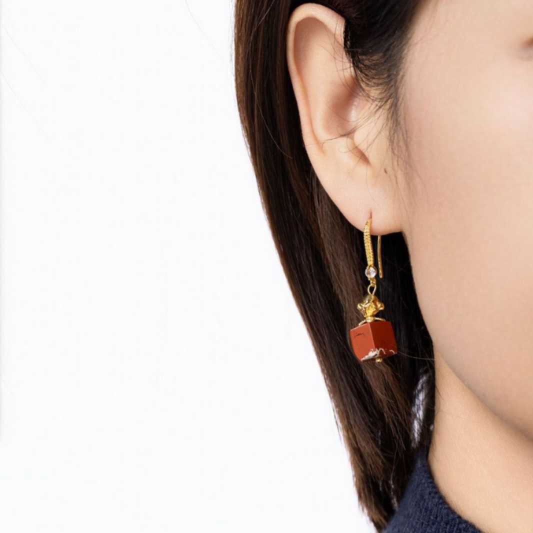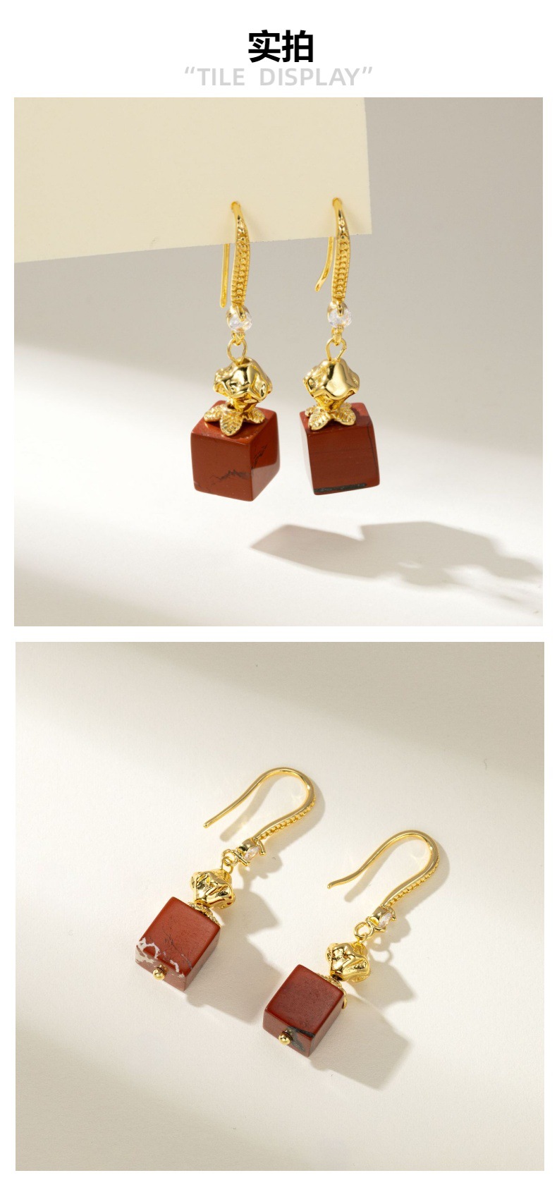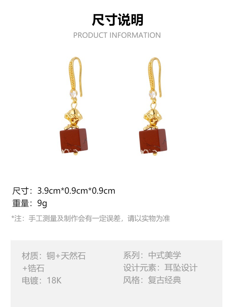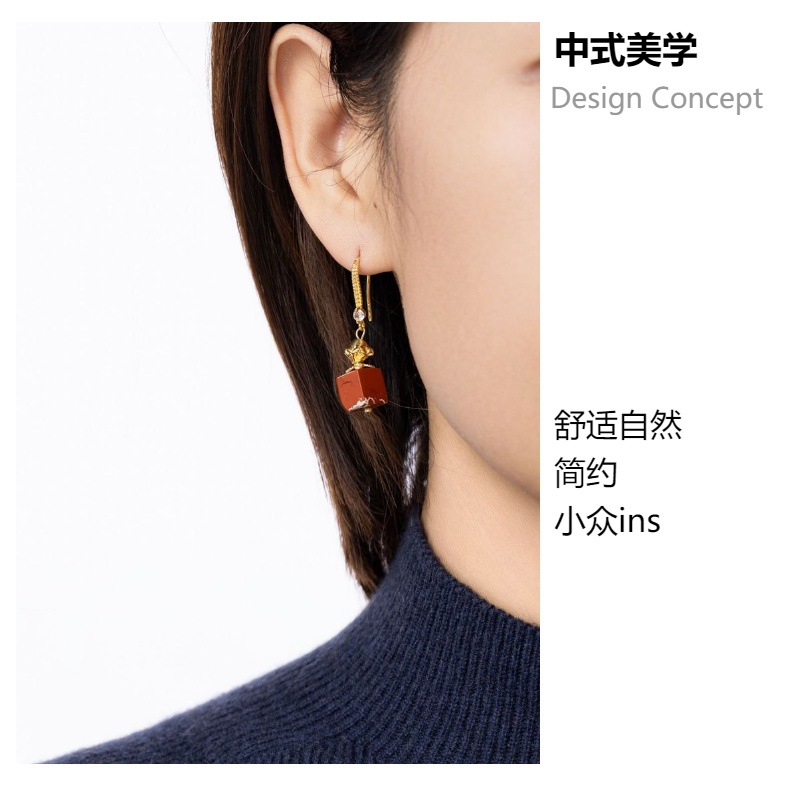 新中式耳环 南红方块中式耳坠 2024新款精致小巧复古耳饰