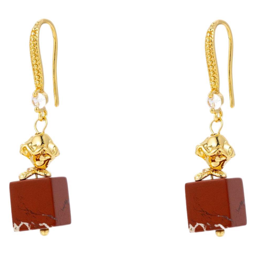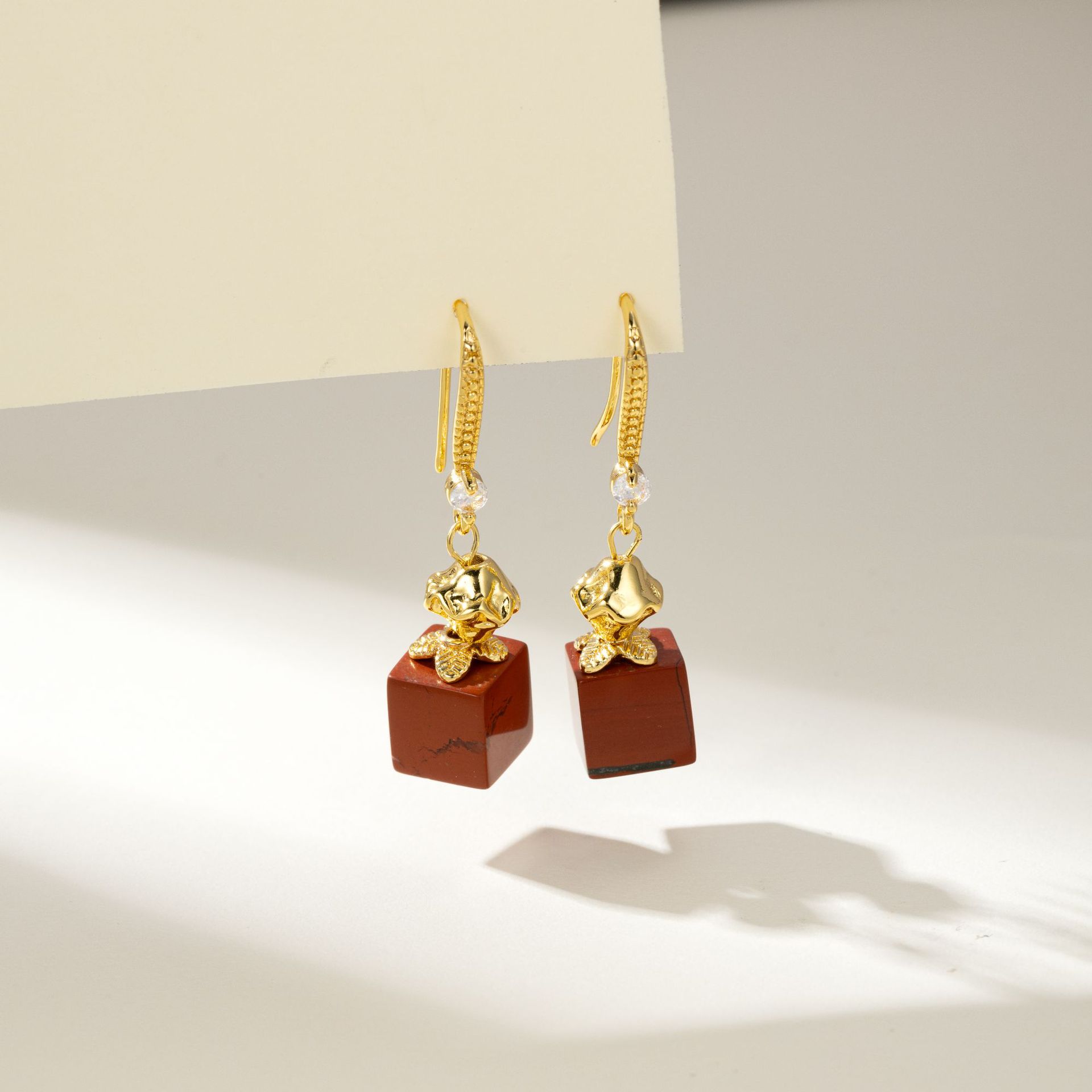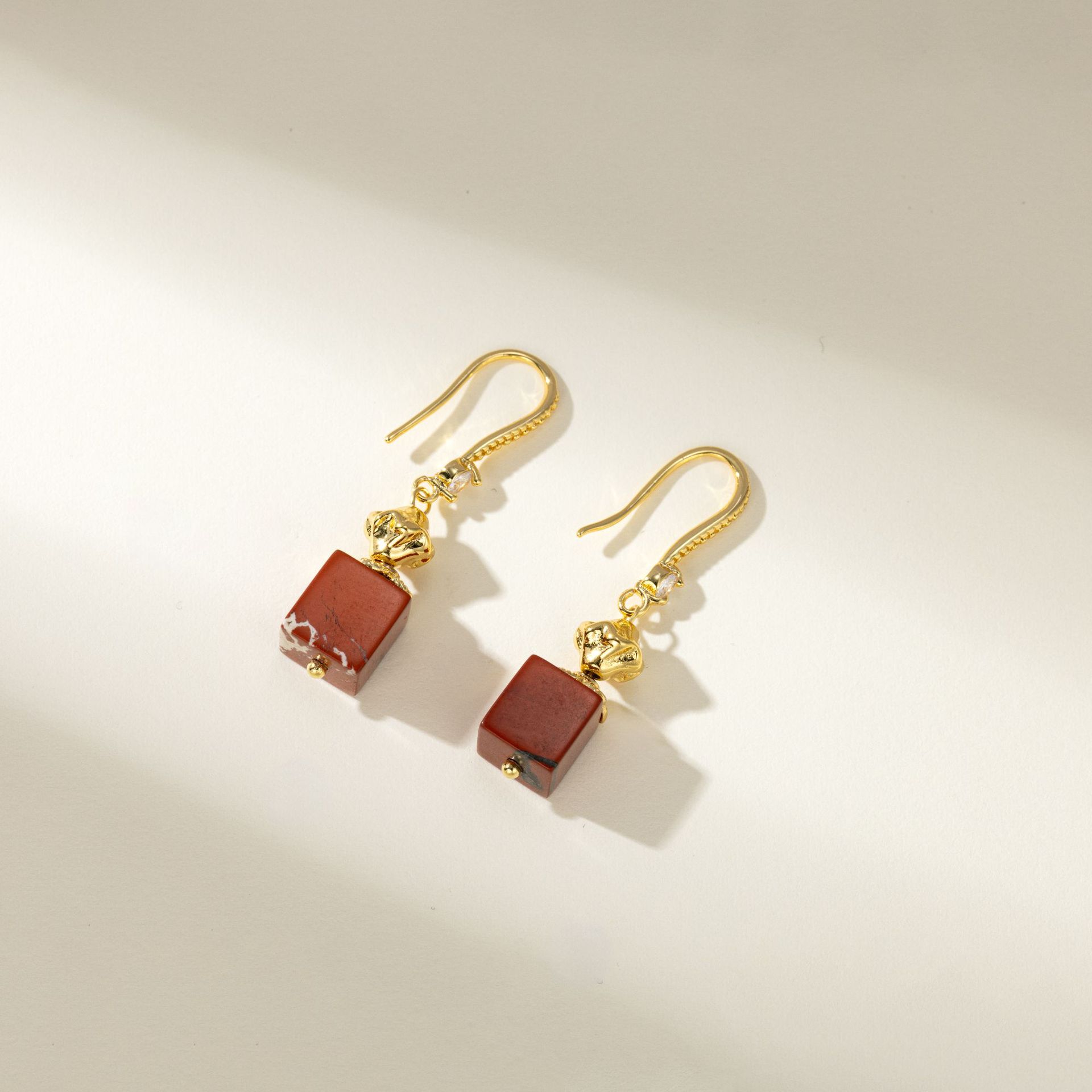 新中式耳环 南红方块中式耳坠 2024新款精致小巧复古耳饰