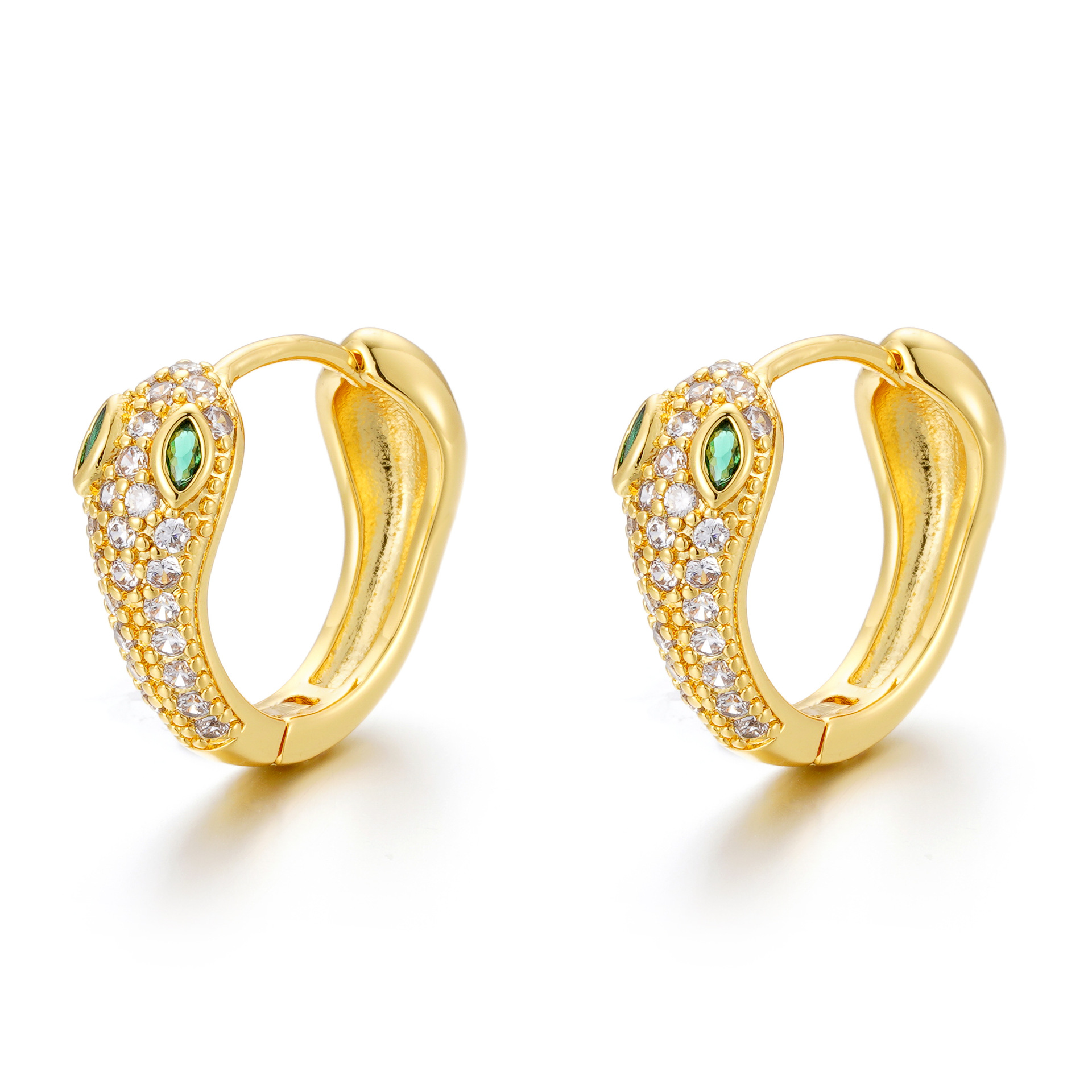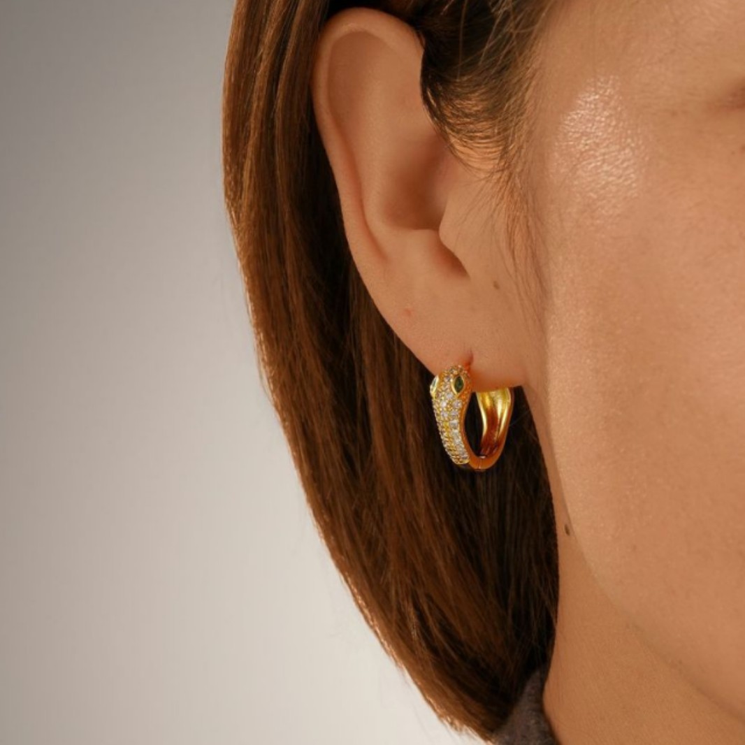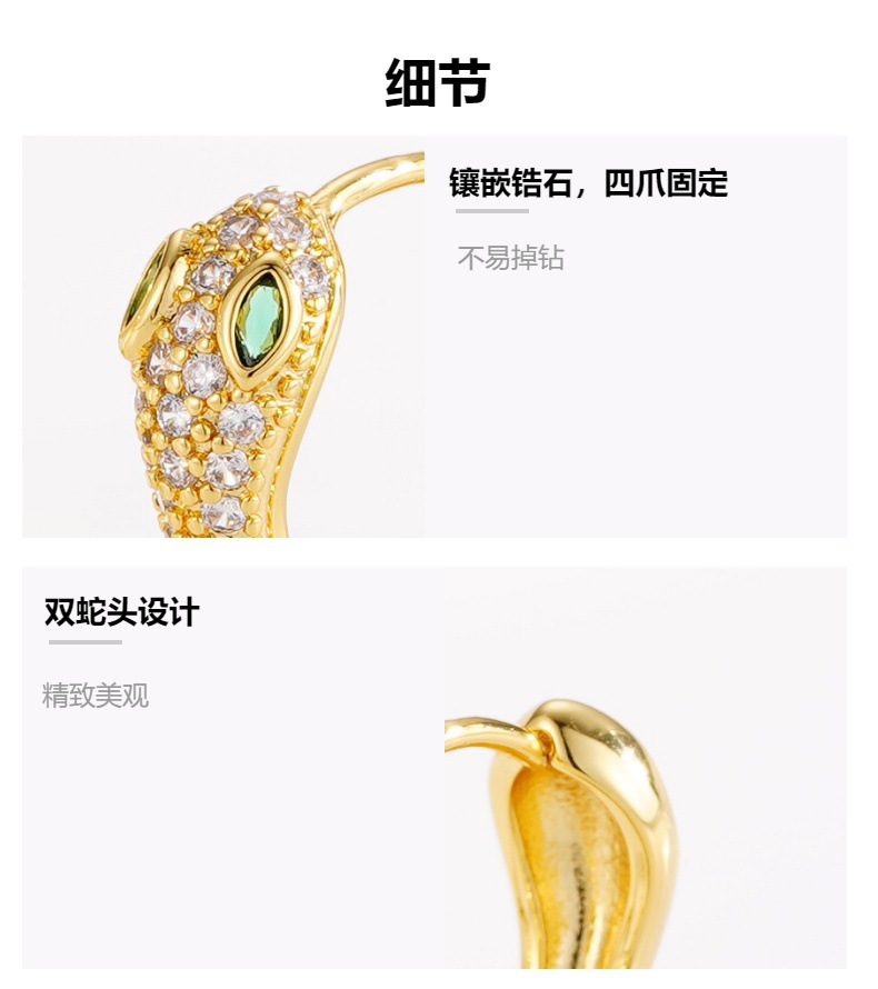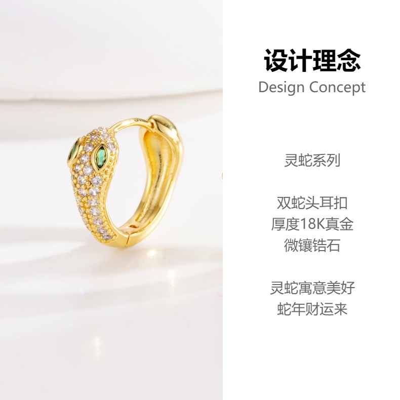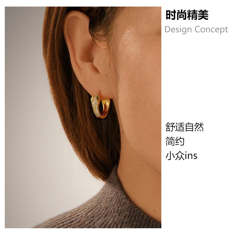欧美饰品时尚蛇形耳扣 个性设计感轻奢蛇年耳饰 铜镀18k真金耳环