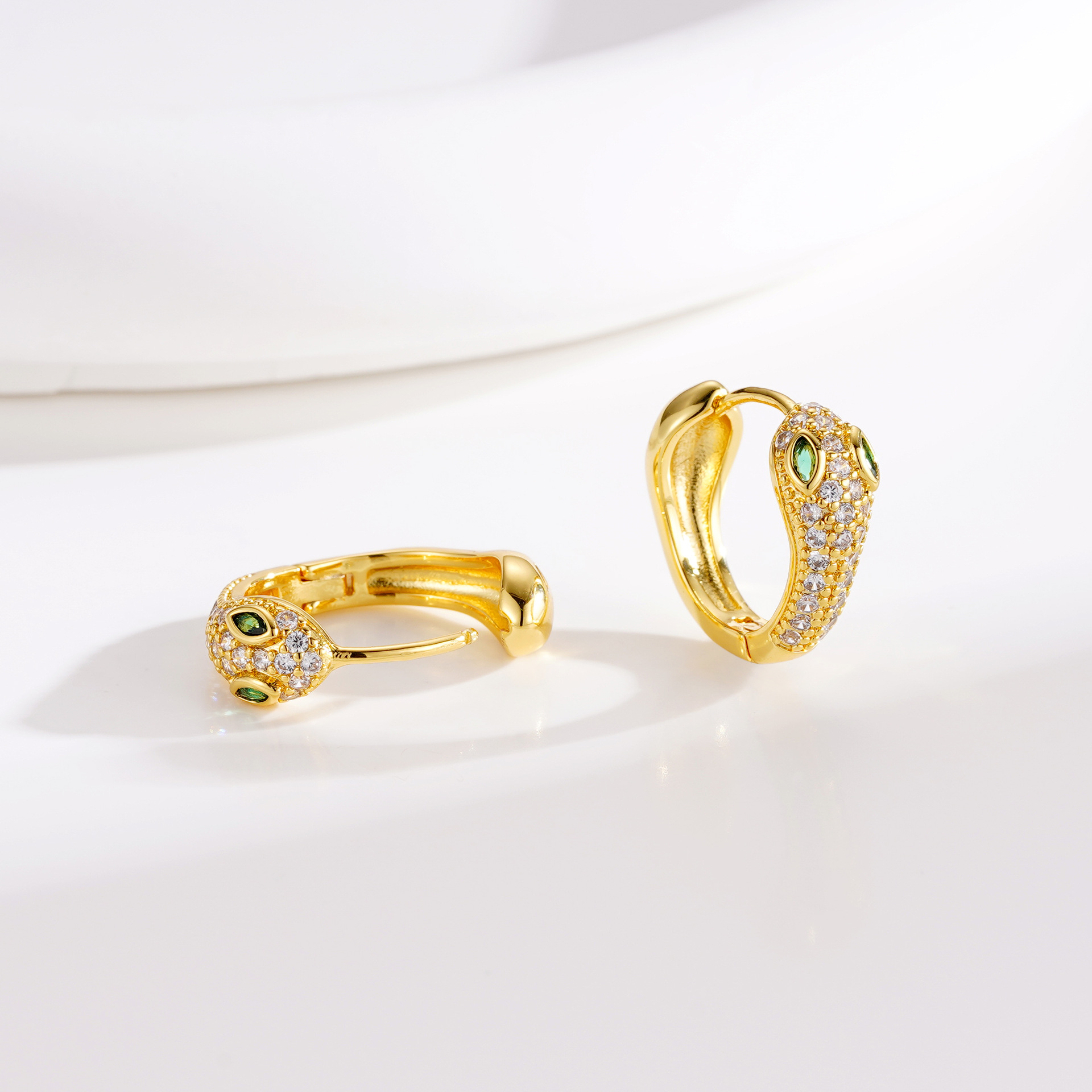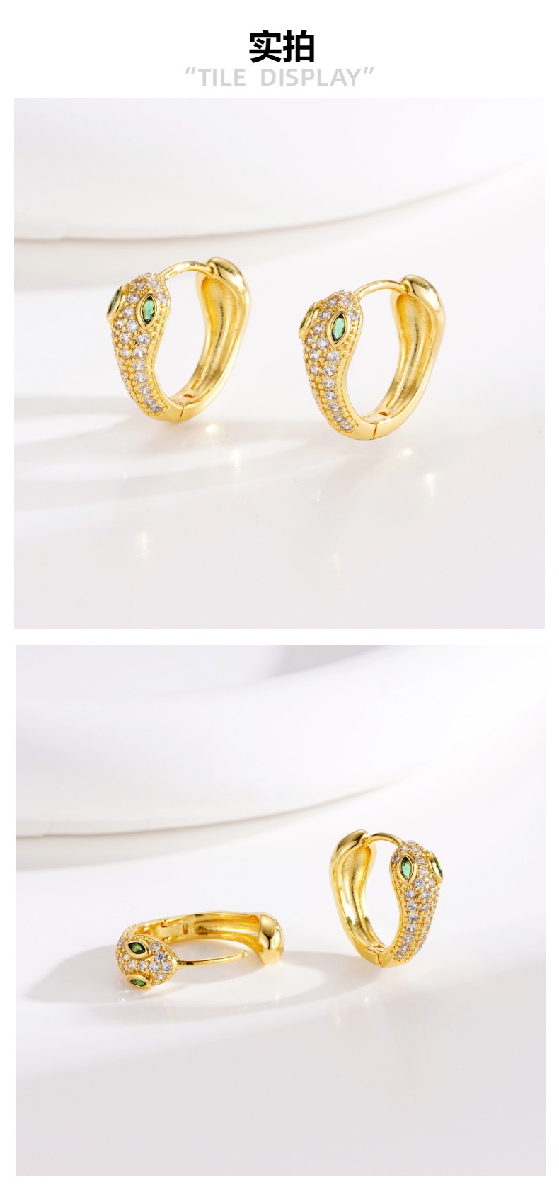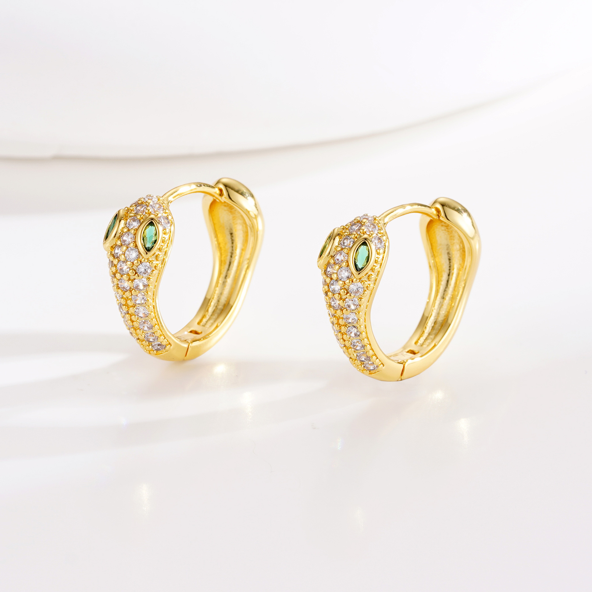 欧美饰品时尚蛇形耳扣 个性设计感轻奢蛇年耳饰 铜镀18k真金耳环
