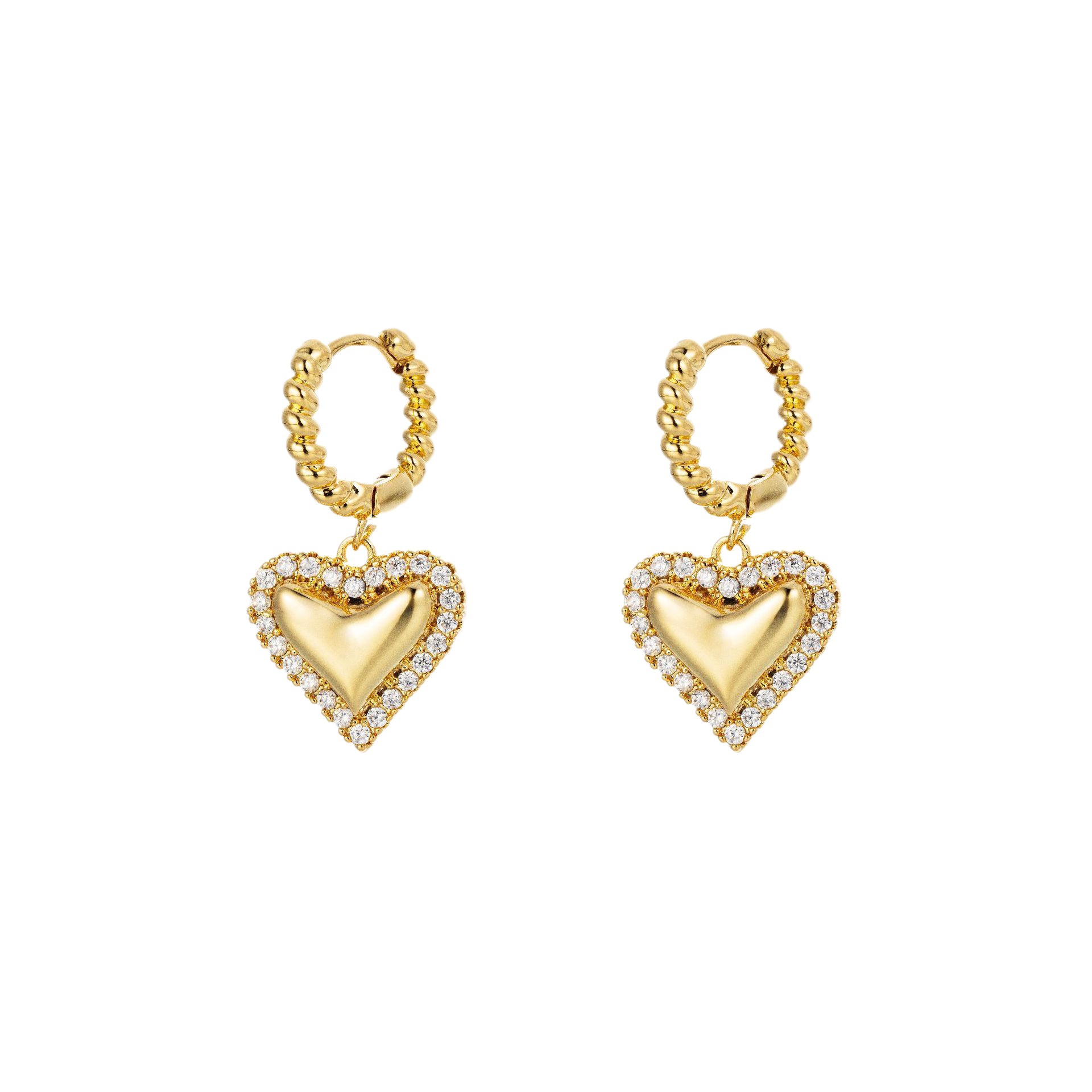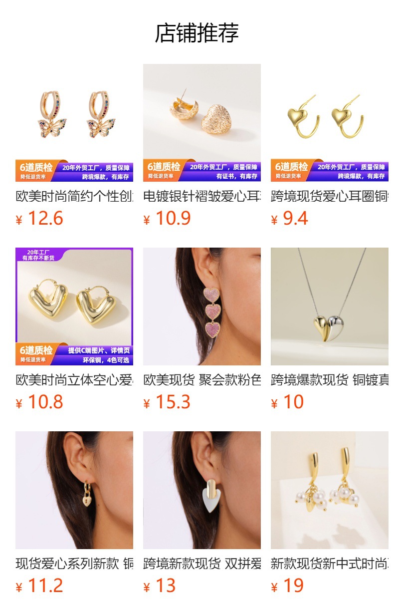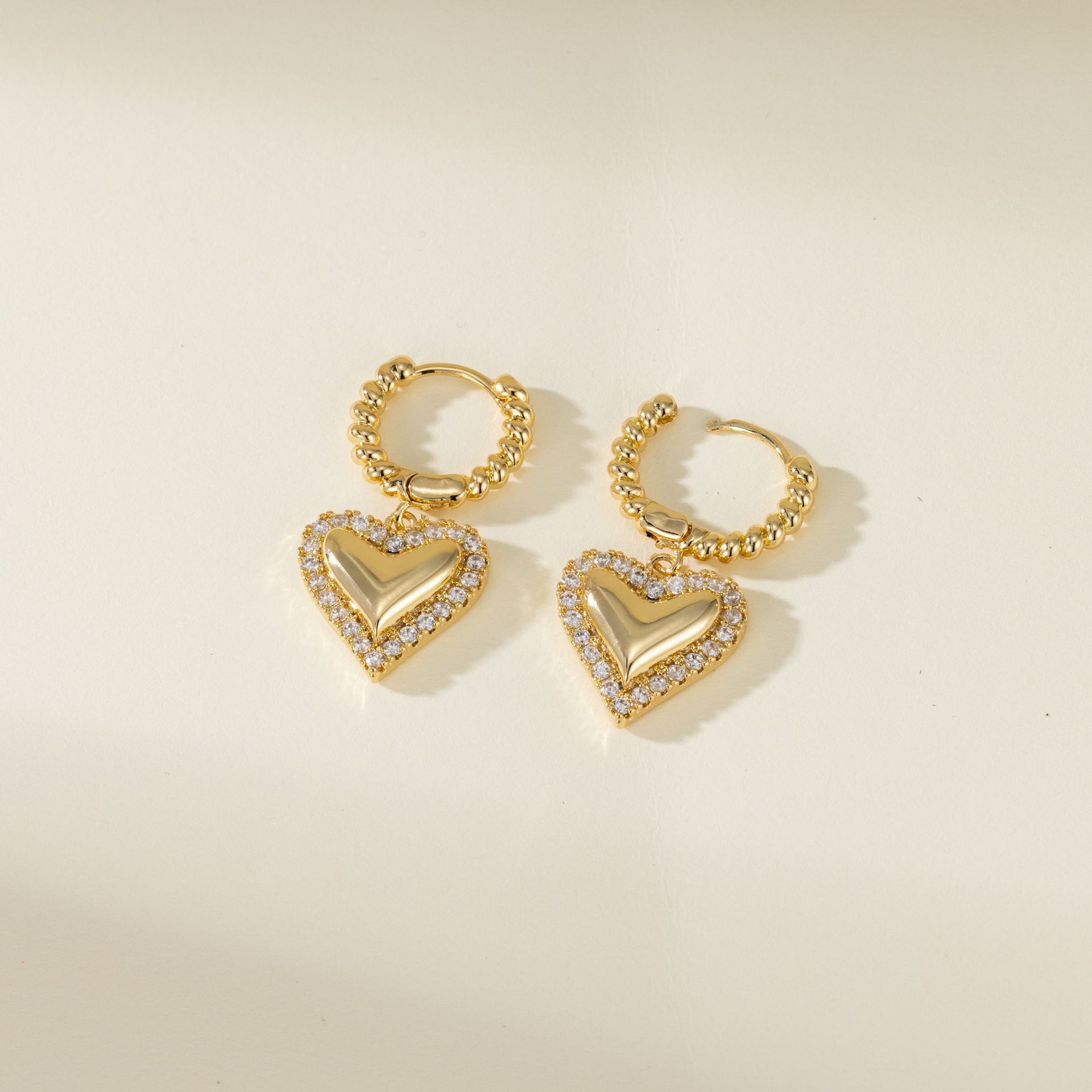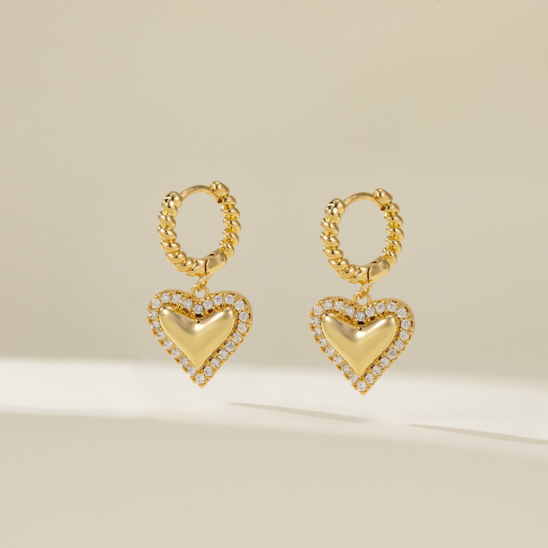 铜镀18K金镶锆石爱心耳环 法式复古时尚高级感耳环现货批发