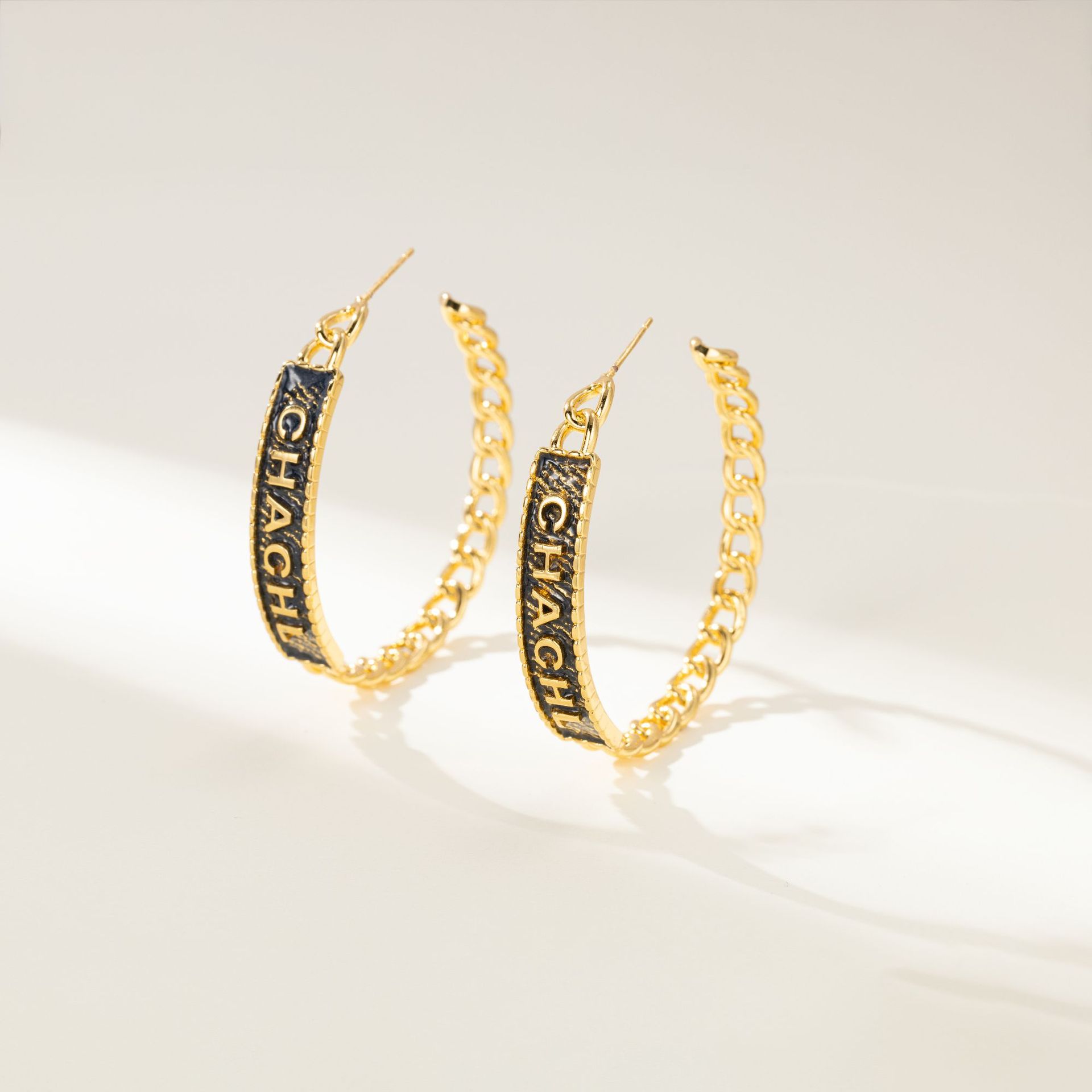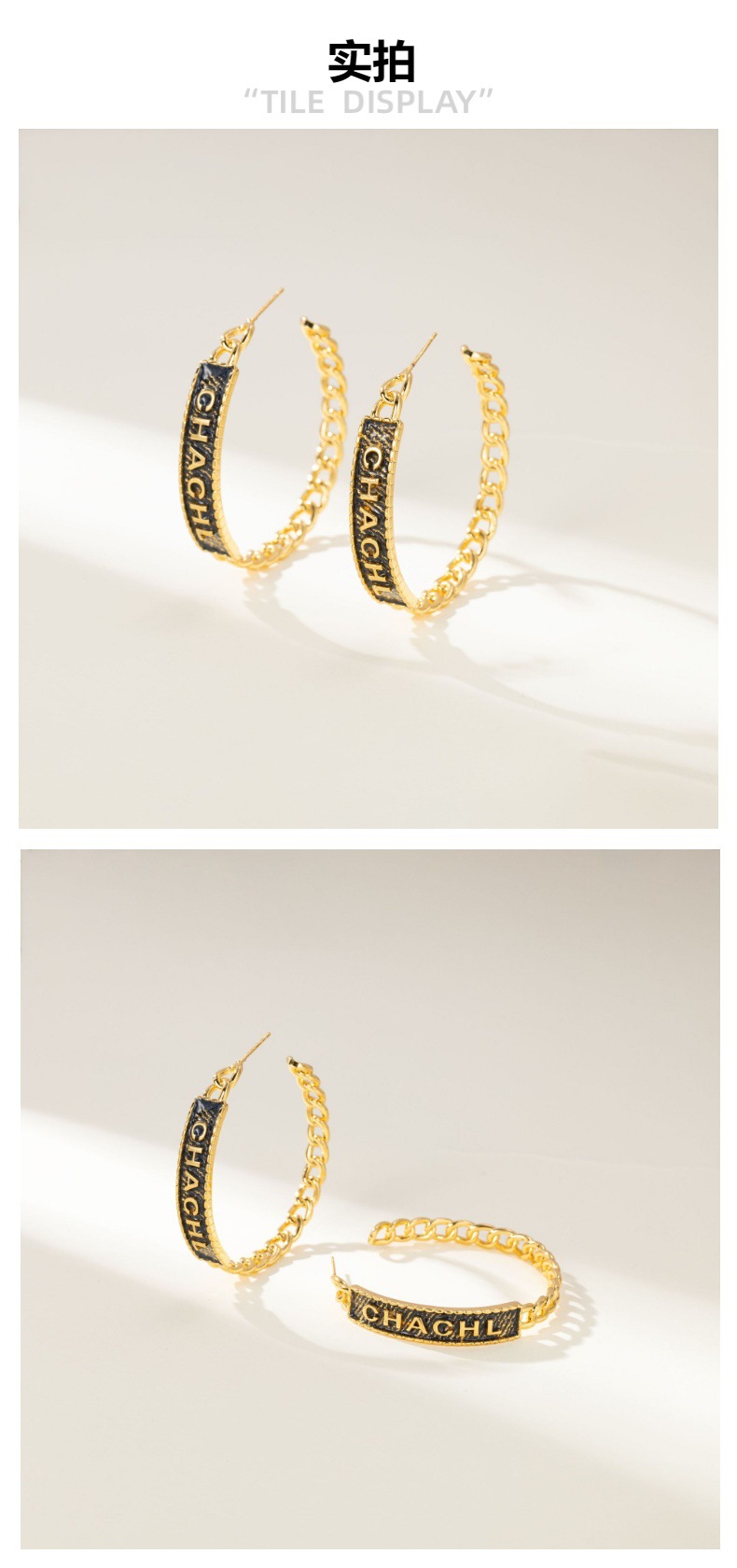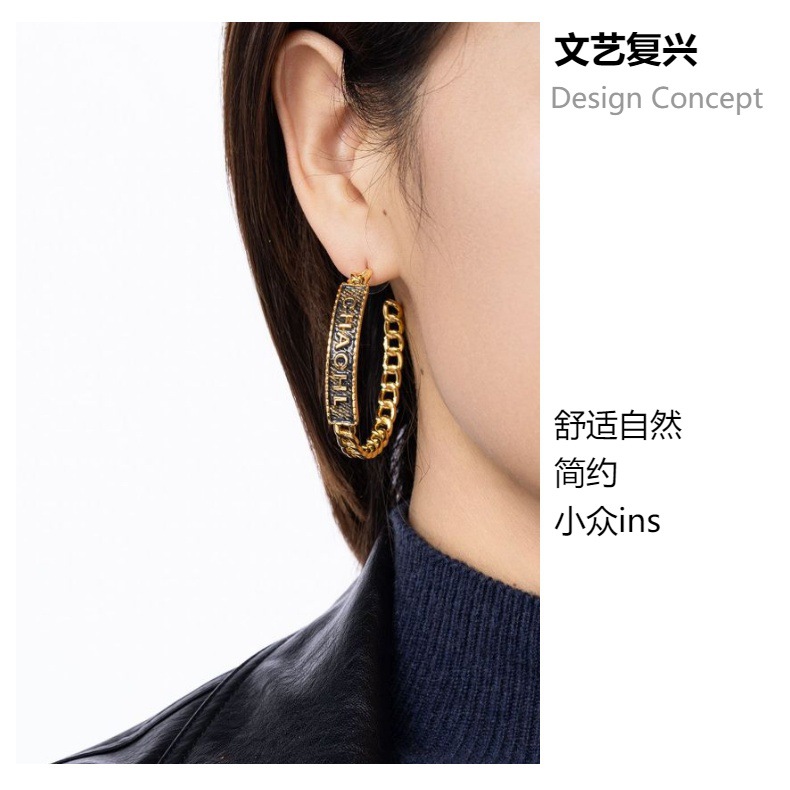欧美夸张香奶奶风耳环 牛仔风格金属大耳环 野性自然风小众耳饰