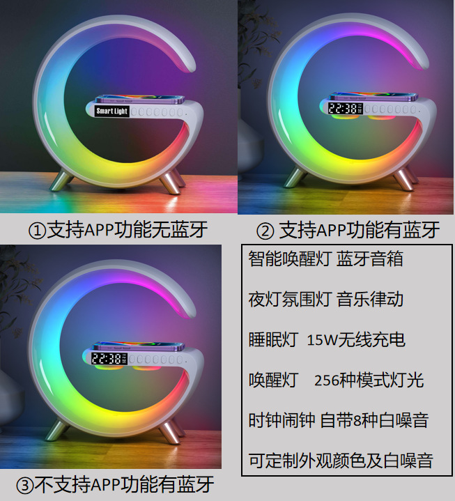 无线蓝牙音箱大G氛围灯手机无线充时钟小夜灯多功能音响小G音箱