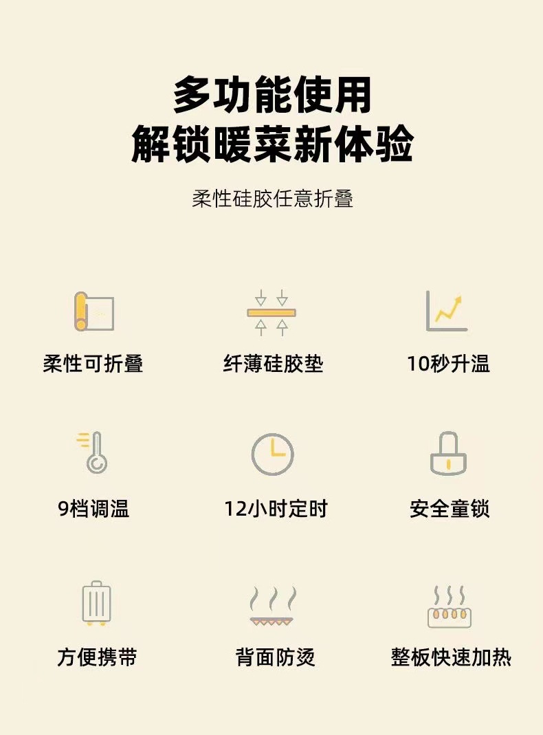 家用暖菜板石墨烯速温热菜板可卷柔性热菜保温神器恒温餐桌暖菜板