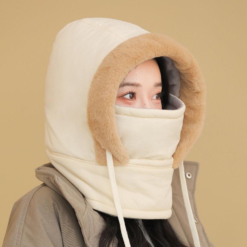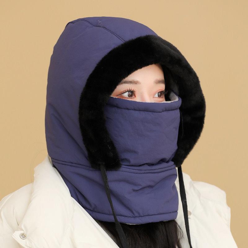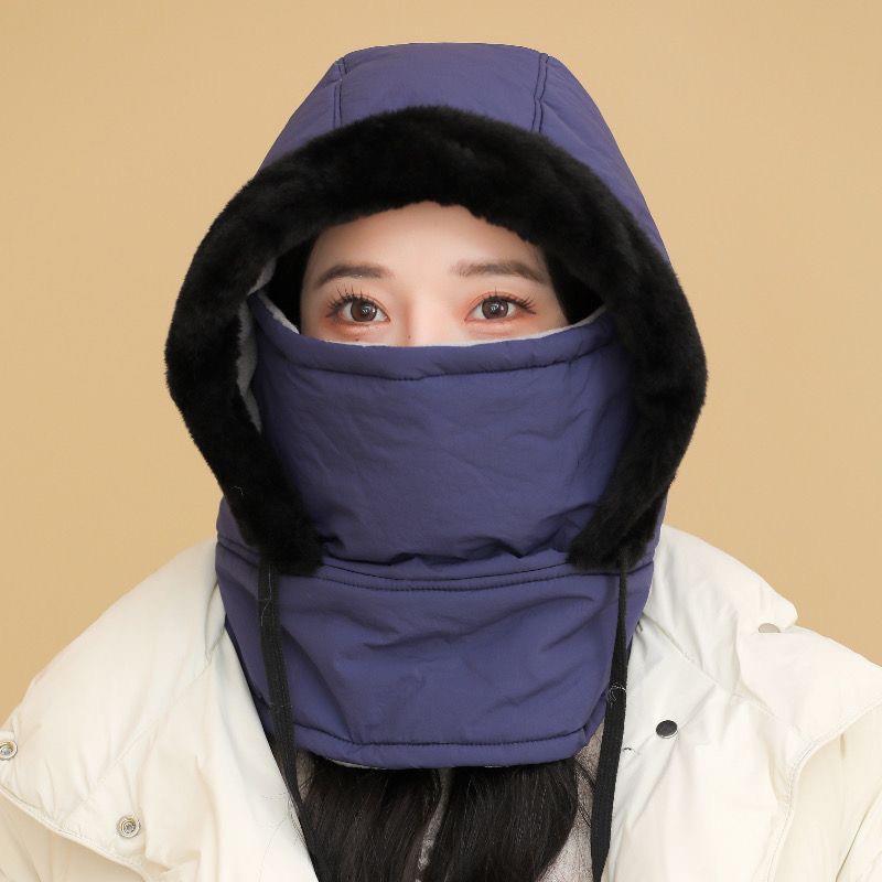 加绒保暖雷锋帽男女冬季滑雪骑行保暖面罩大头围面罩围脖一体帽