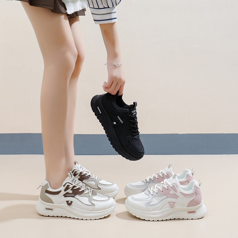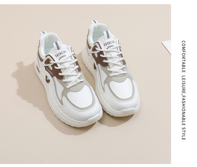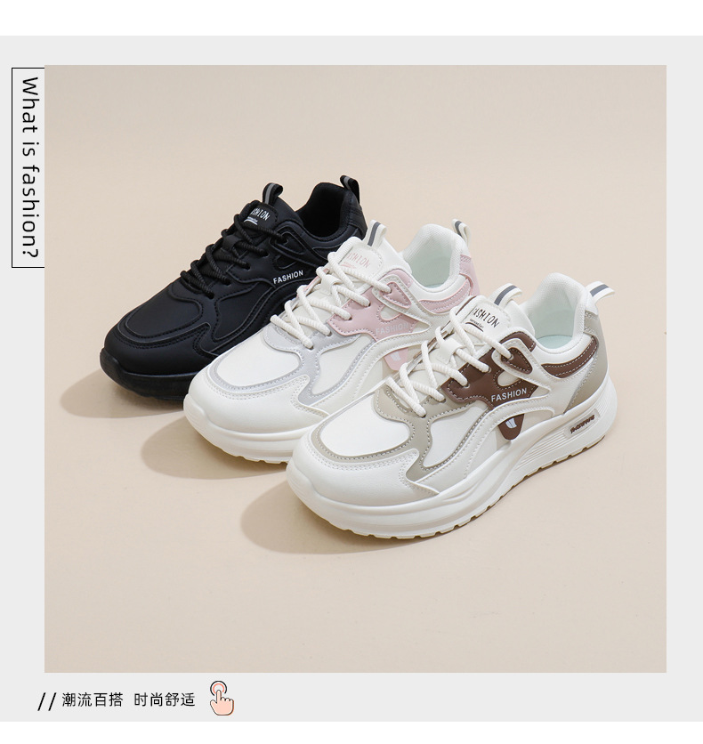 ins韩皮面老爹鞋女2025春季新款透气学生运动鞋休闲鞋