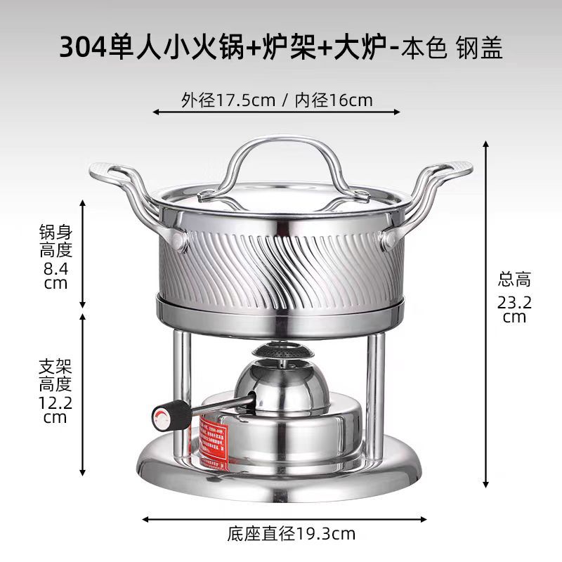 | single pot + steel cover + hob + alcohol stove core(单锅+钢盖+炉架+酒精炉芯) | USD $24.36 | 1997 piece available |
