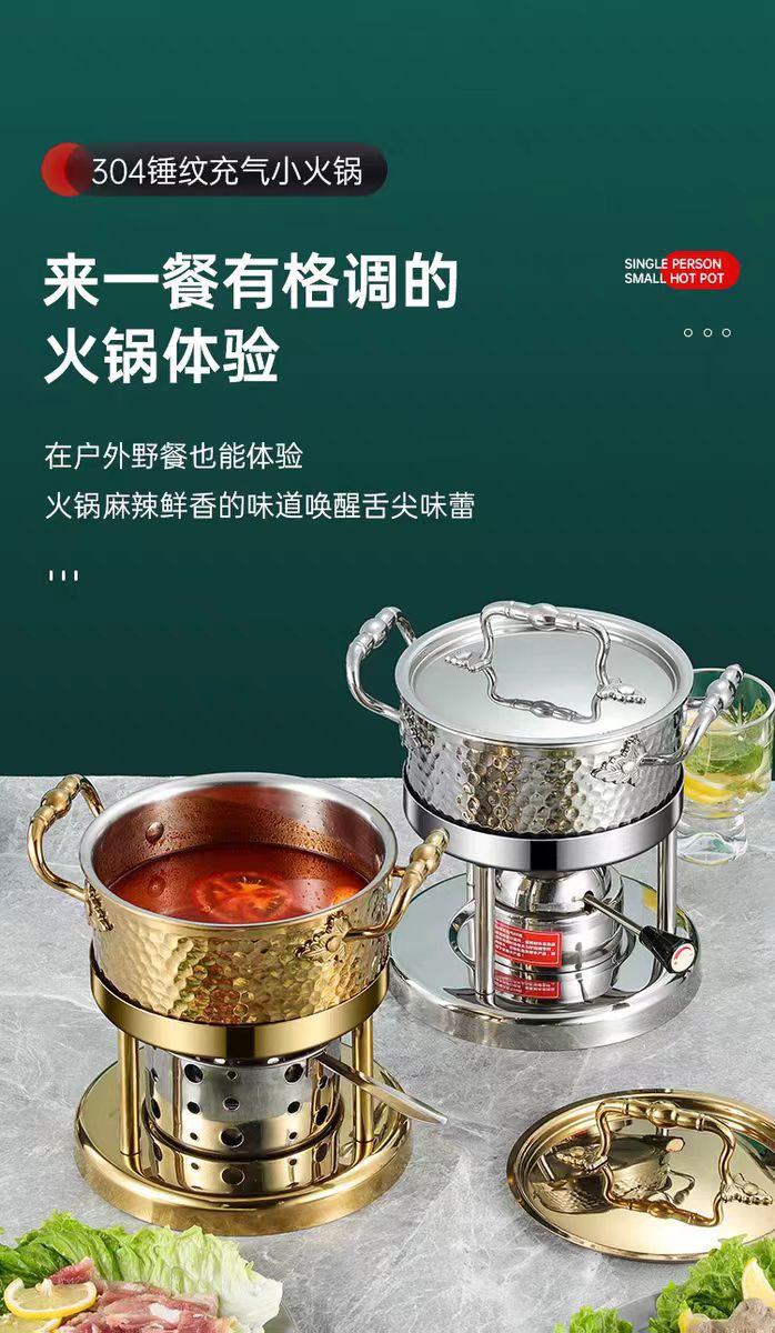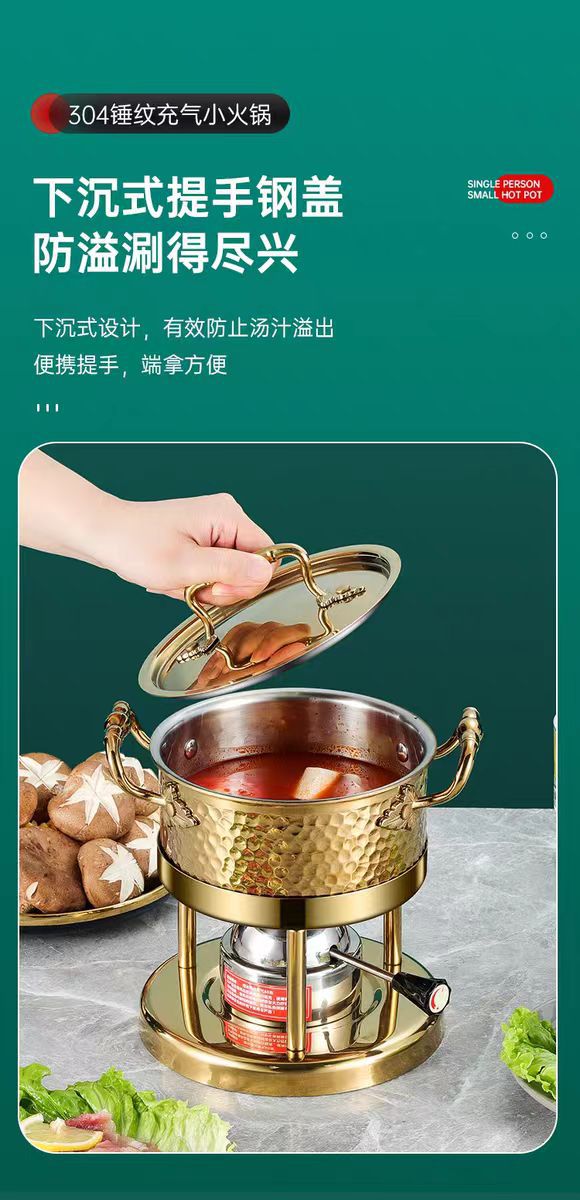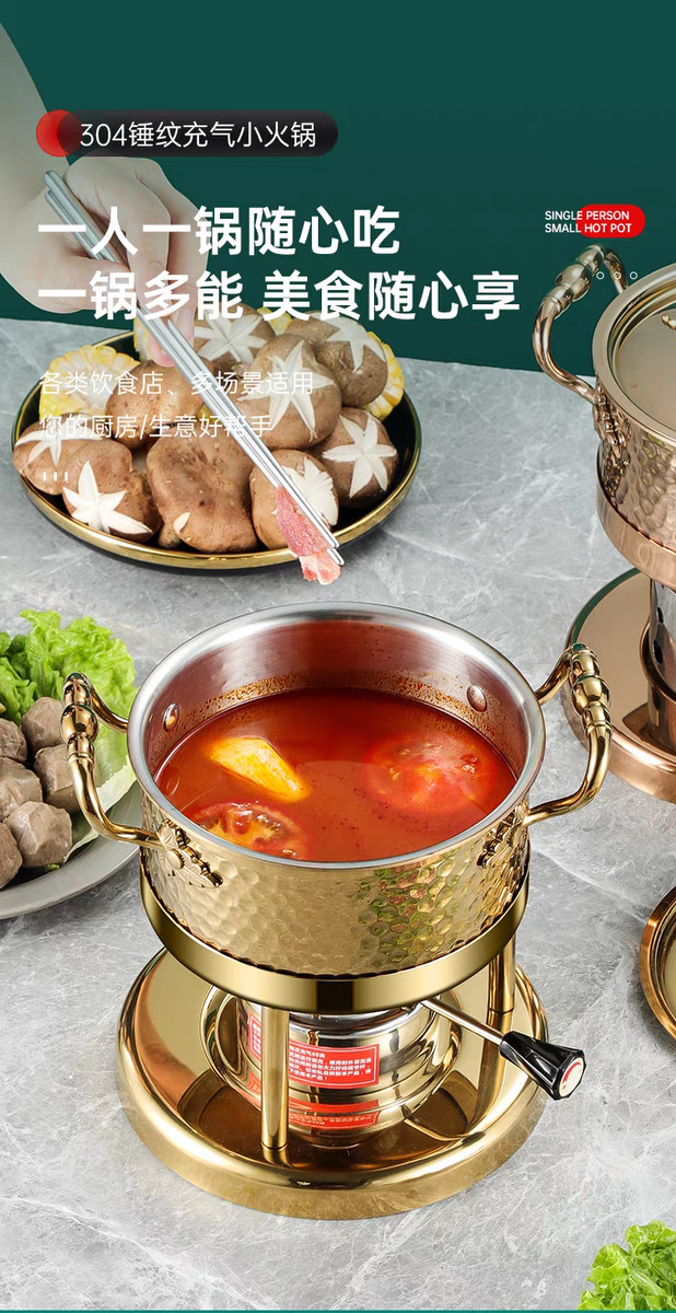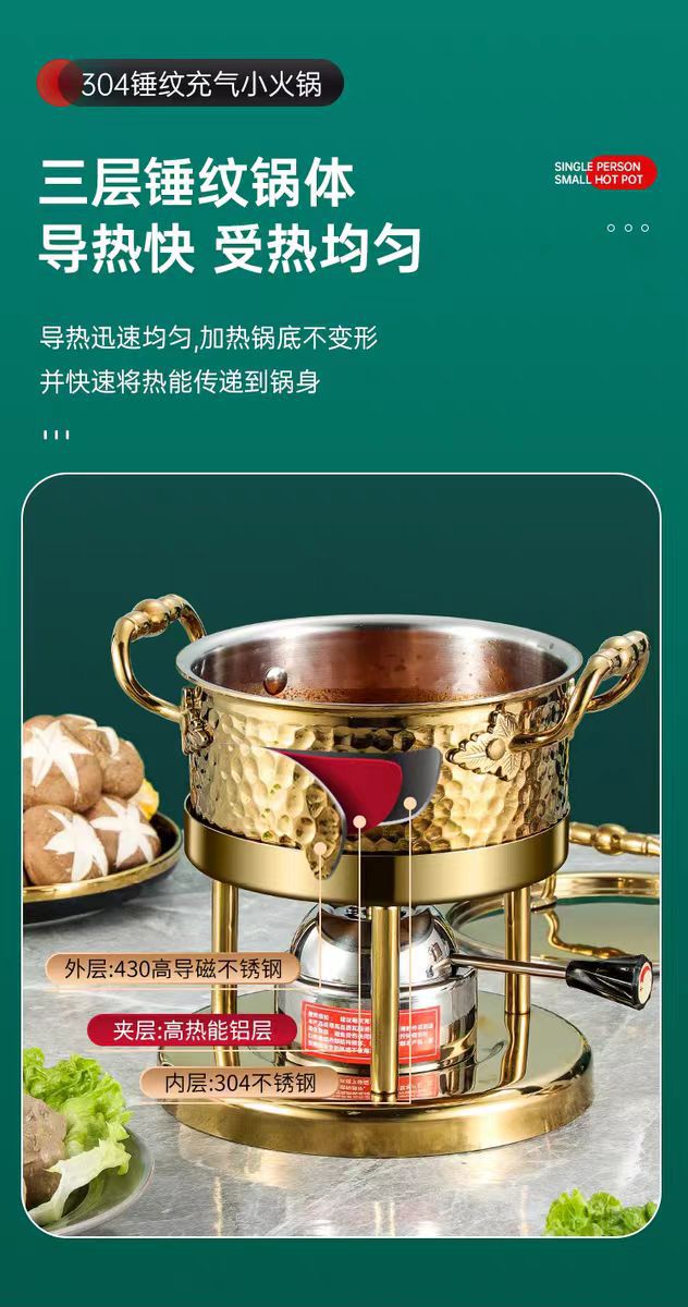 厂家批发充气式酒精炉燃气餐厅小汤锅三层钢一人一锅单人小火锅