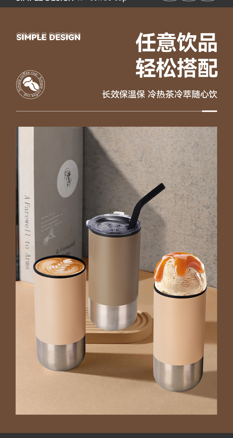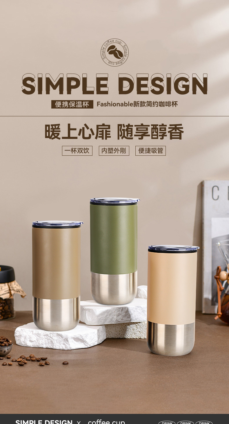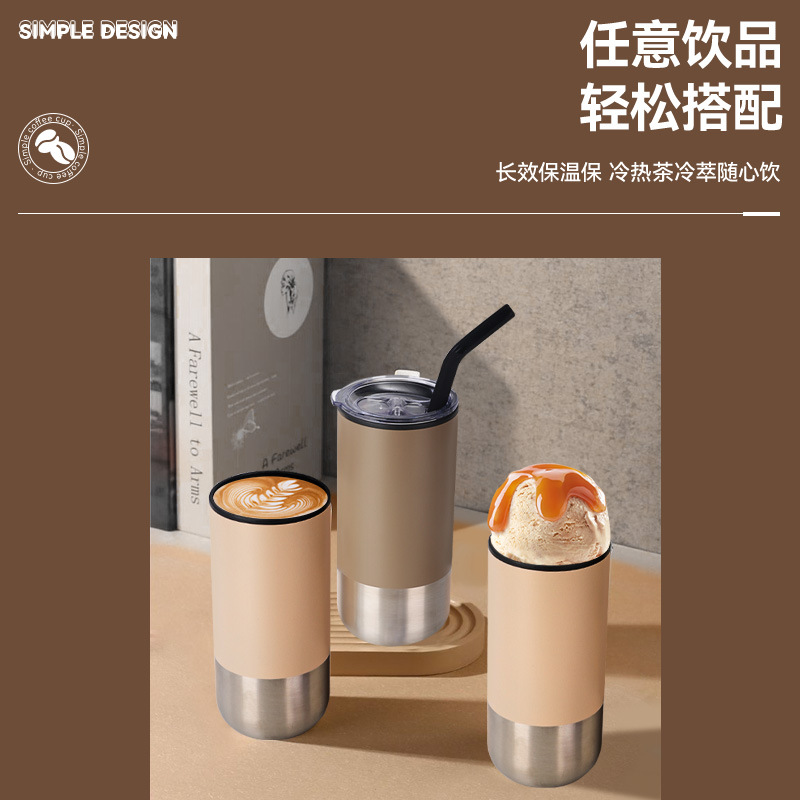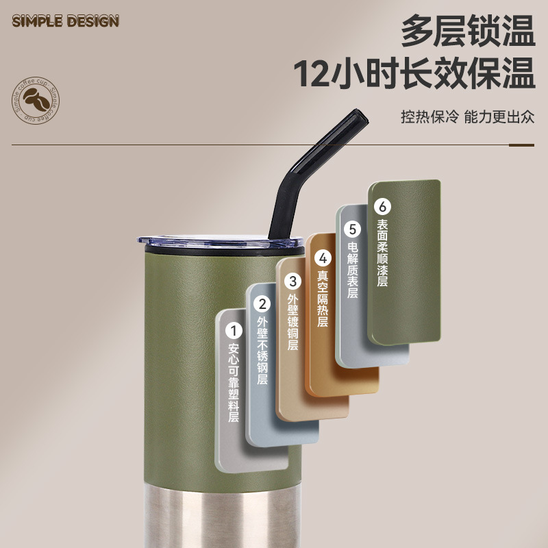 新款不锈钢真空保温杯内塑外钢吸管杯办公室便携创意礼品杯批发