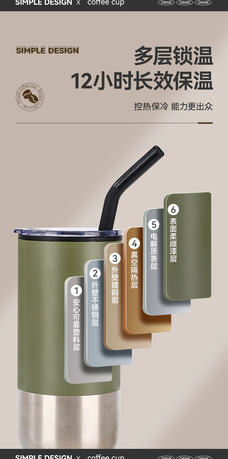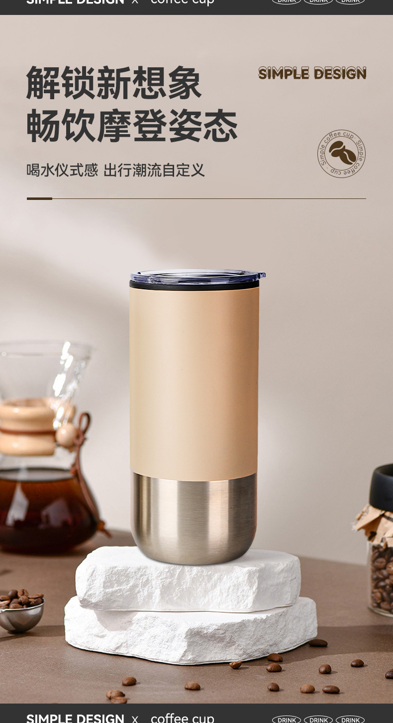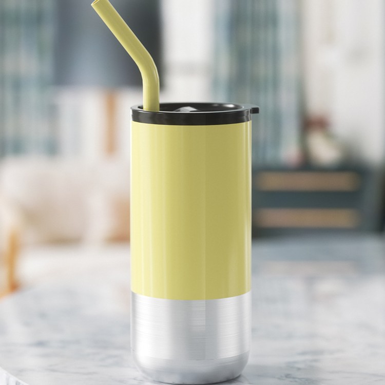 新款不锈钢真空保温杯内塑外钢吸管杯办公室便携创意礼品杯批发
