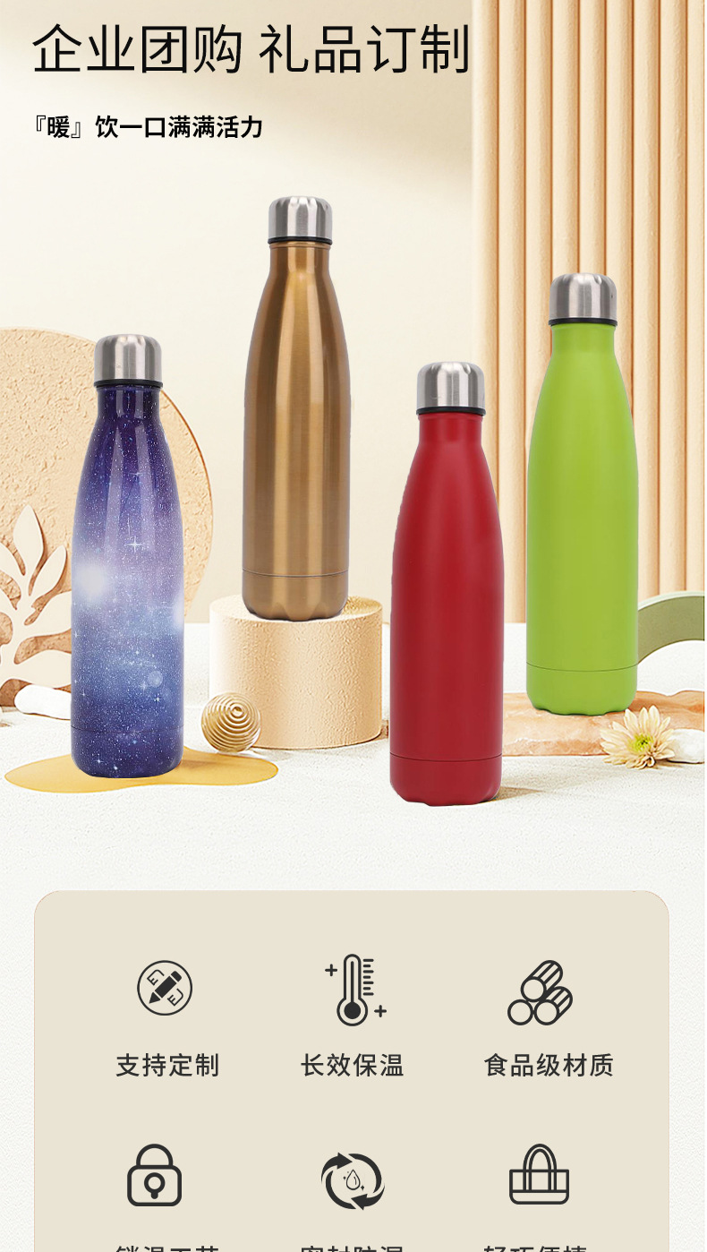亚马逊专供不锈钢可乐瓶304保温杯便携式潮牌运动水壶创意可乐瓶
