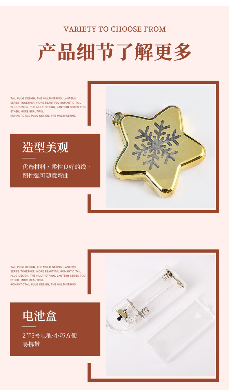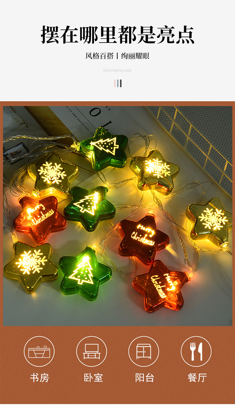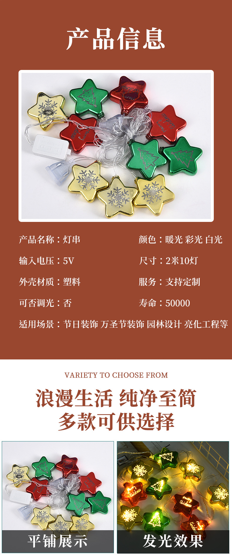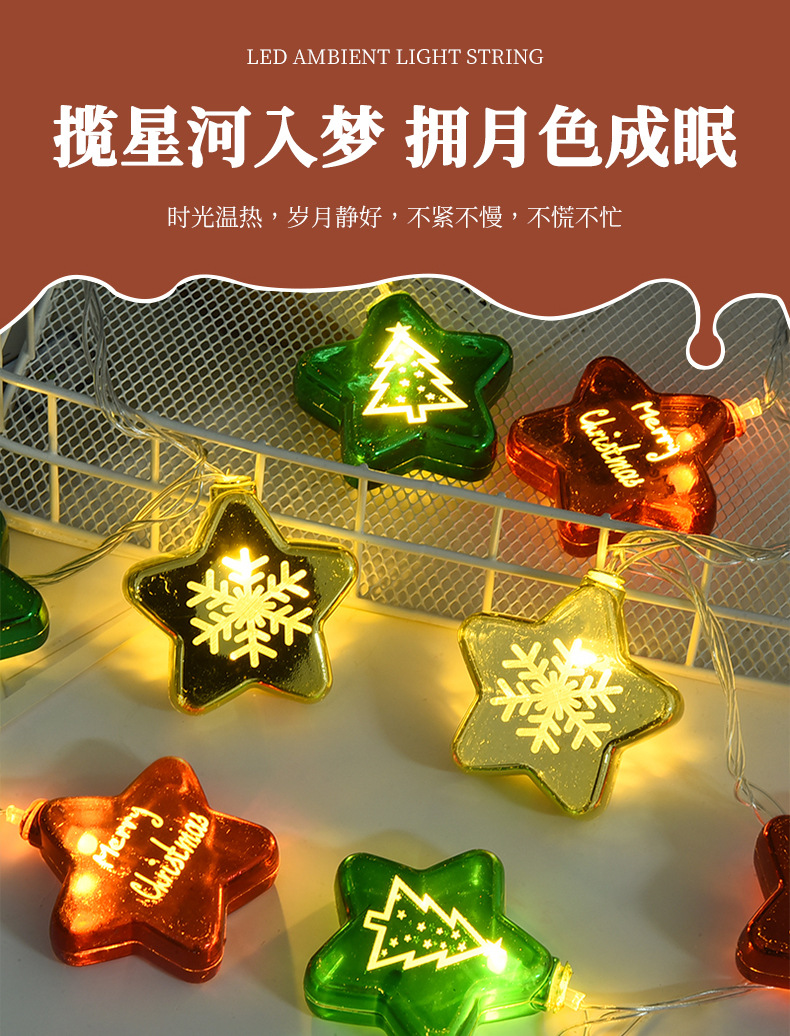 外贸专供LED灯串电镀五角星星挂件树装饰氛围灯装饰彩灯