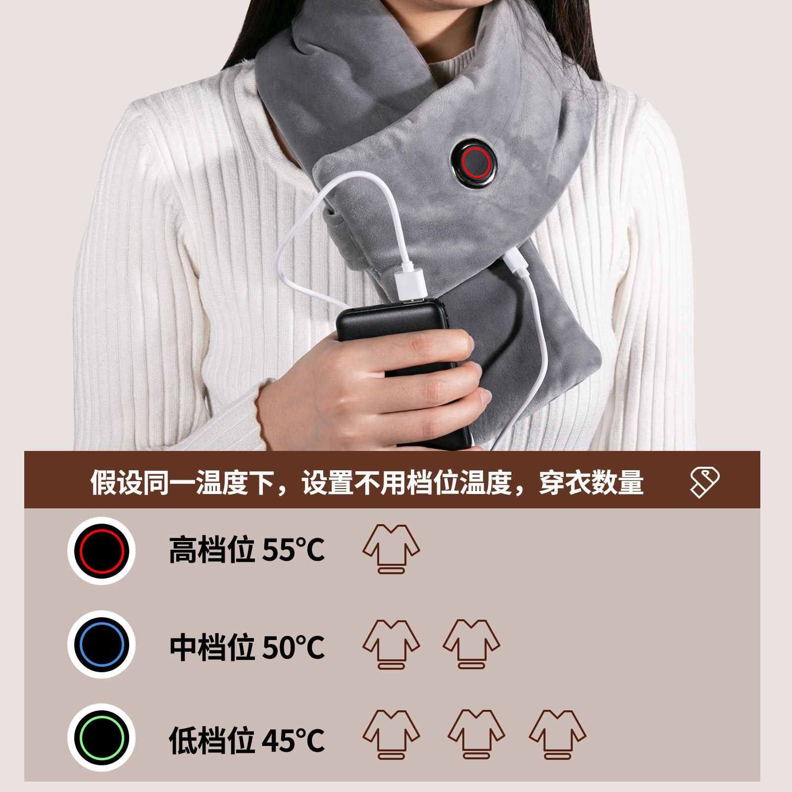 新款发热围巾现货批发石墨烯加热保暖护颈围脖3档温控智能加热