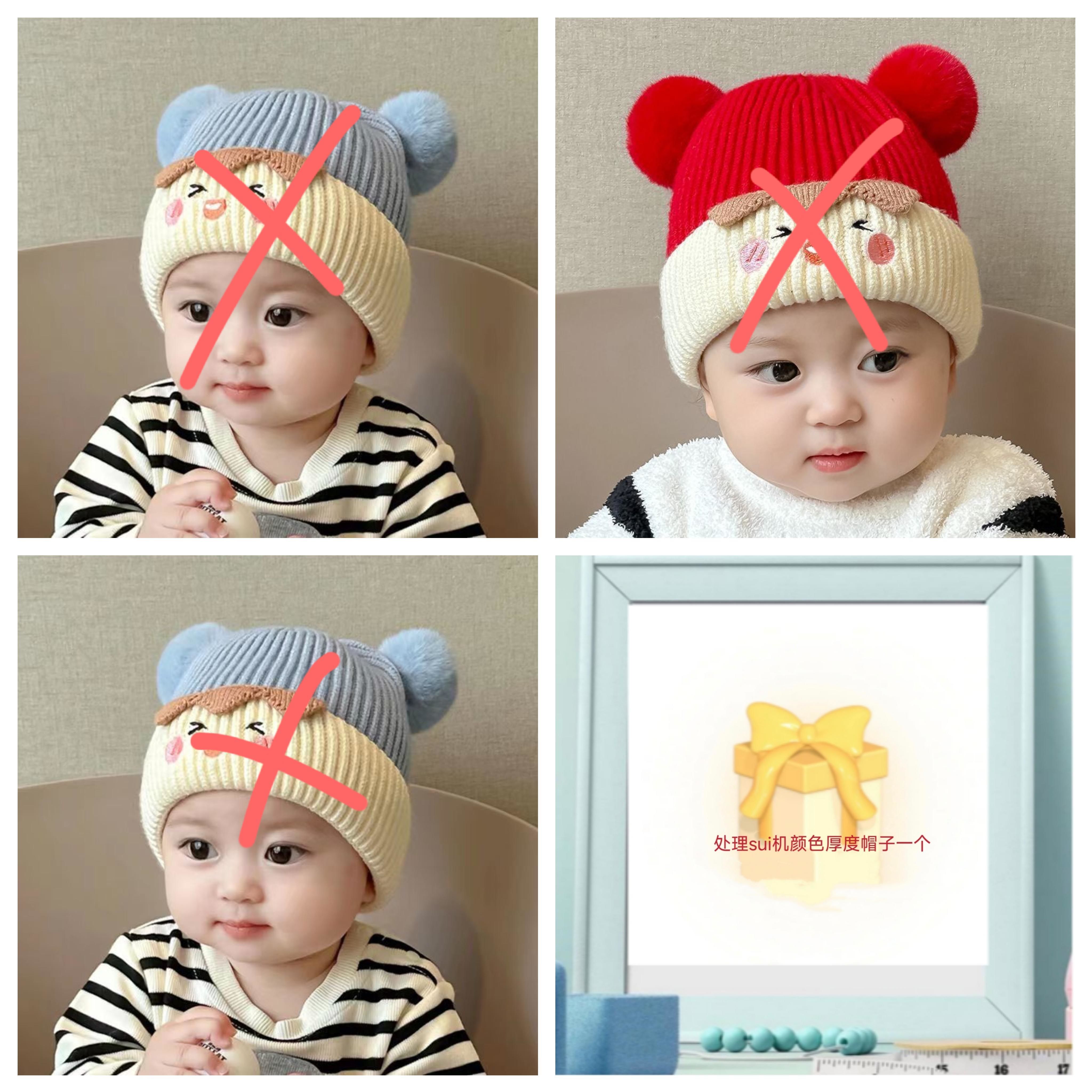 婴幼儿秋冬季毛线帽可爱保暖毛球护耳男女宝宝新年大红冬天加厚