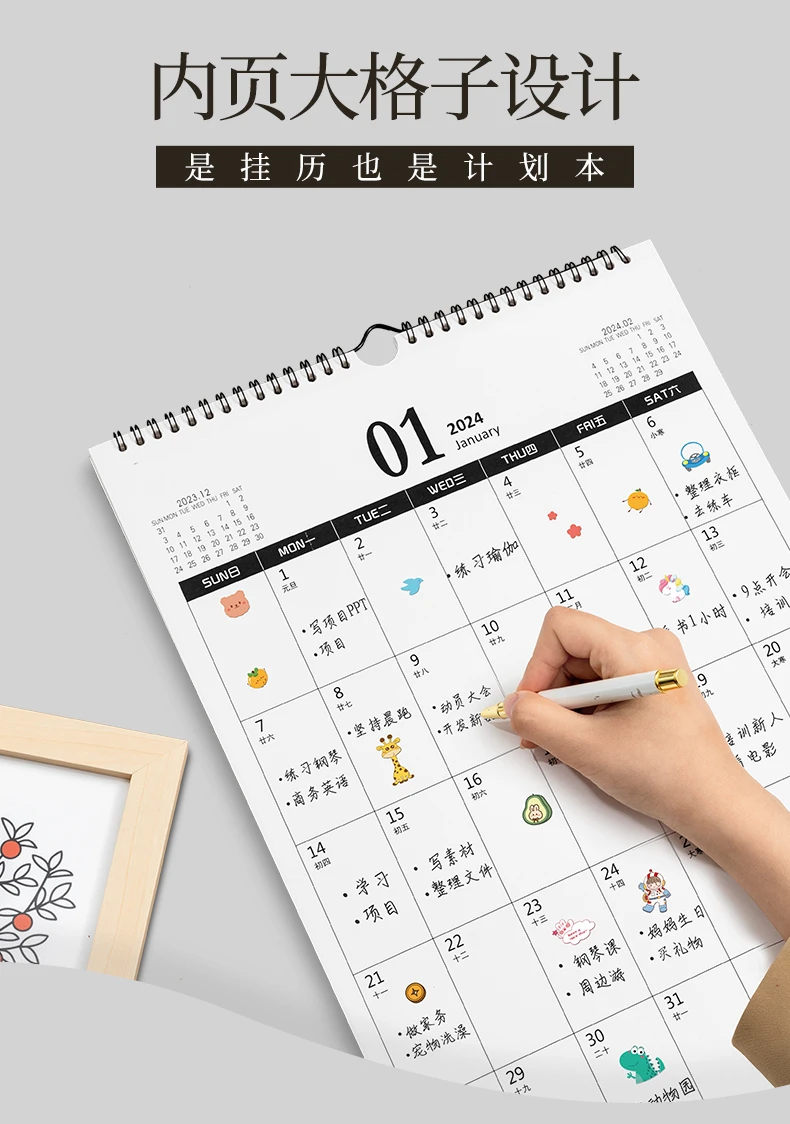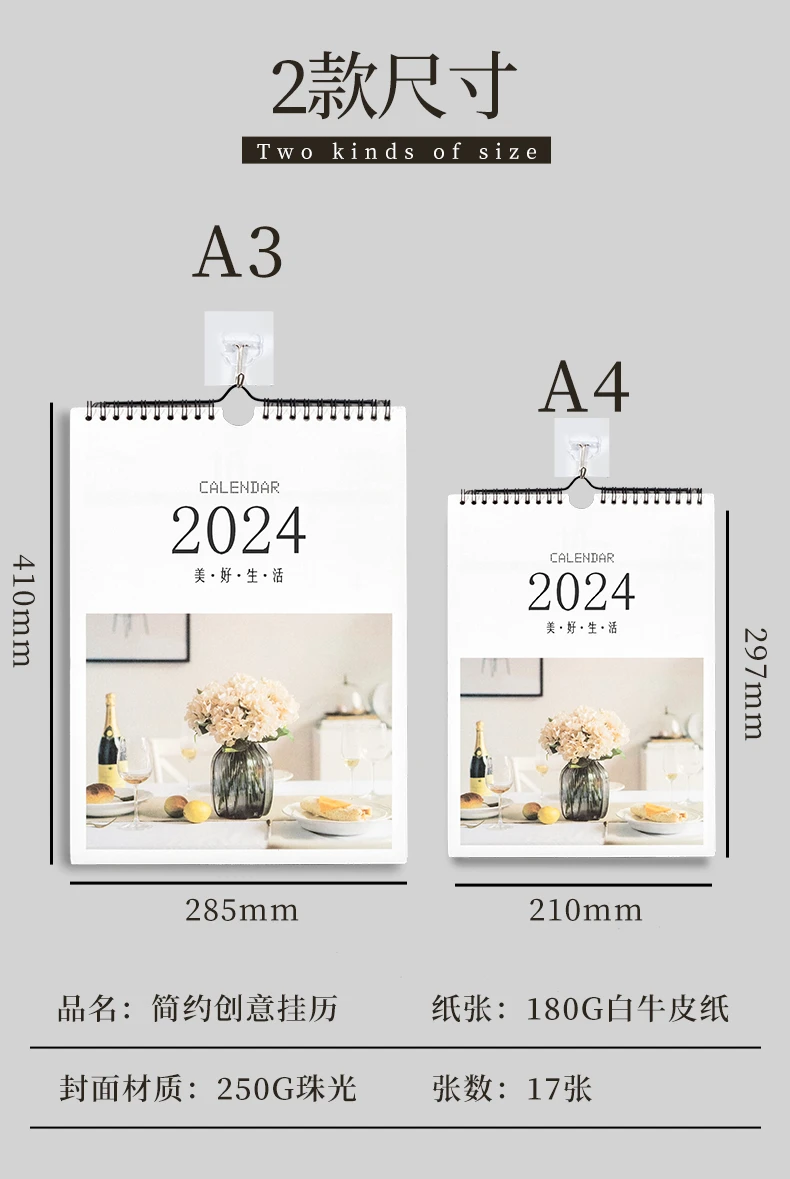 简约2024年挂历新款日历ins风大号2025日历挂墙壁挂记事本打卡