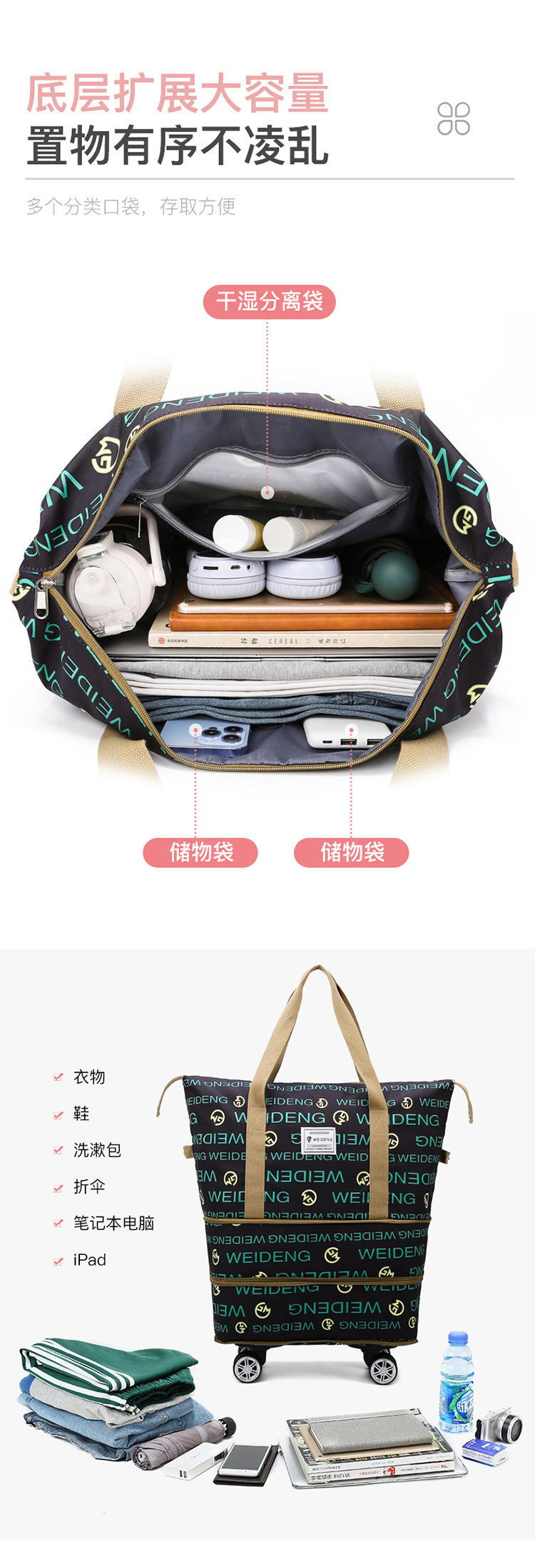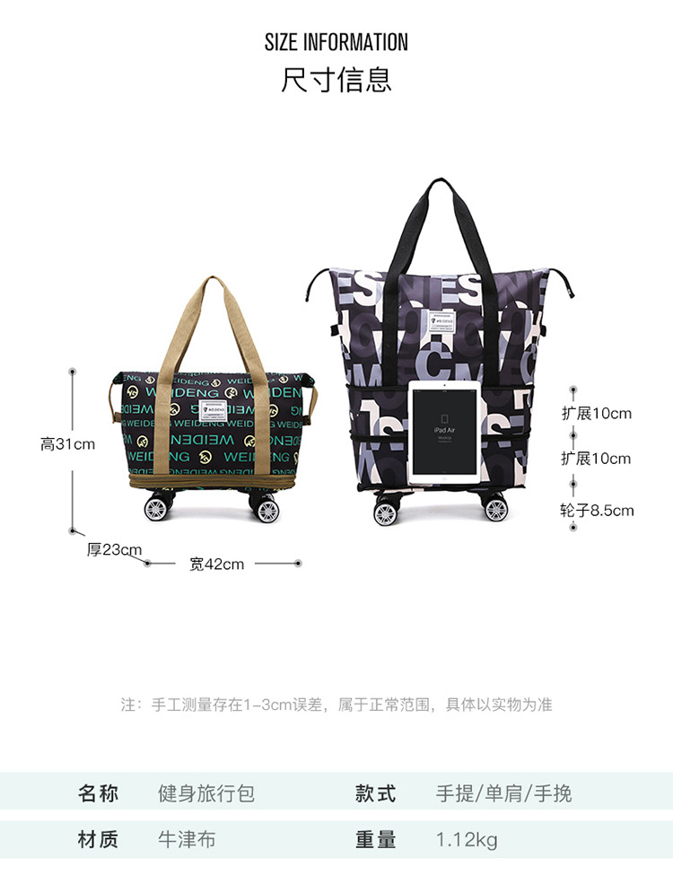 有轮子的旅行包大容量女手提带轱辘的待产包收纳袋装衣服的行李包