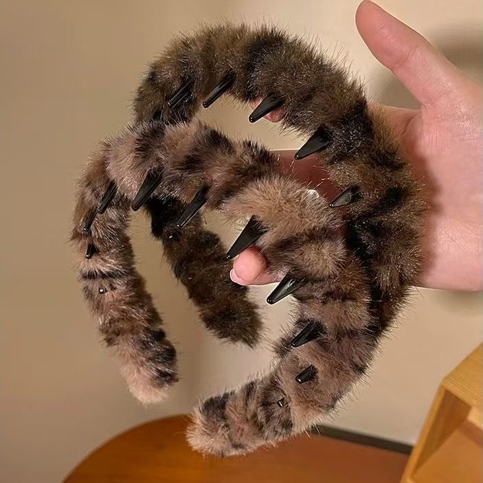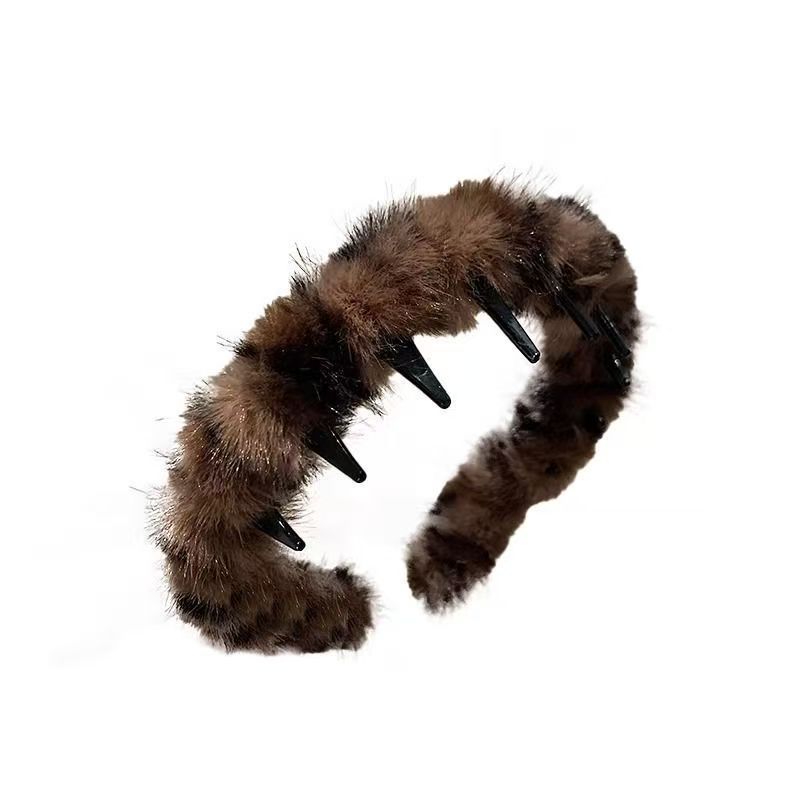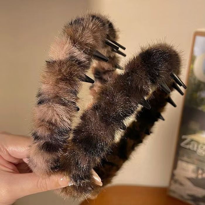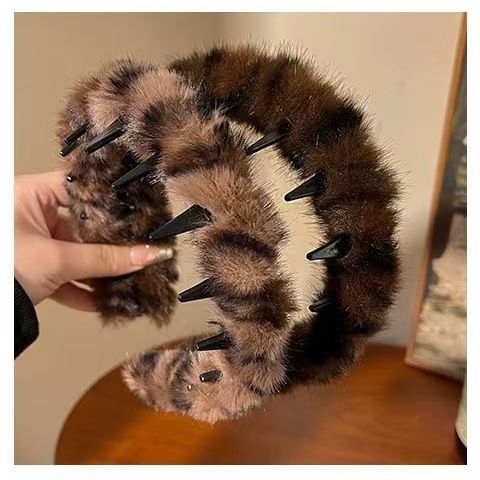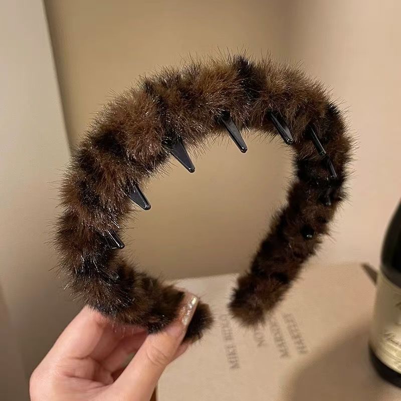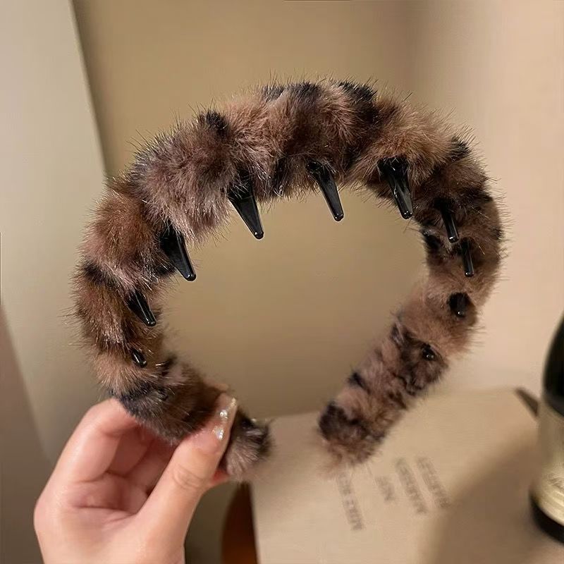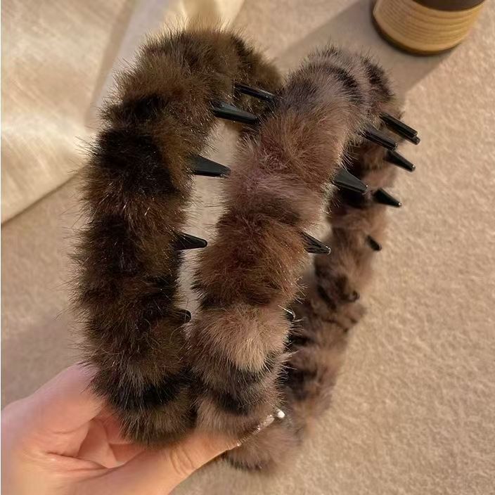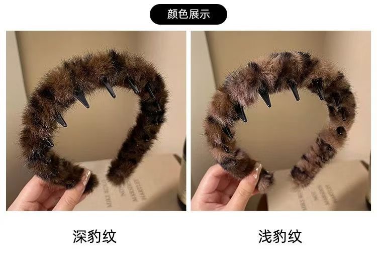 韩系复古豹纹带齿毛绒发箍女防滑洗脸发卡头箍2024年新款秋冬发卡