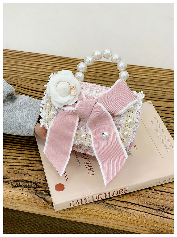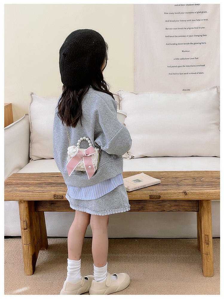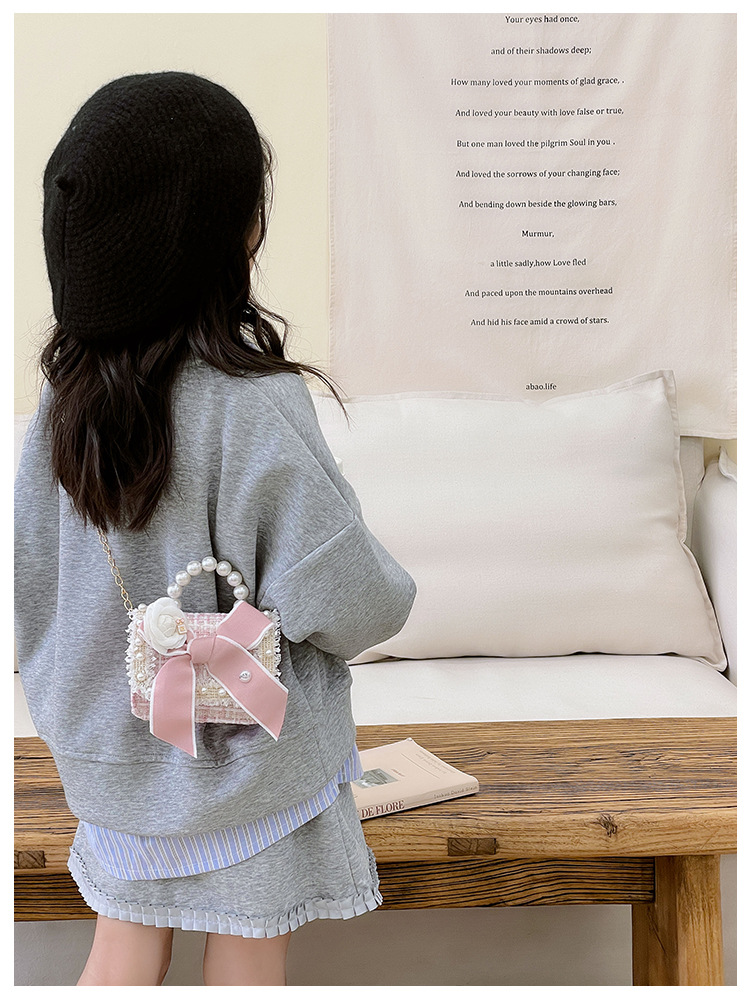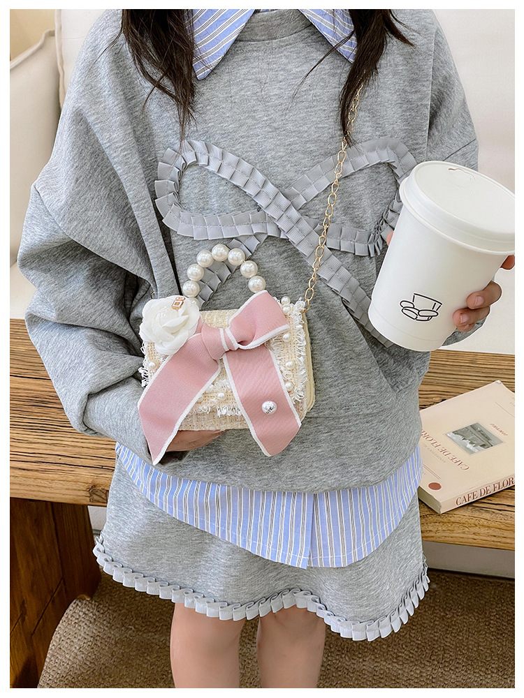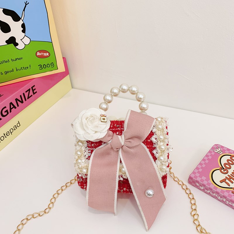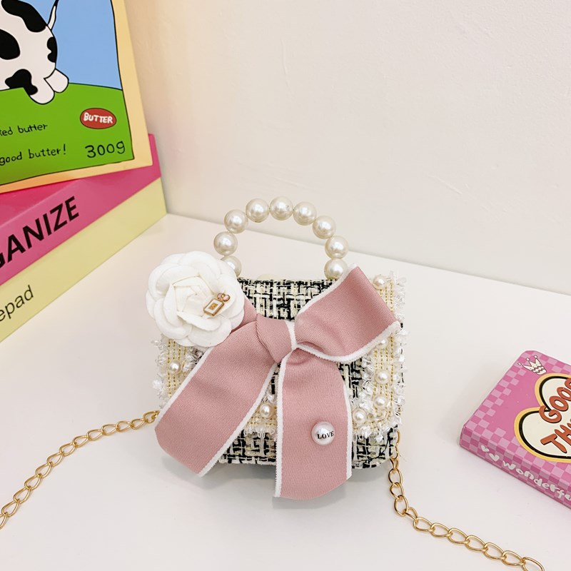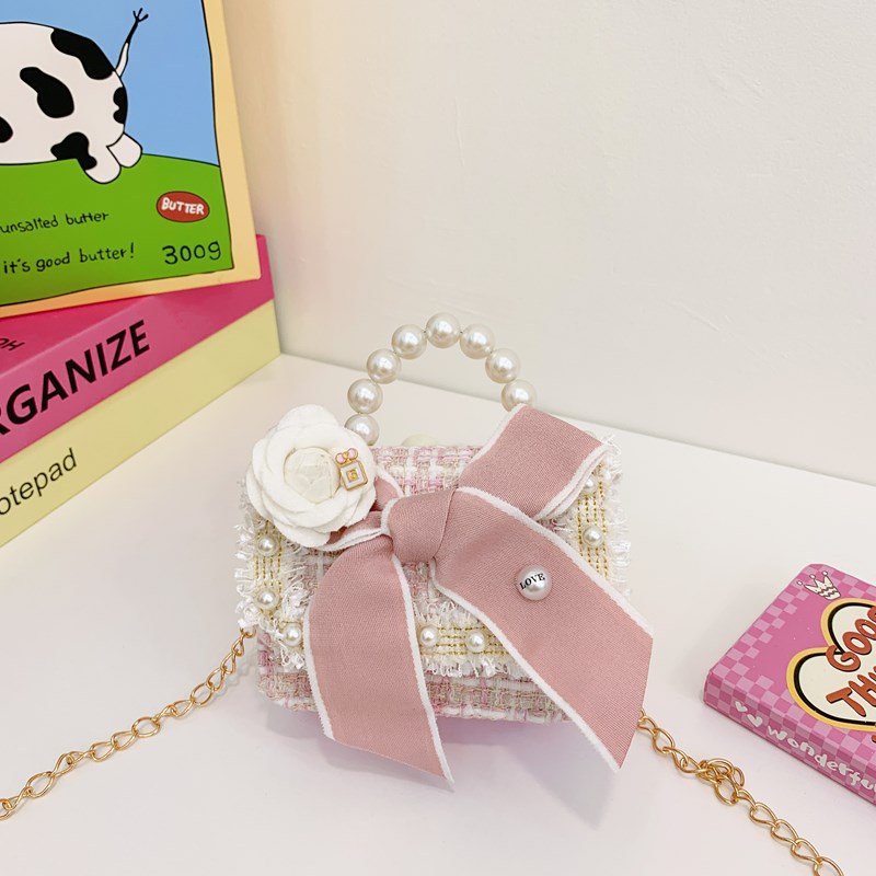 公主小香风链条包小宝宝珍珠配饰手拎包潮童可爱蝴蝶结女孩单肩包