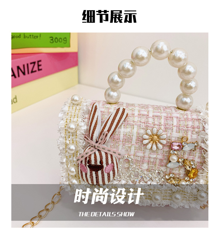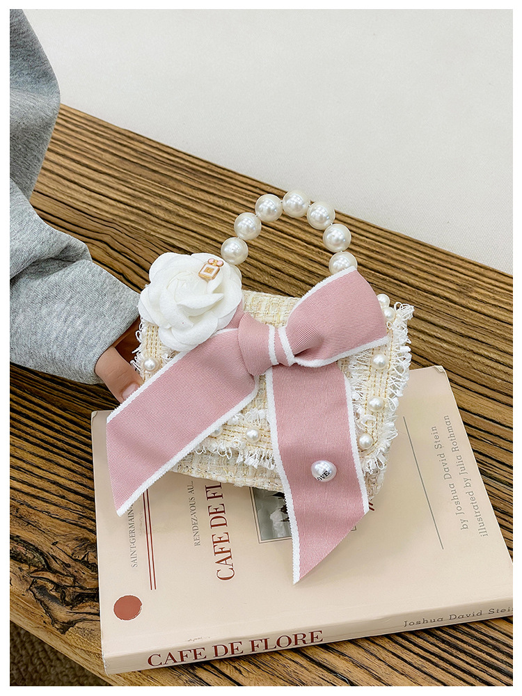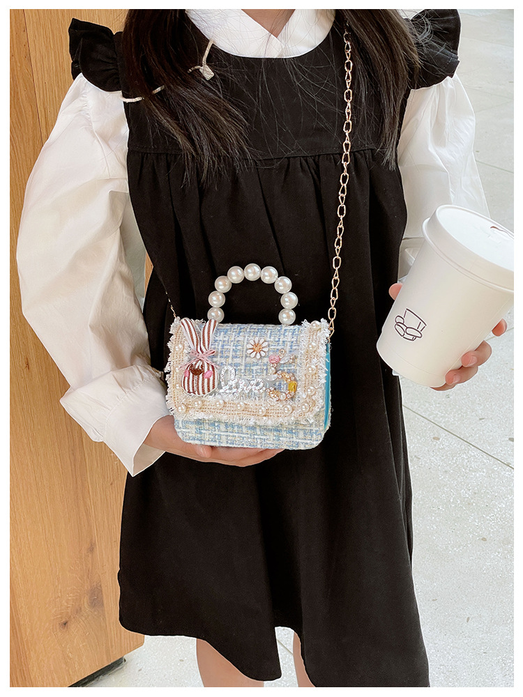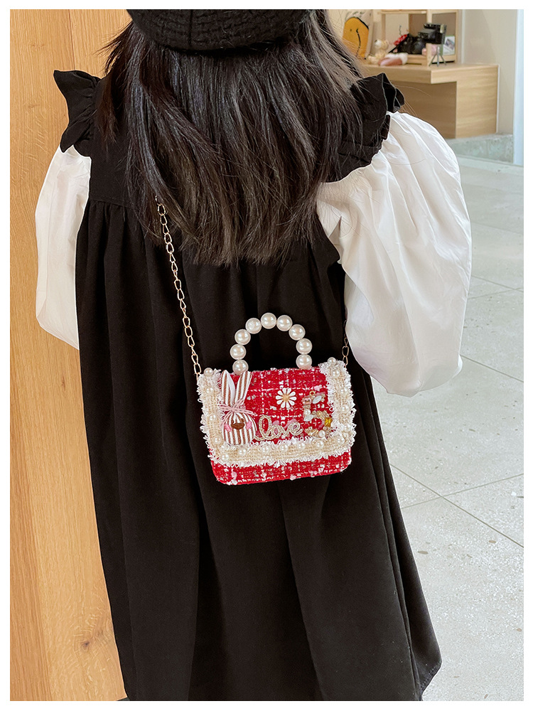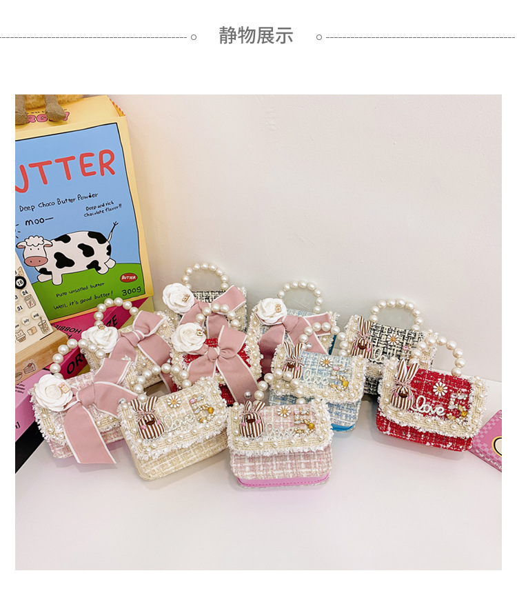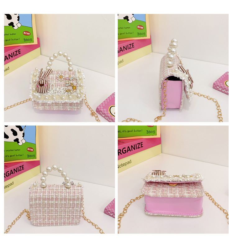 公主小香风链条包小宝宝珍珠配饰手拎包潮童可爱蝴蝶结女孩单肩包