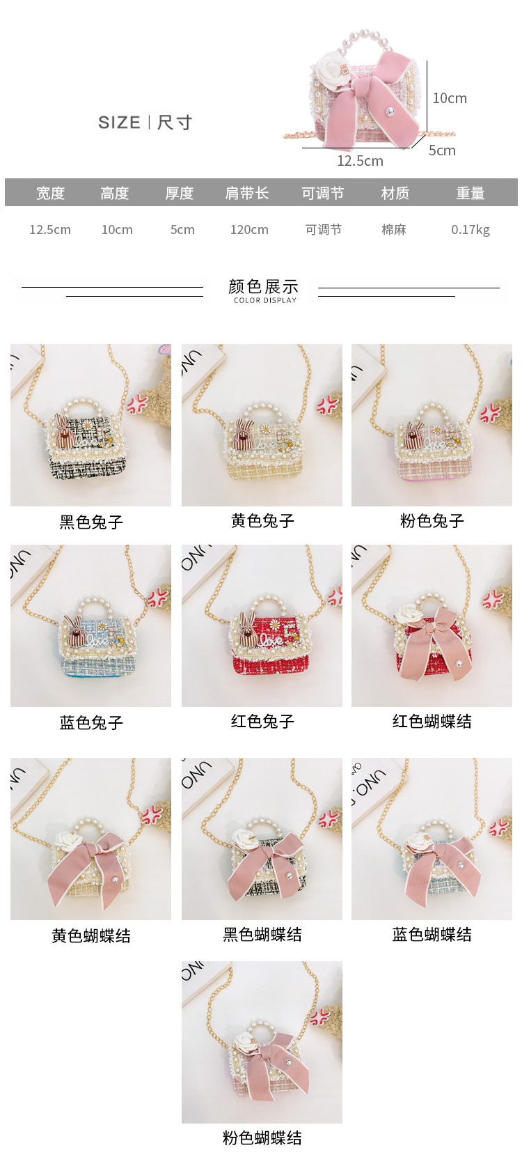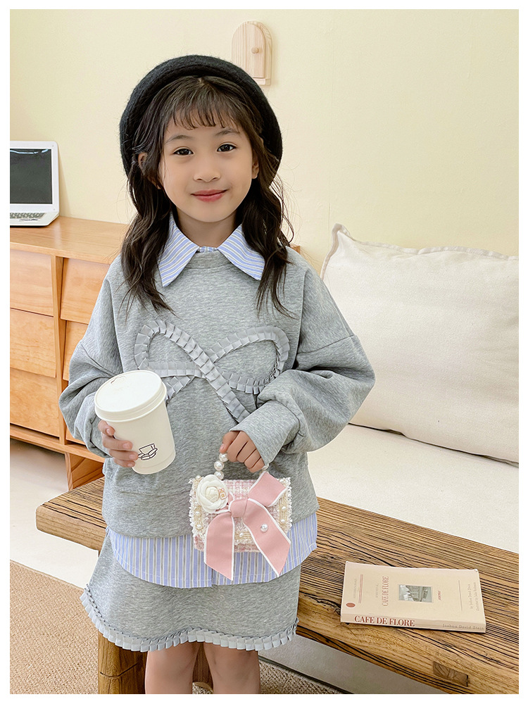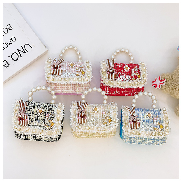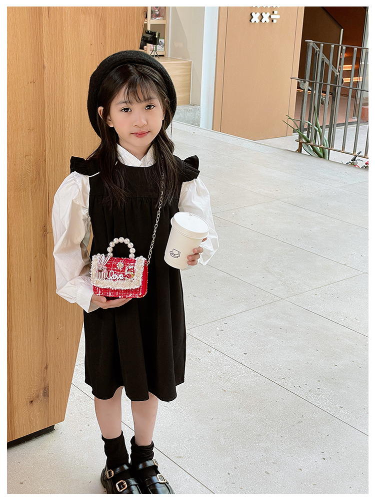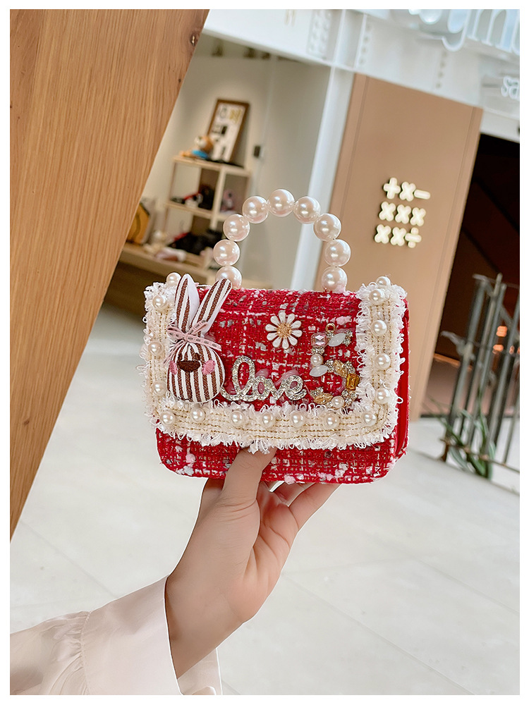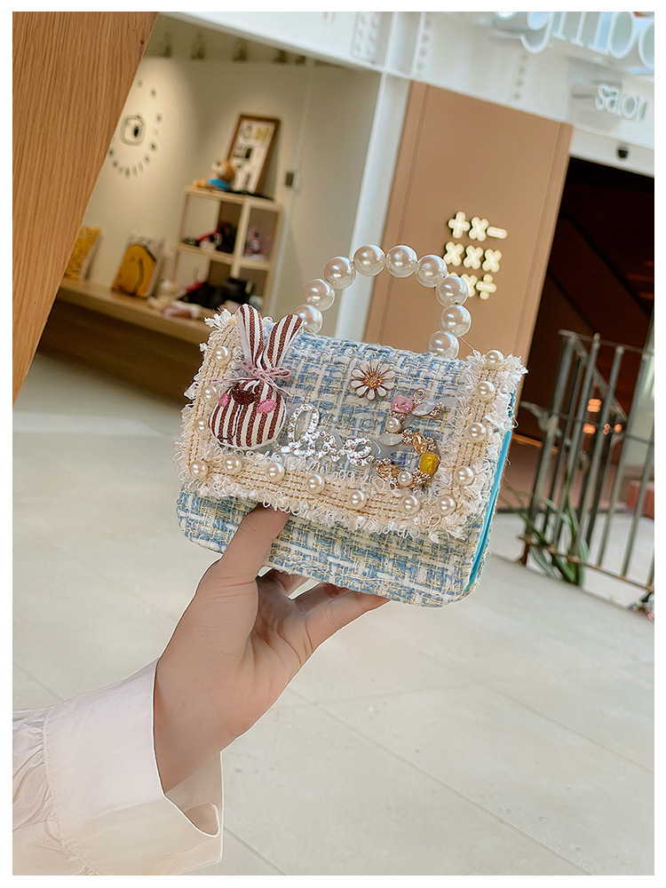 公主小香风链条包小宝宝珍珠配饰手拎包潮童可爱蝴蝶结女孩单肩包