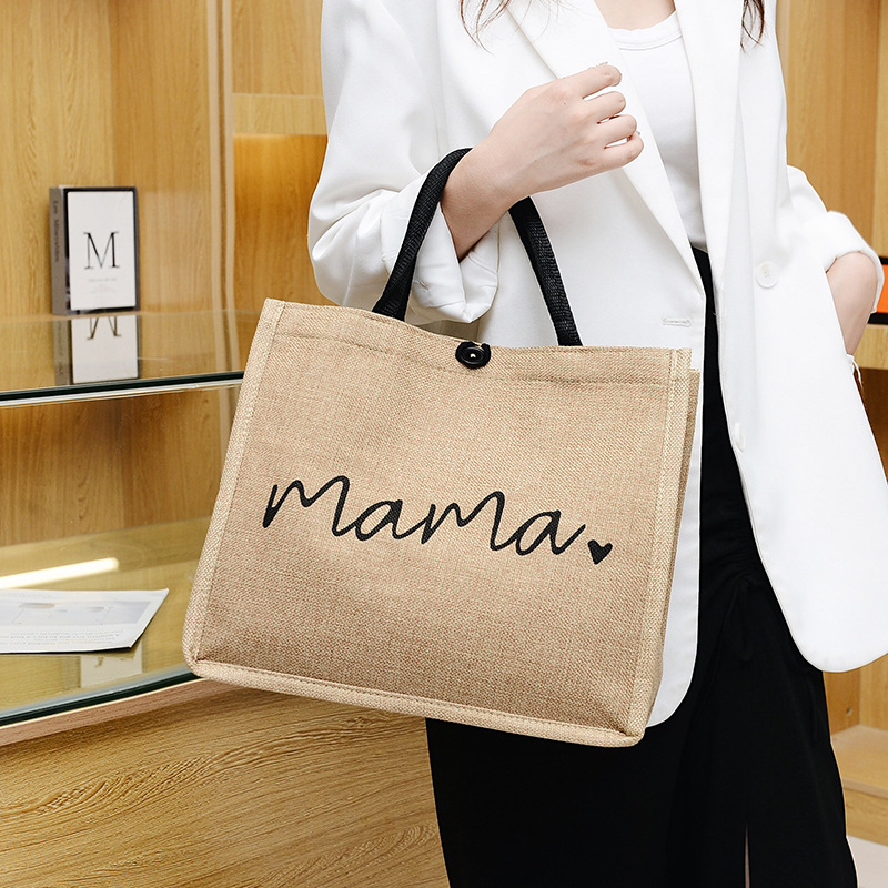 2022时尚手提麻布女包大容量休闲单肩包韩版潮搭字母包女一件代发