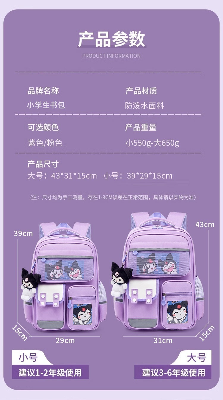 库洛米可爱女生儿童书包减负小学生六年级护脊大容量卡通双肩包