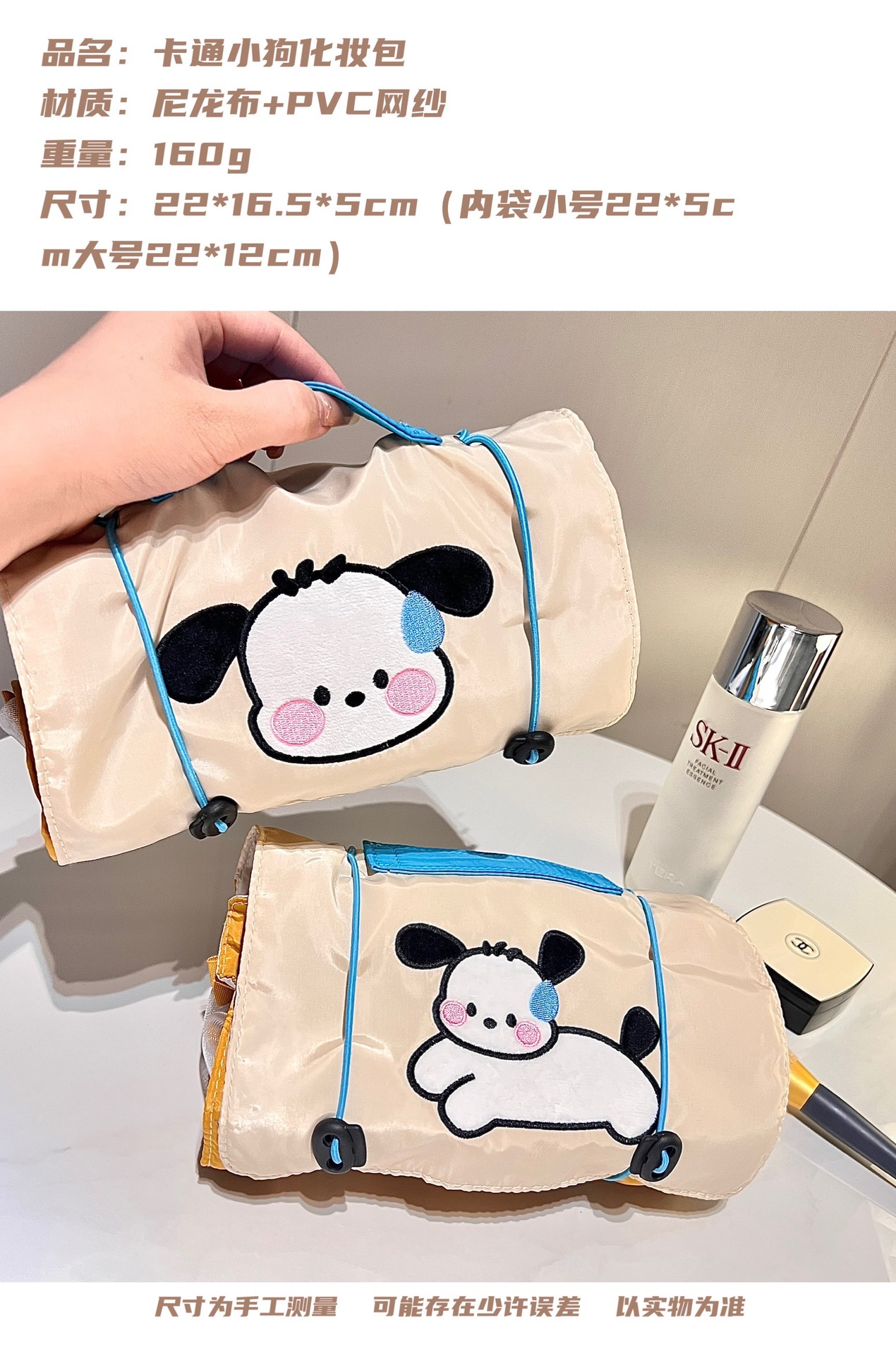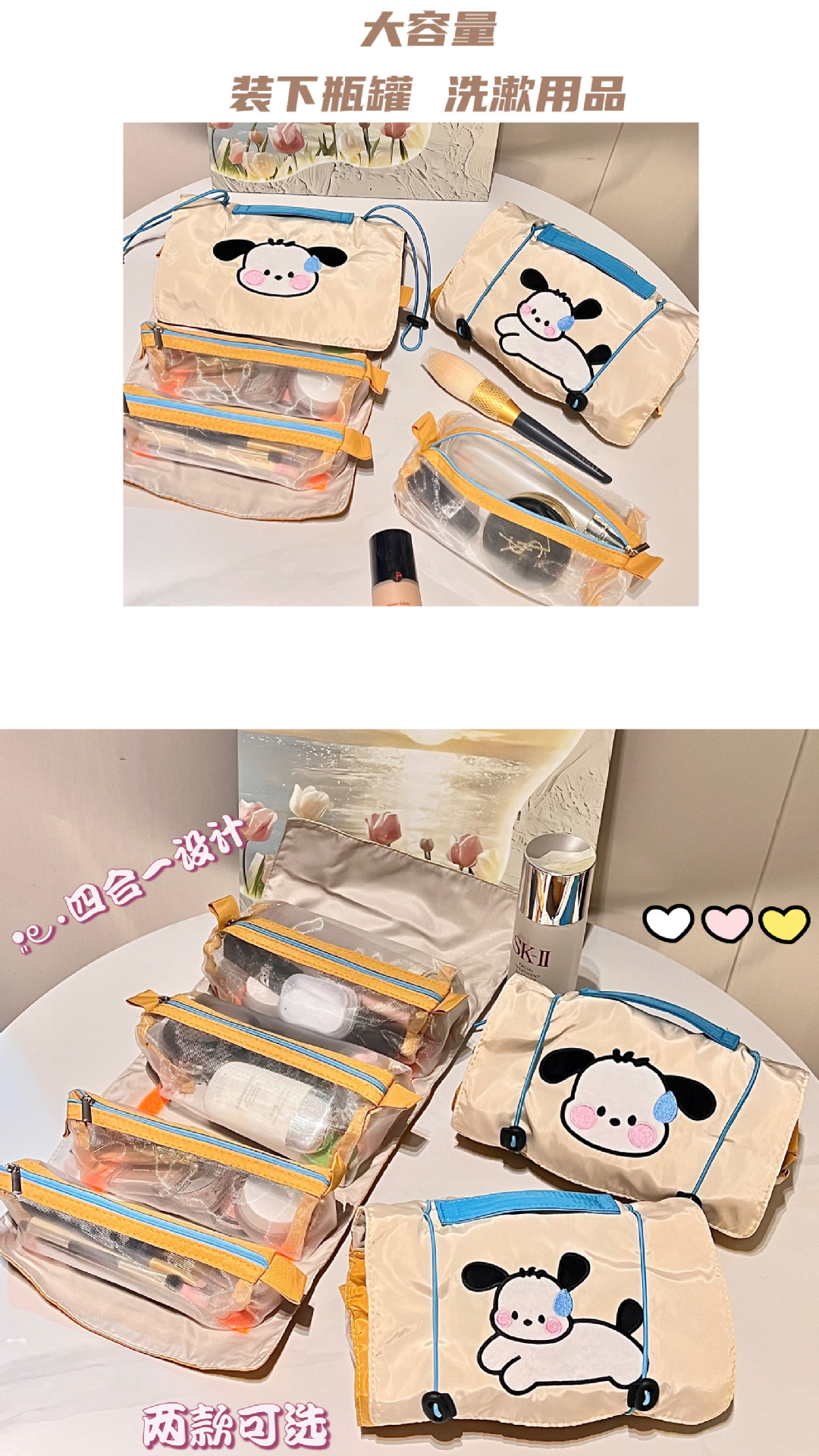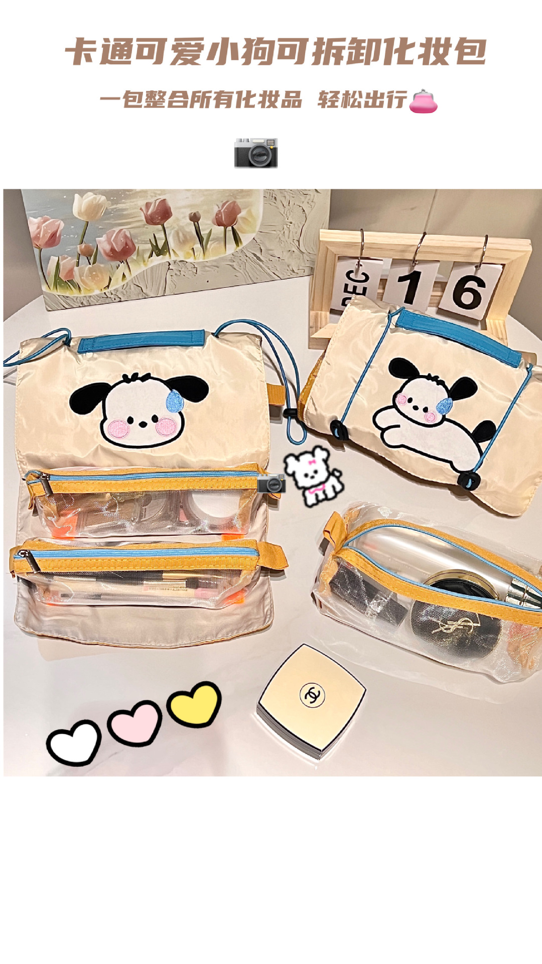 小狗四合一化妆包女ins风便携大容量旅行收纳袋可拆卸网纱收纳包