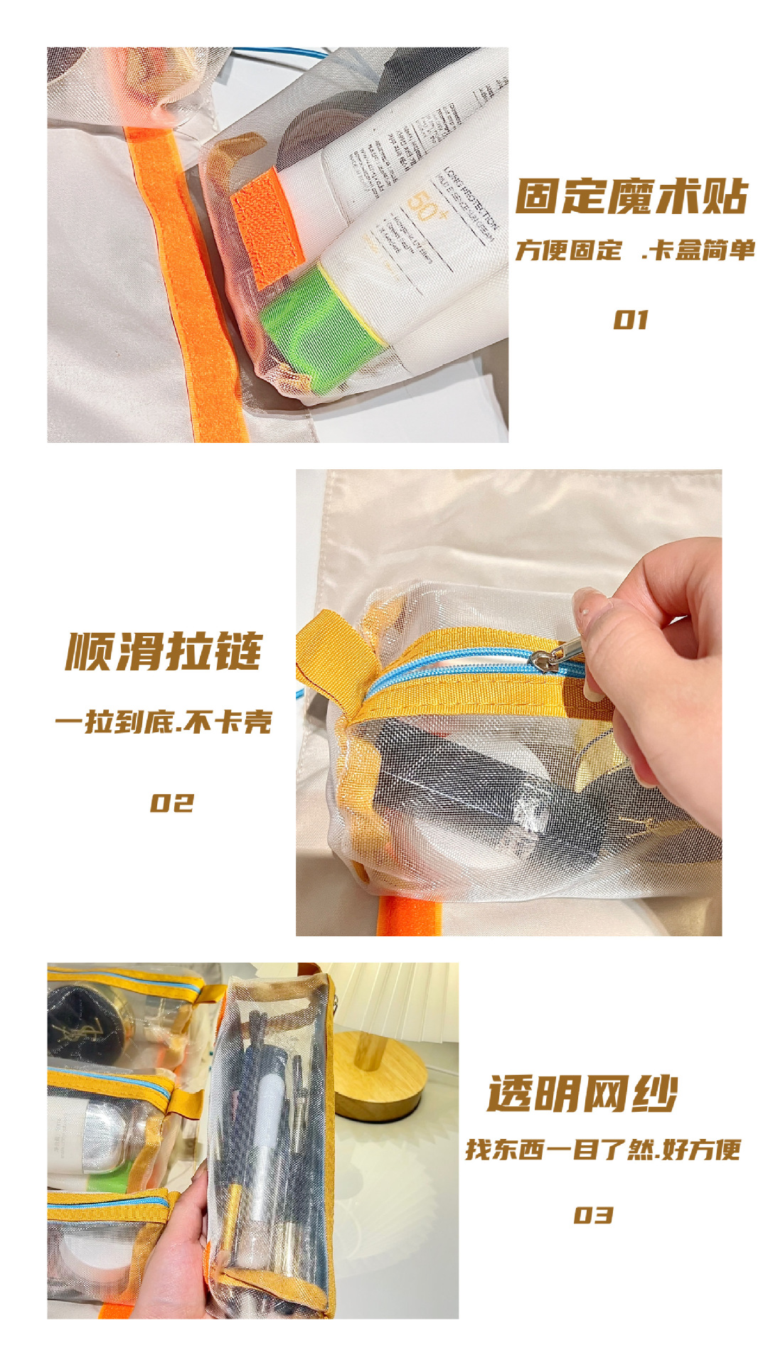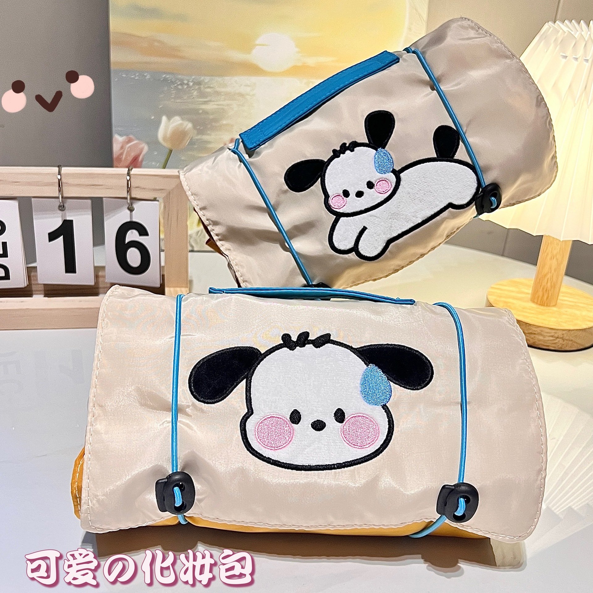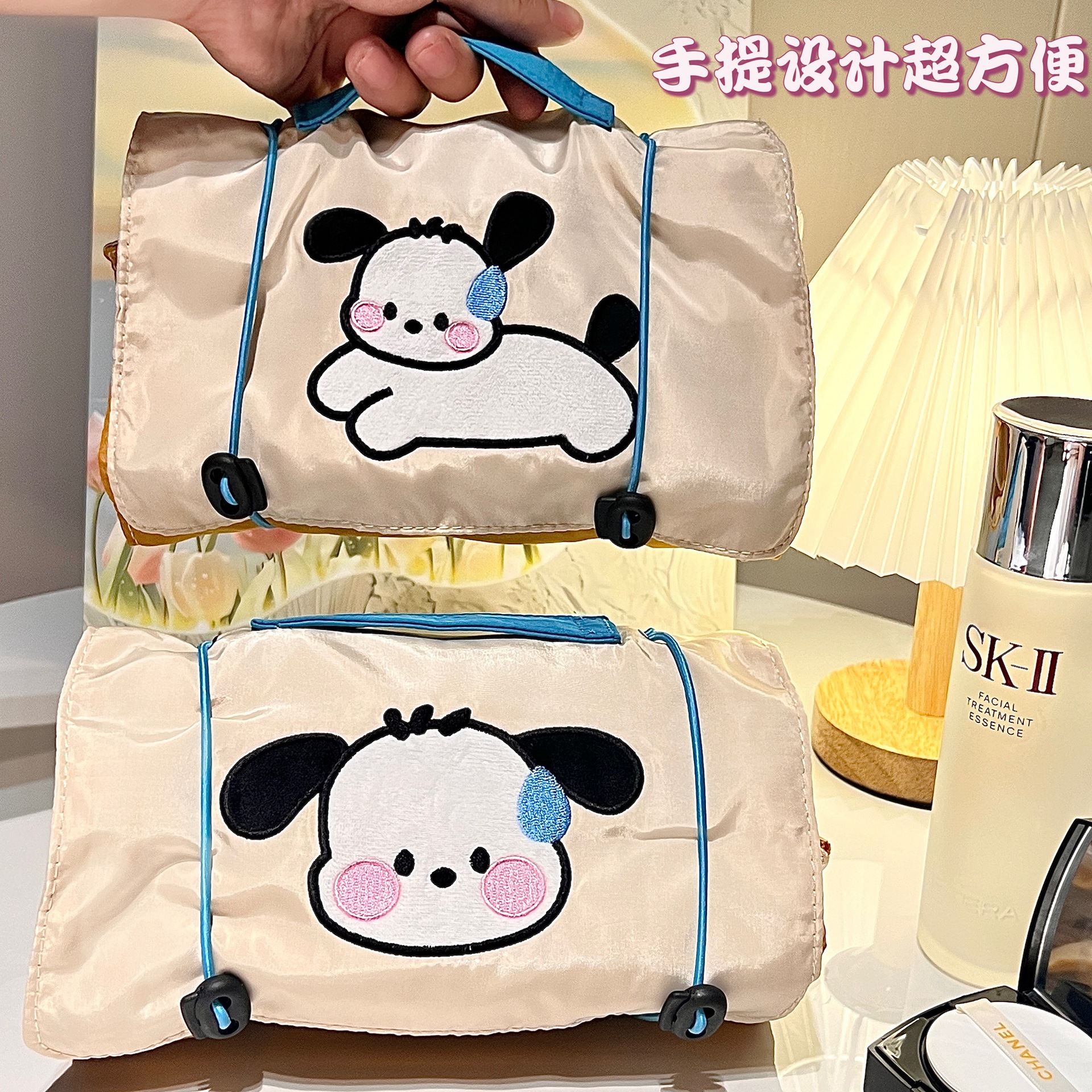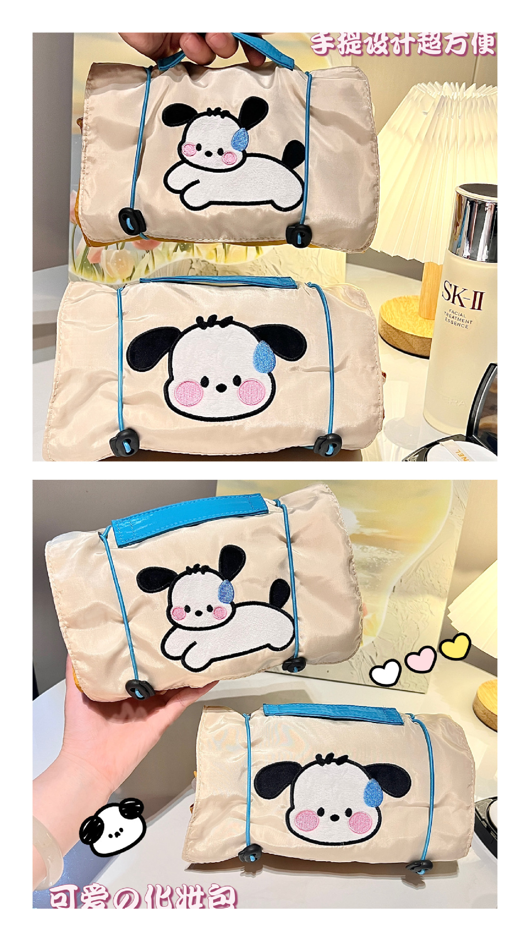 小狗四合一化妆包女ins风便携大容量旅行收纳袋可拆卸网纱收纳包