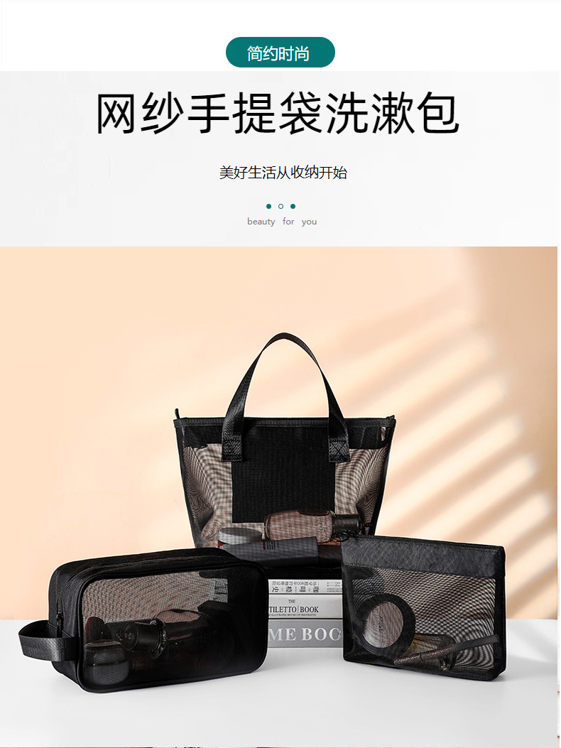 新款大容量网纱洗漱包手提旅行化妆刷化妆品便携式沙滩洗浴套装