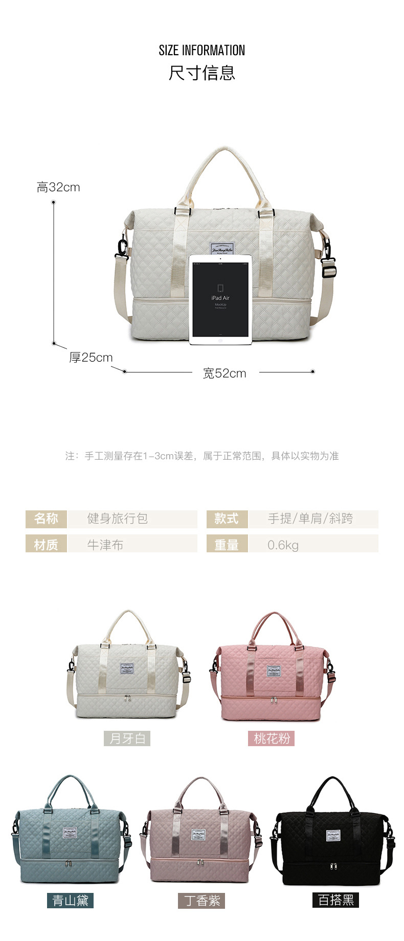 跨境旅行包干湿分离瑜伽运动健身包压痕手提独立鞋仓大容量待产包