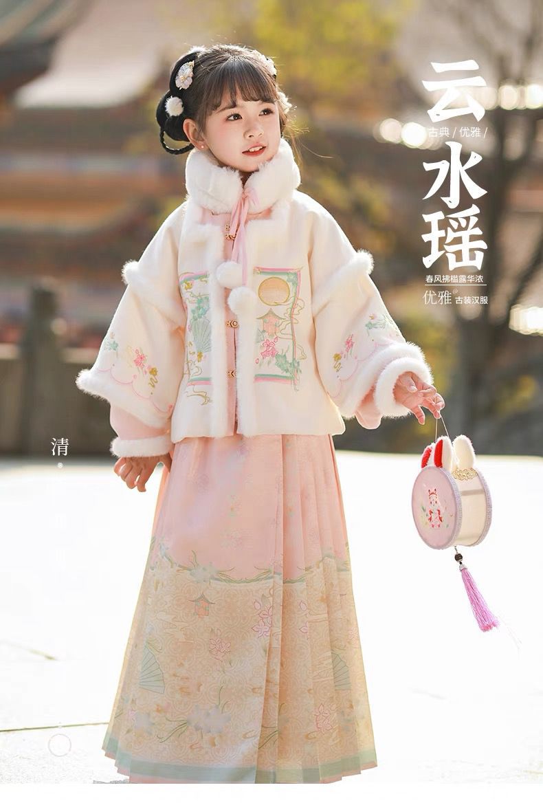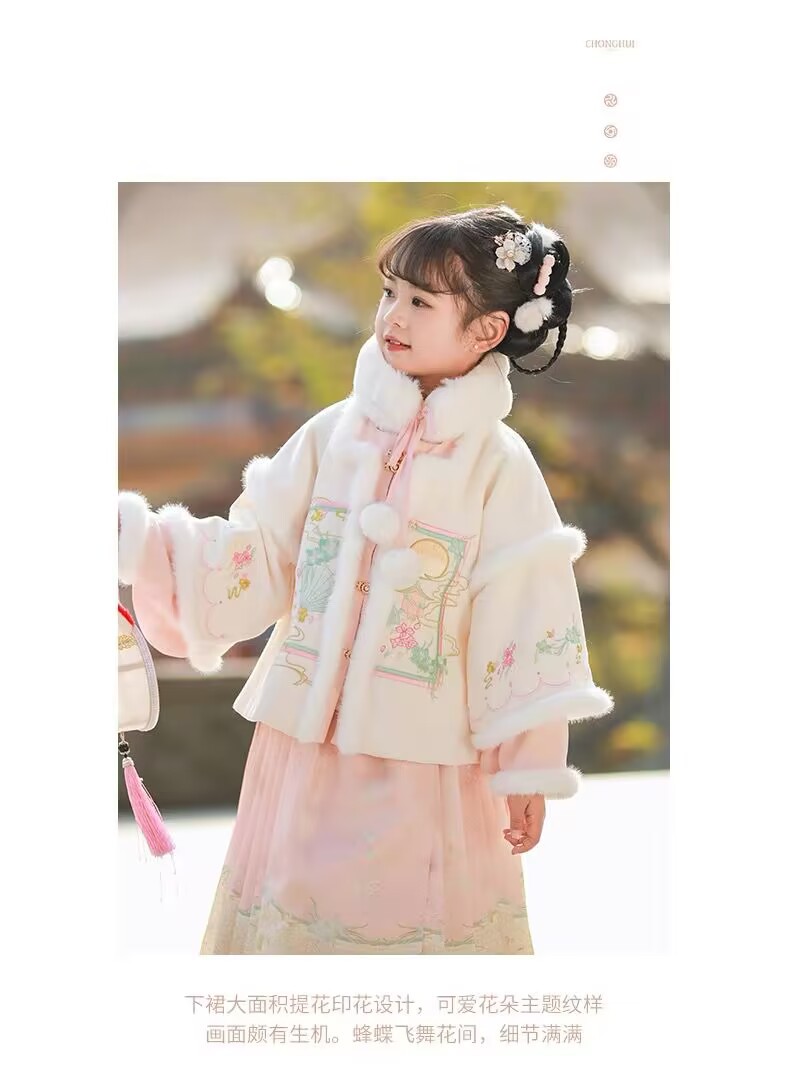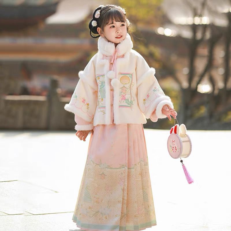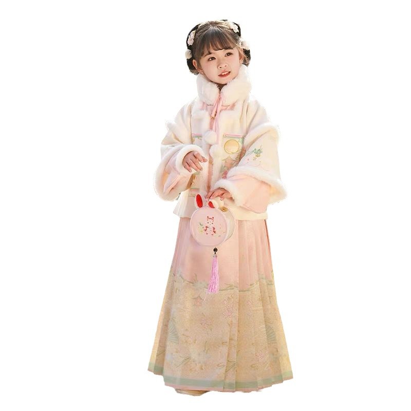 汉服女童冬季加厚明制马面裙套装冬款2024新款儿童唐装拜年服秋冬