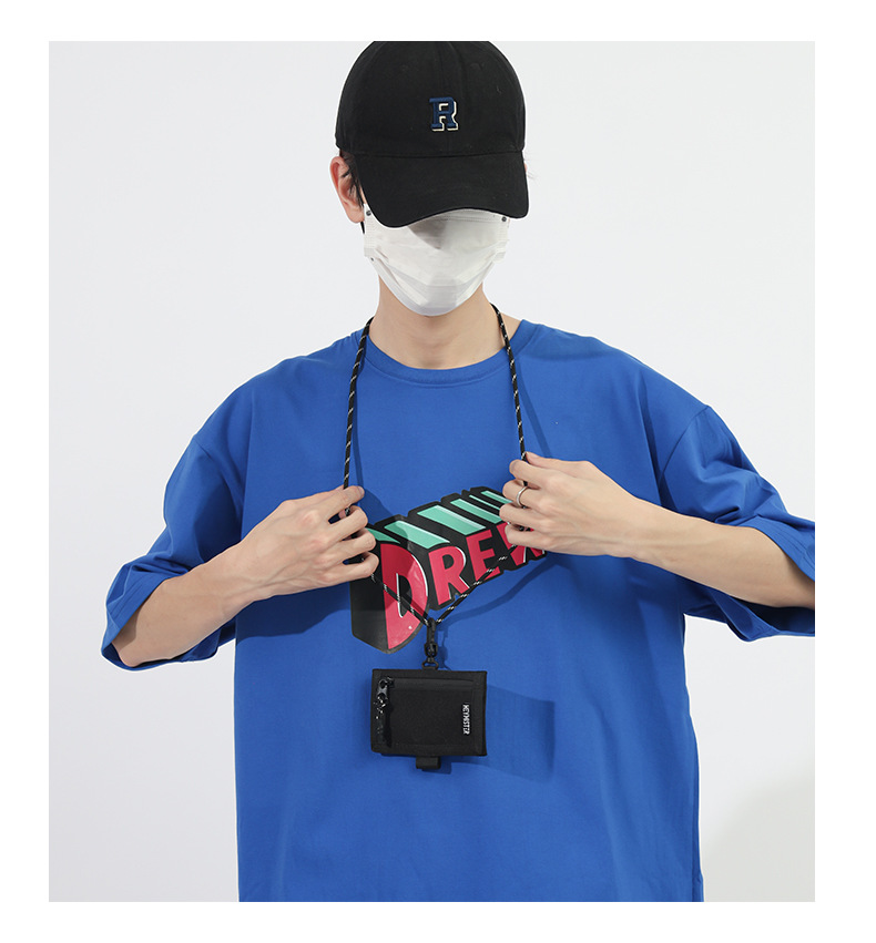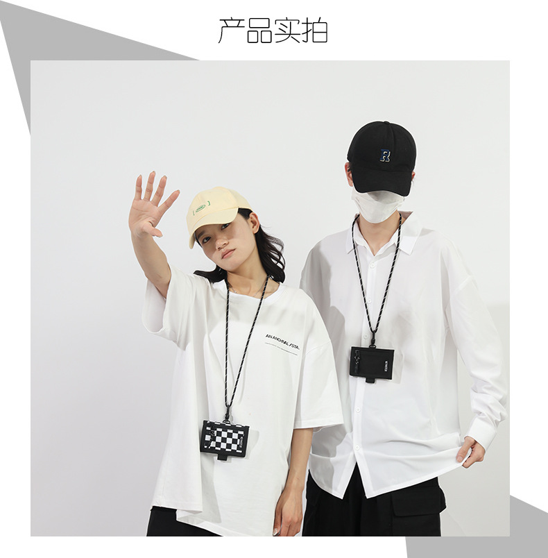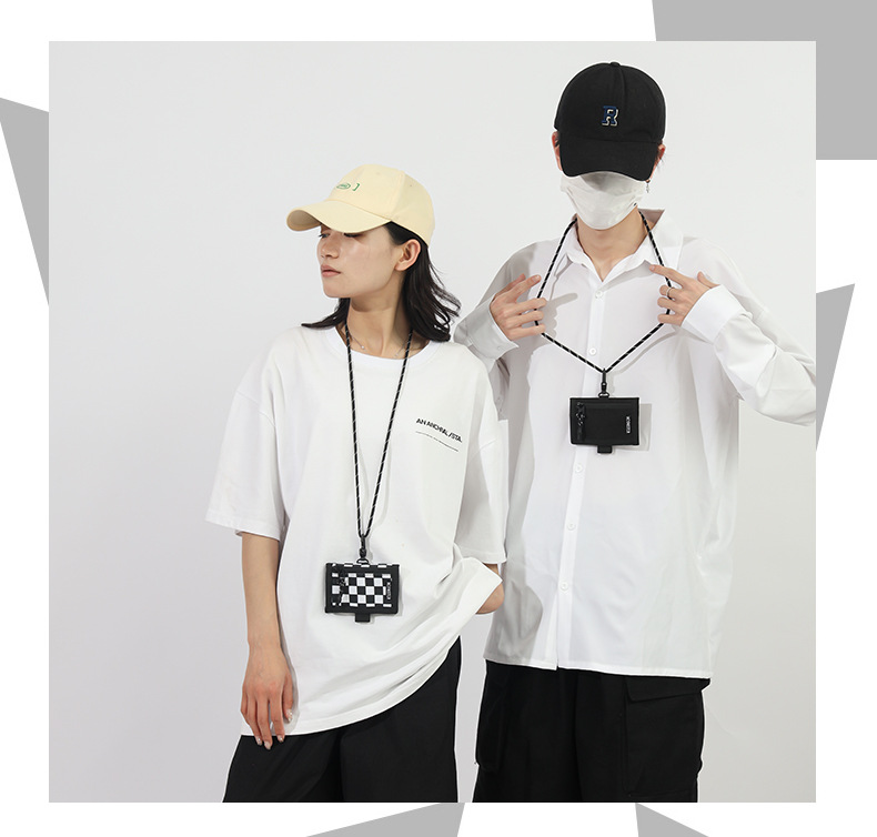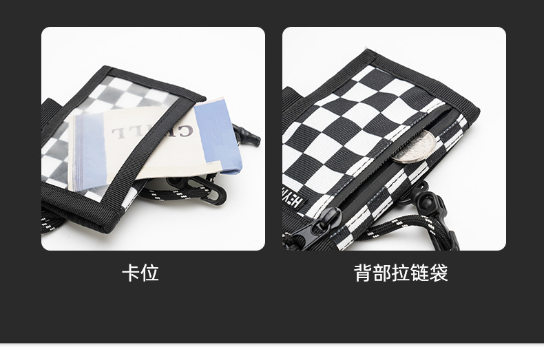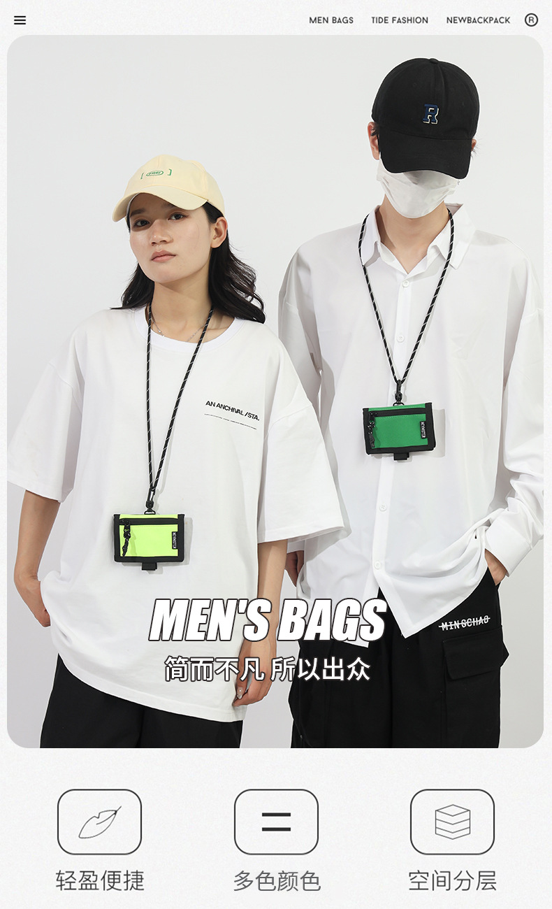 2024新款日系ins街头潮牌挂脖编织拼色斜挎包卡包零钱包公交工牌