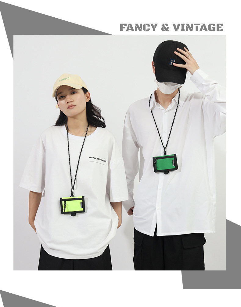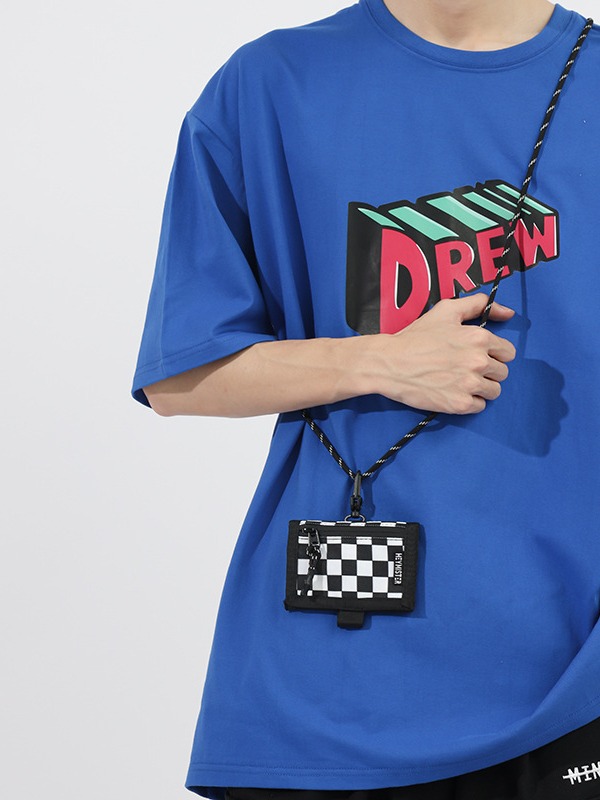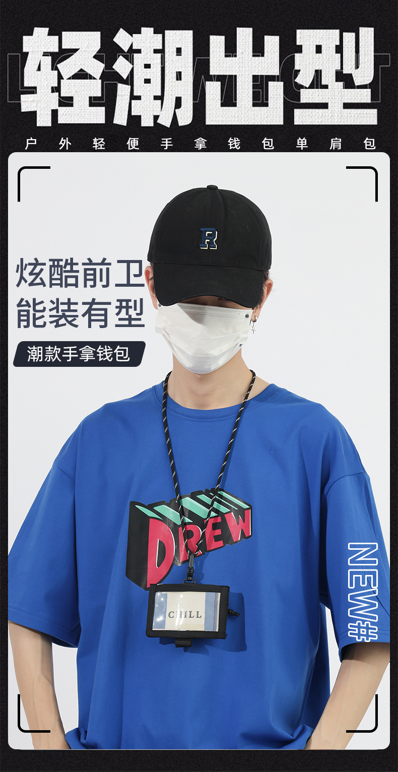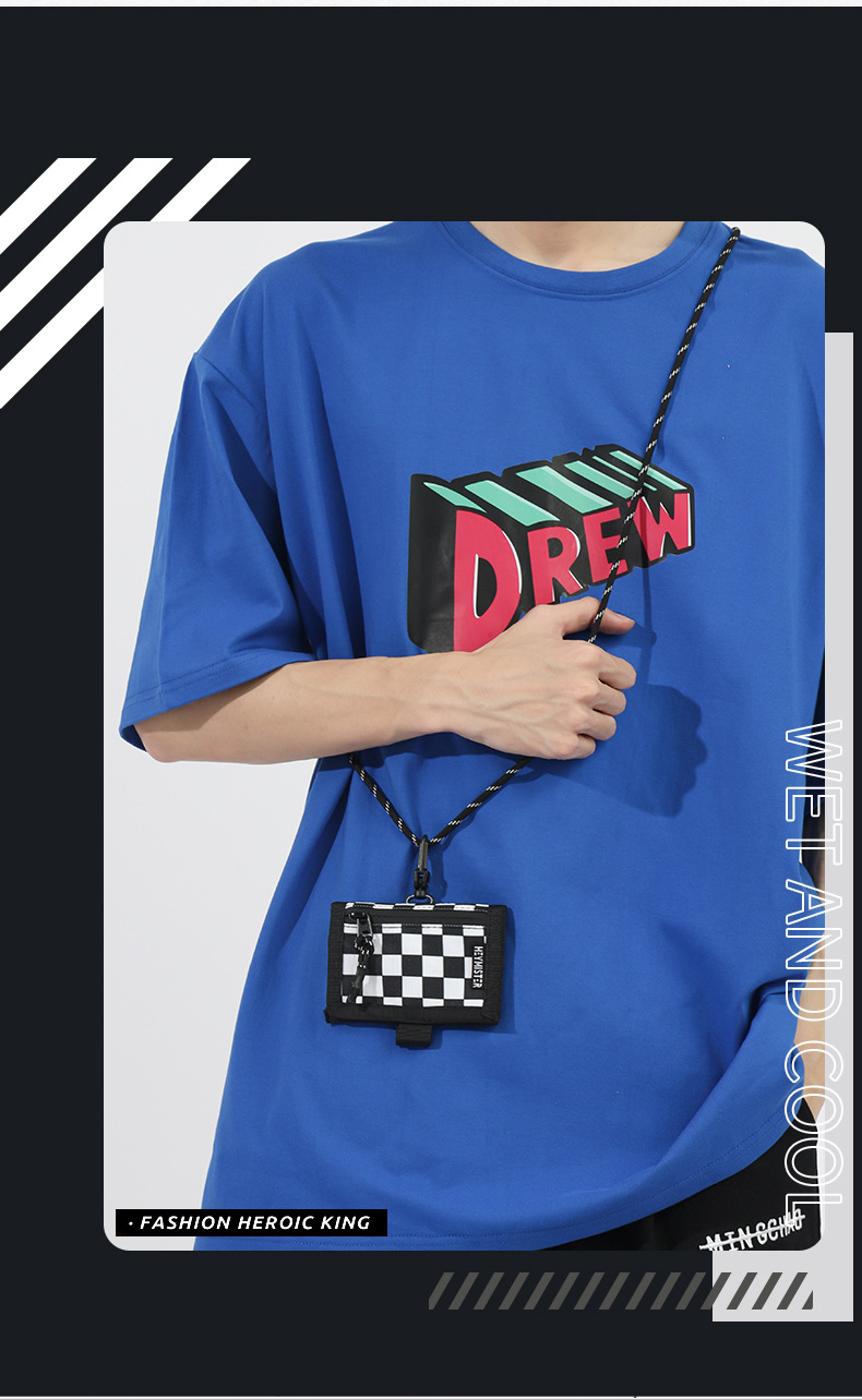 2024新款日系ins街头潮牌挂脖编织拼色斜挎包卡包零钱包公交工牌