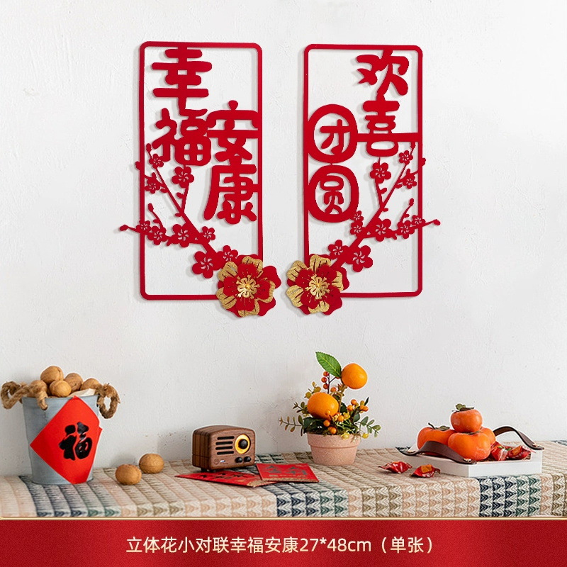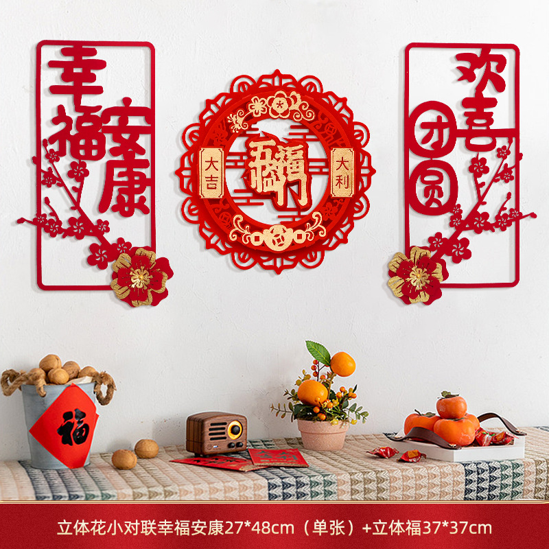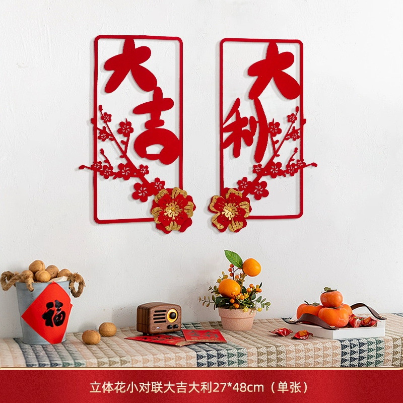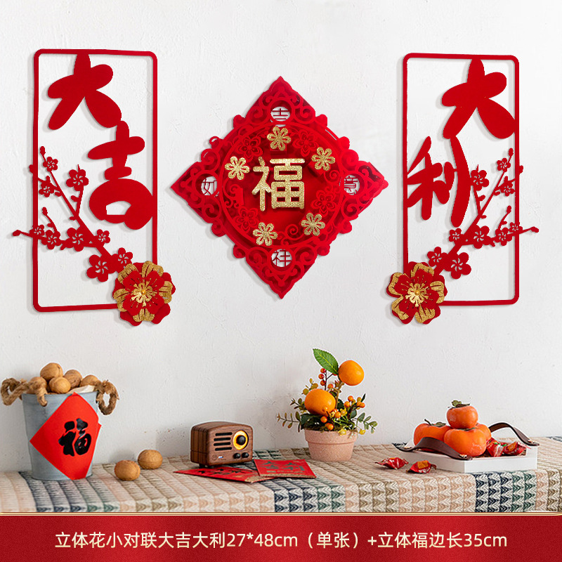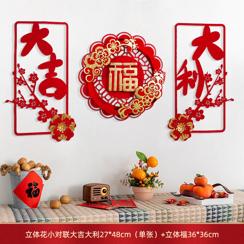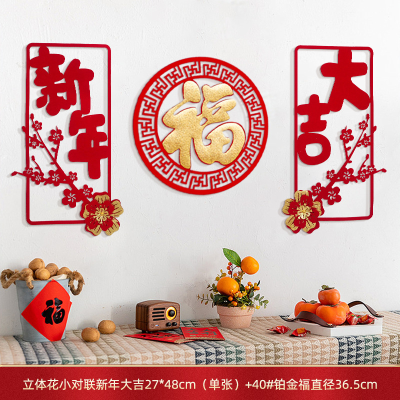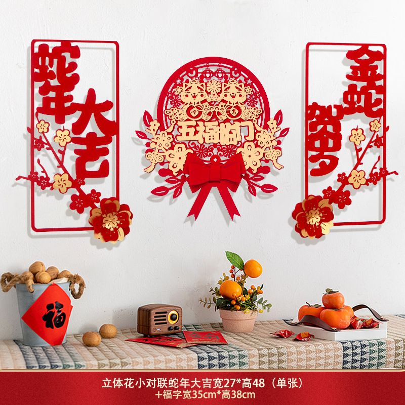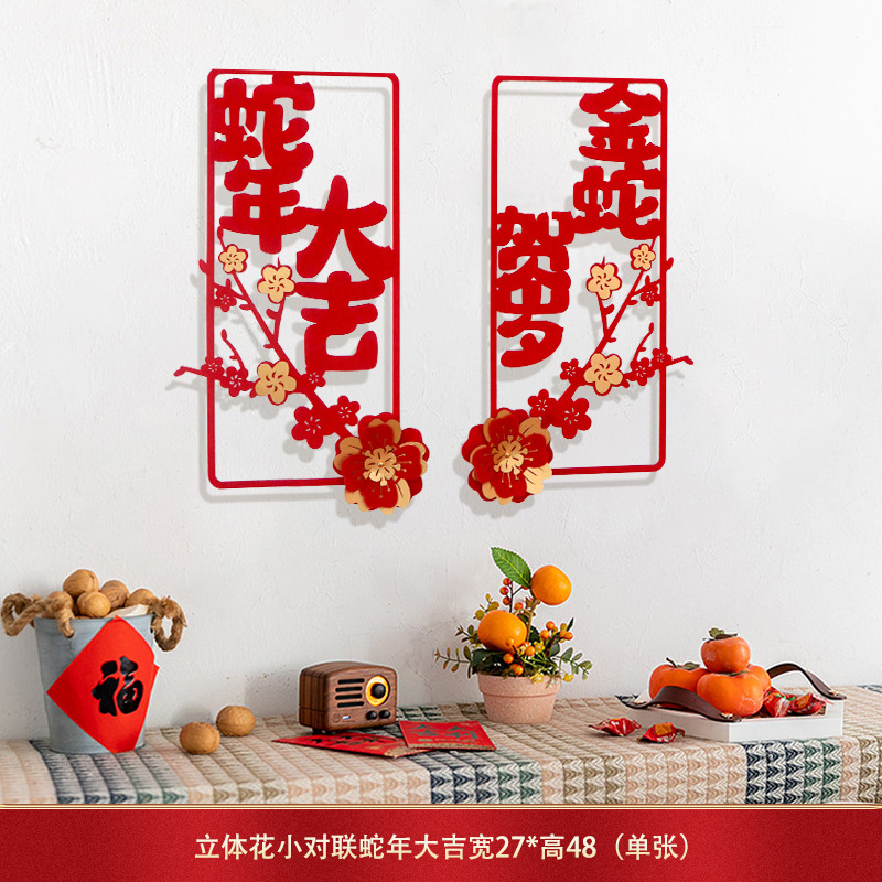 蛇年对联春联元旦立体花朵新年装饰春节福字门贴纸