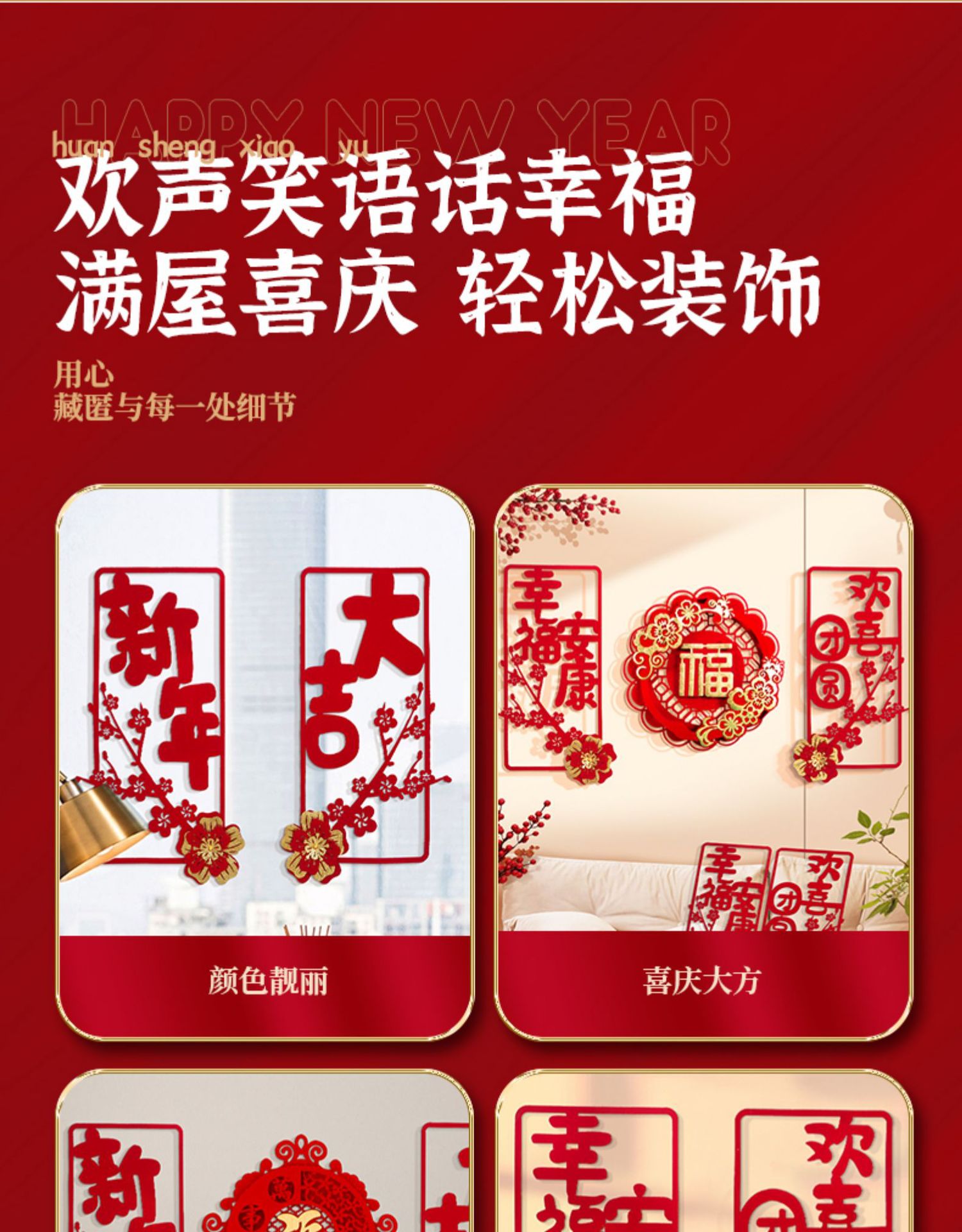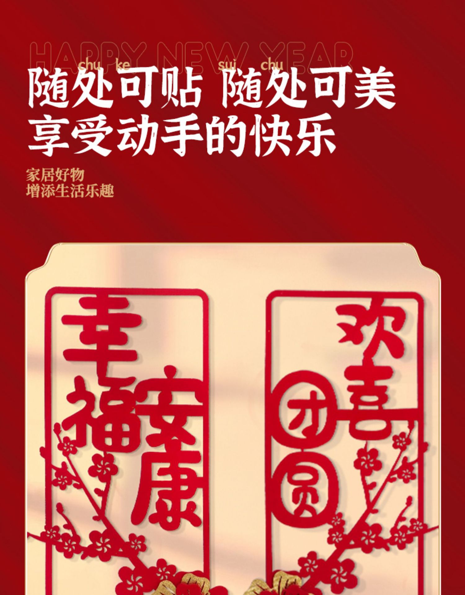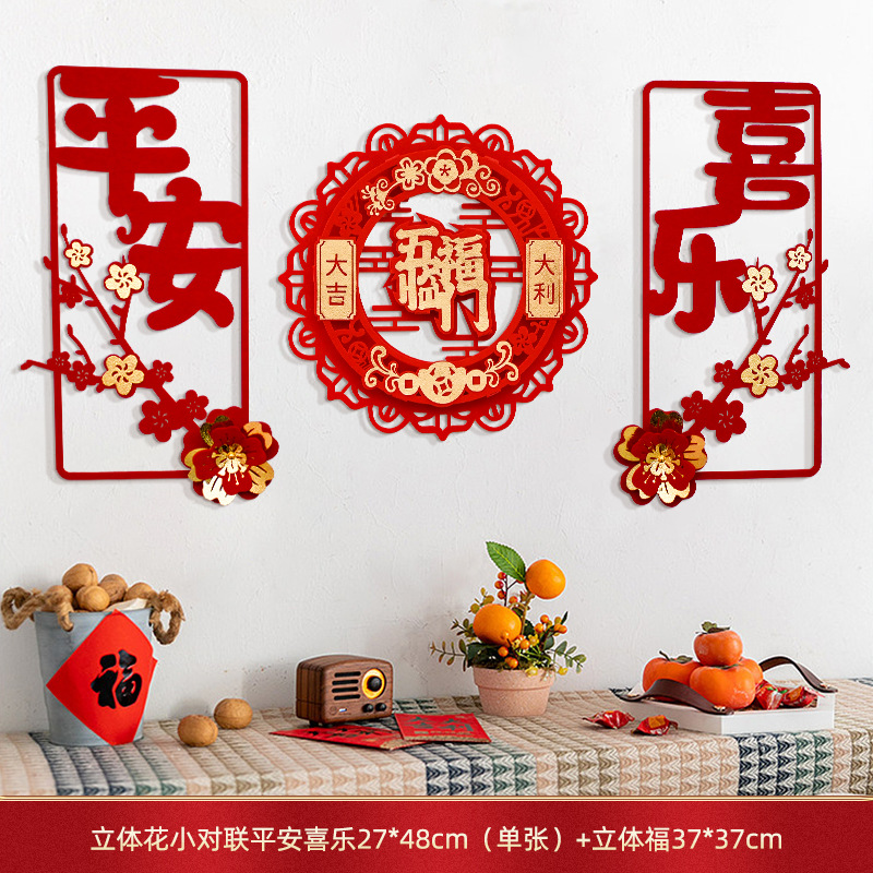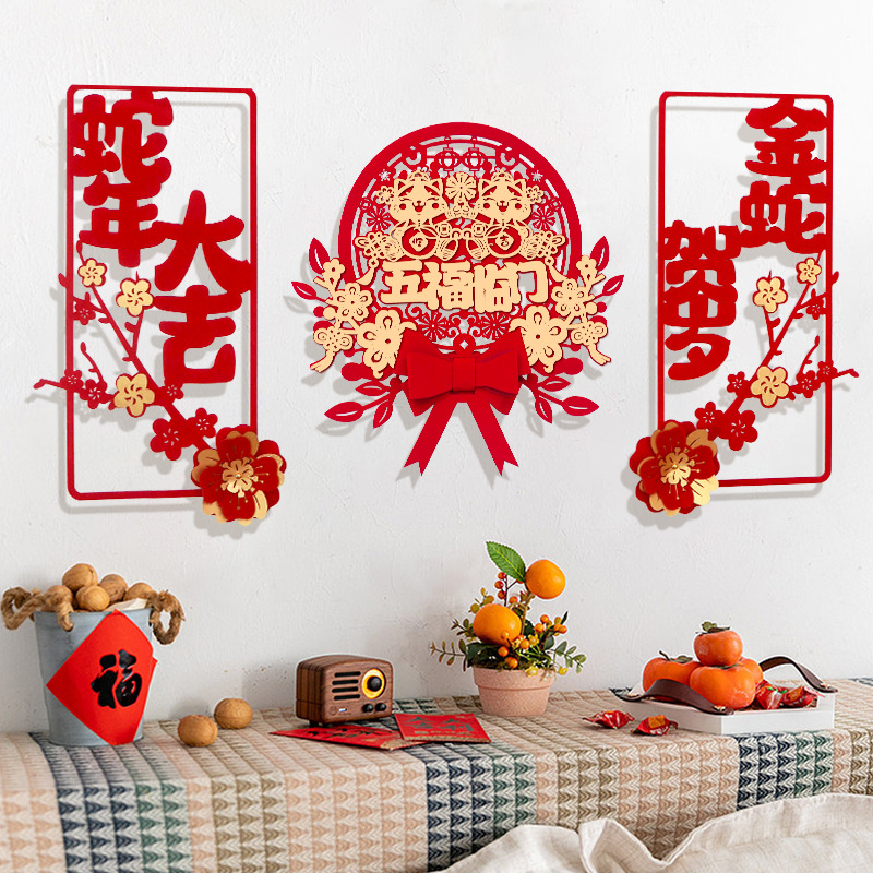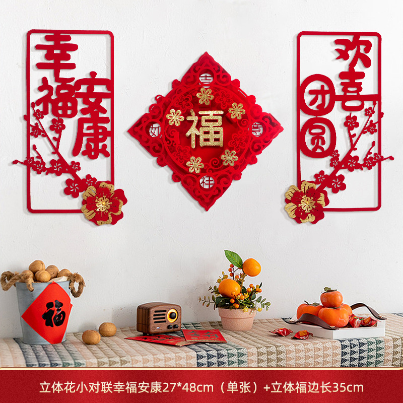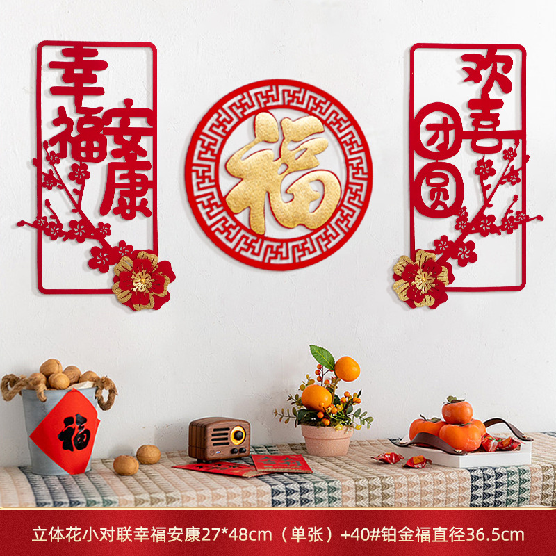 蛇年对联春联元旦立体花朵新年装饰春节福字门贴纸