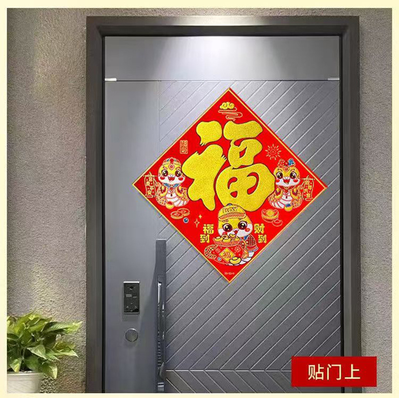 春节福字门贴自粘绒布烫金新年过年装饰贴纸地摊年货批发