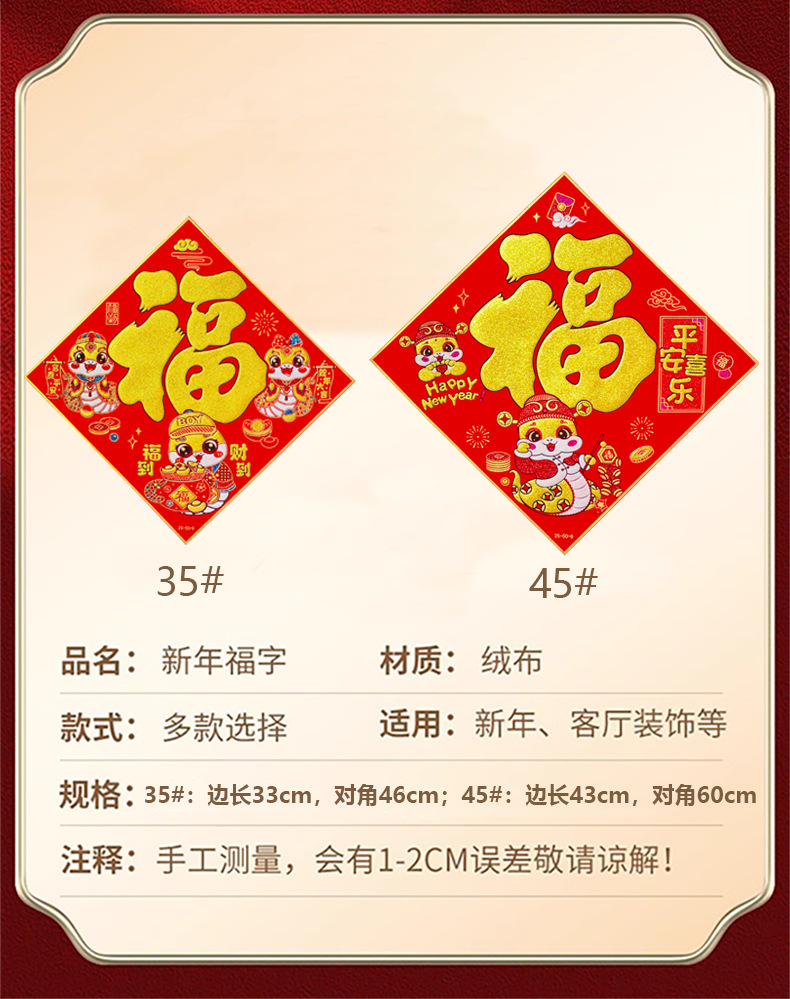 | 绒布福字【自带背胶】 | USD $0.93 | 10000 zhang available |