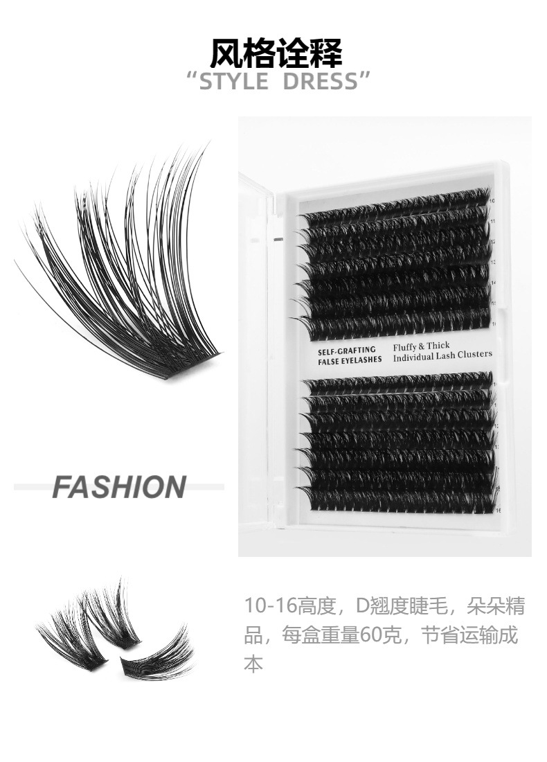 3D凌乱款热熔朵毛80D单簇假睫毛跨境款种植假睫毛DIY自嫁接睫毛