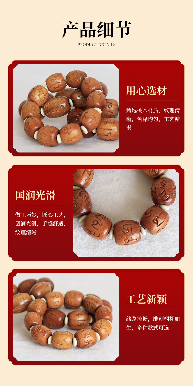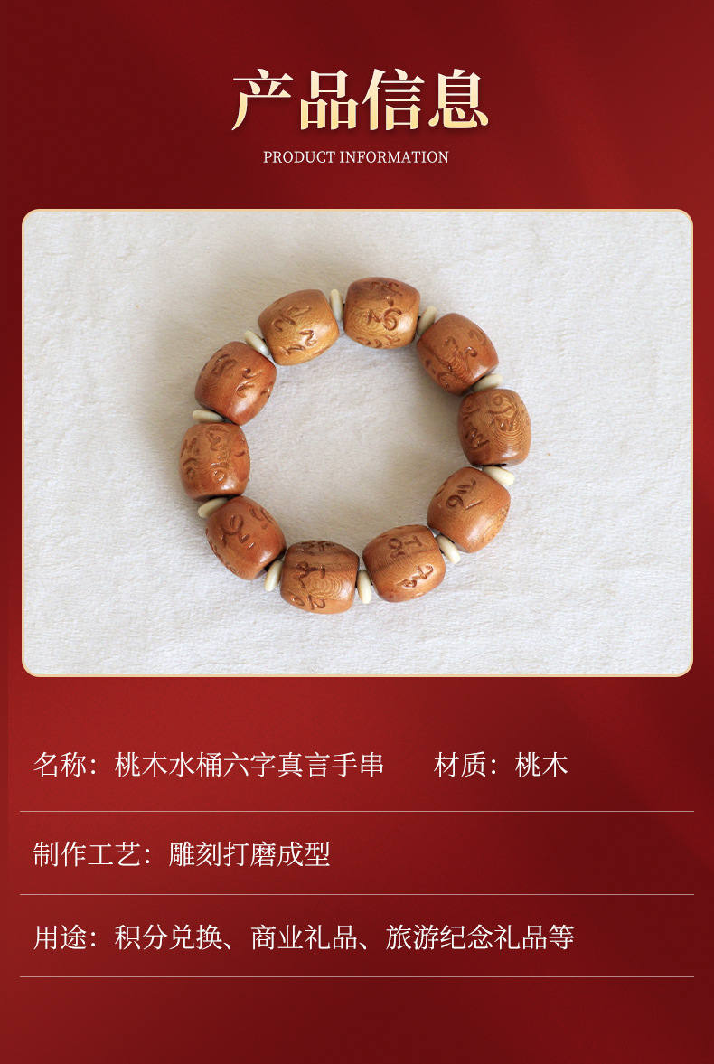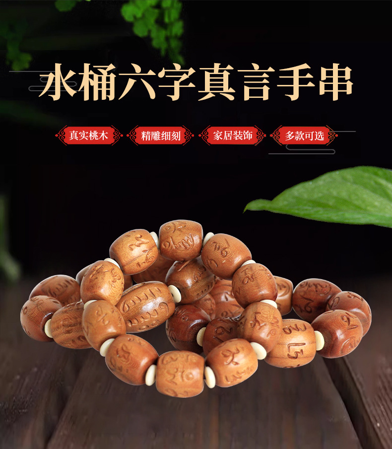 水桶六字真言手串男女款佛珠文玩工艺品念珠首饰厂家批发桃木手串