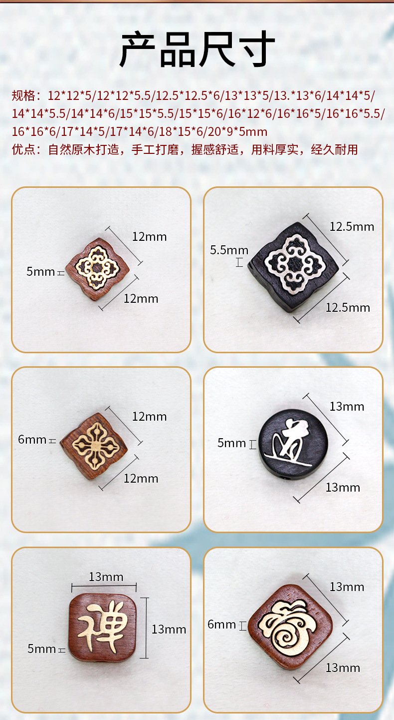 桃木花梨木掐丝配件镶嵌黄铜DIY饰品钥匙扣配件祥云莲花背云吊坠