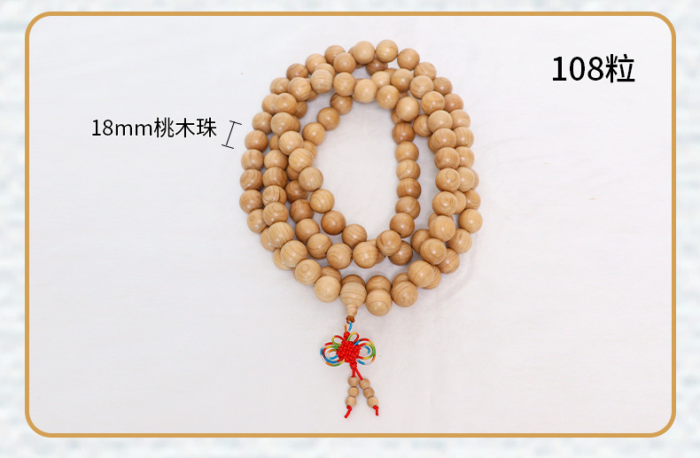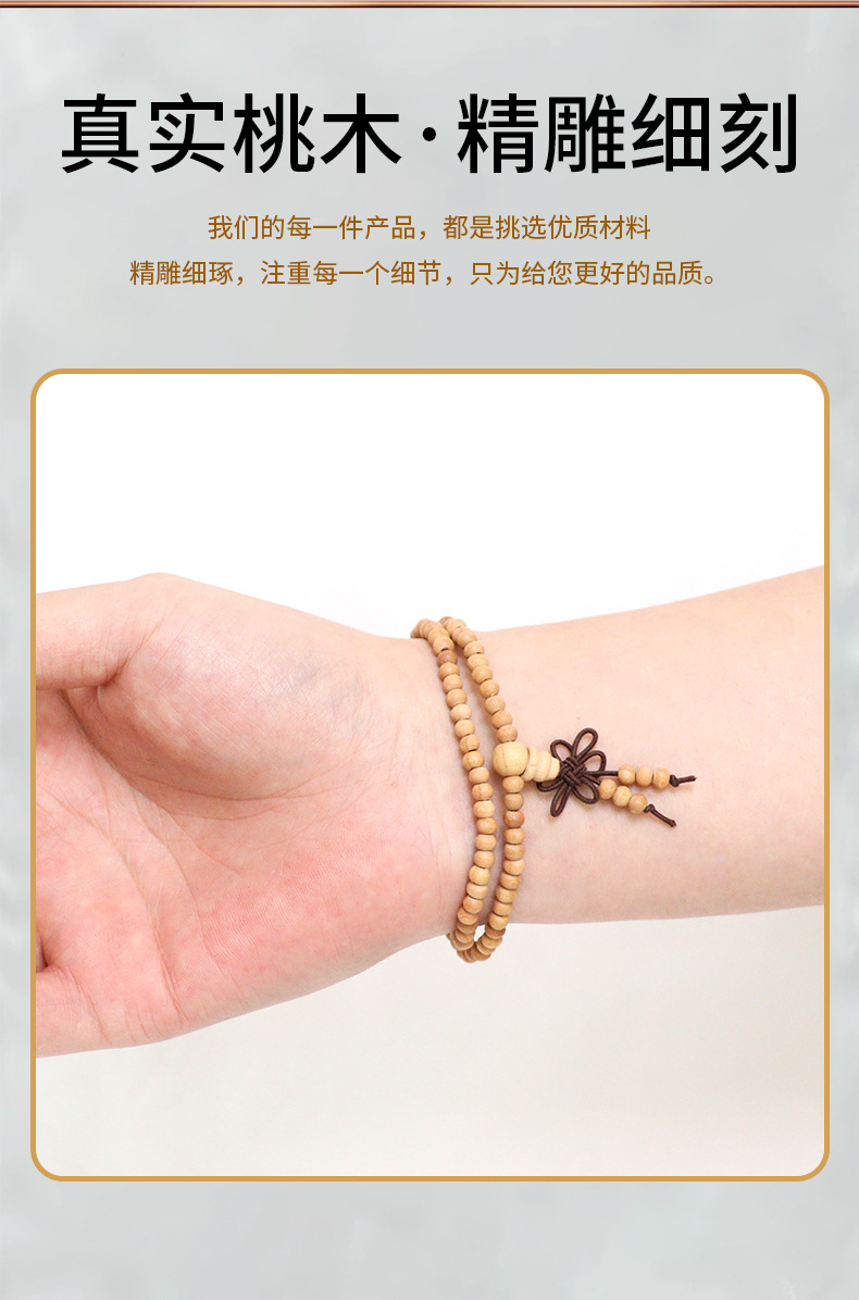桃木无漆念珠手串108颗圆珠 男女款厂家批发圆珠念佛桃木手链文玩
