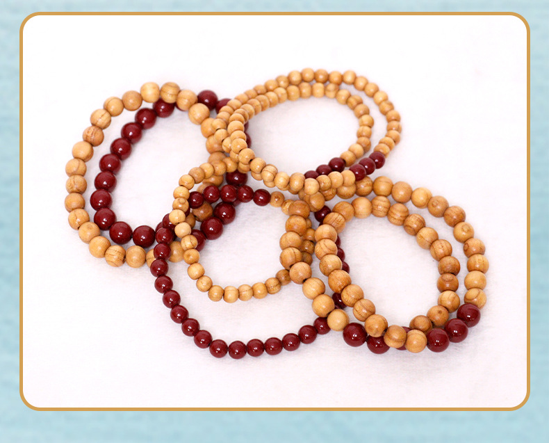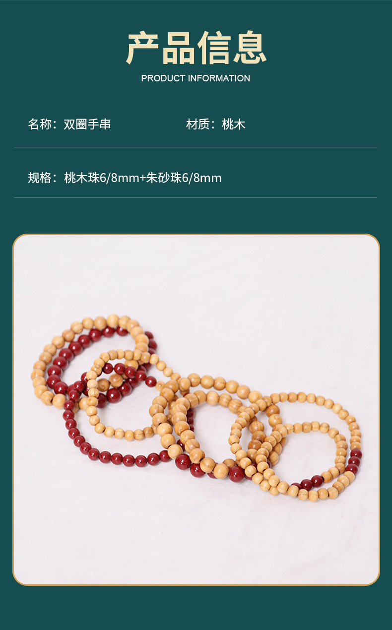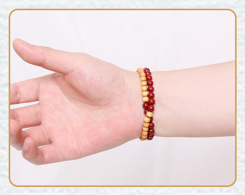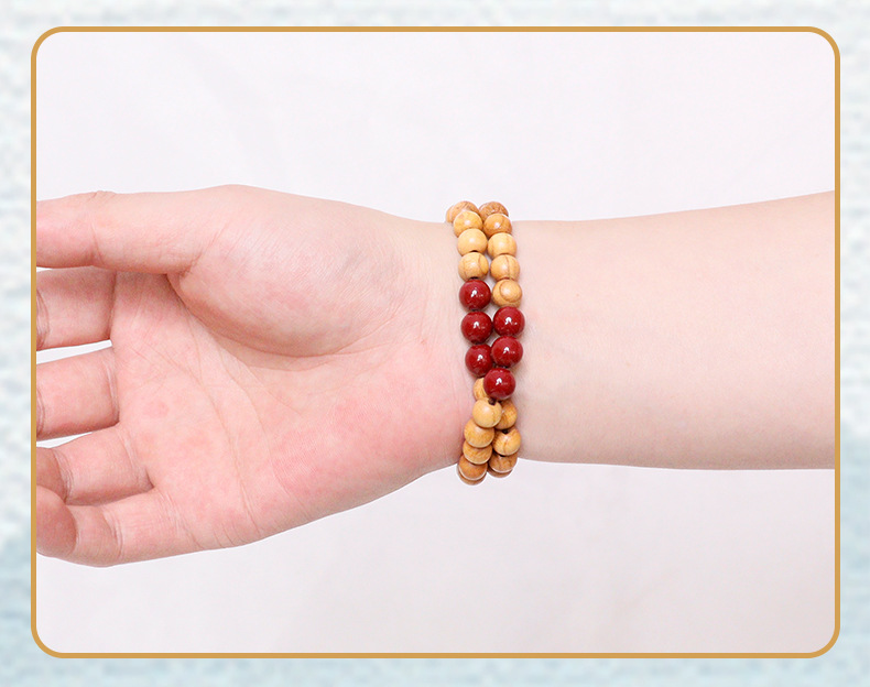双圈桃木手串朱砂珠出入平安汽车后视镜挂件车内挂饰桃木珠子手链