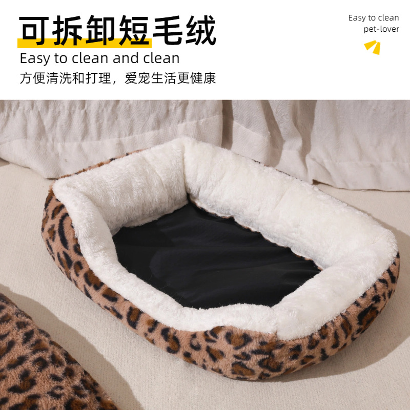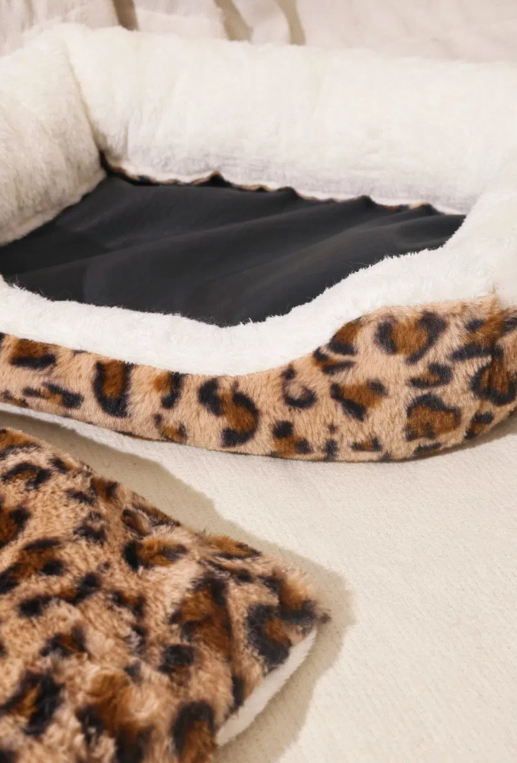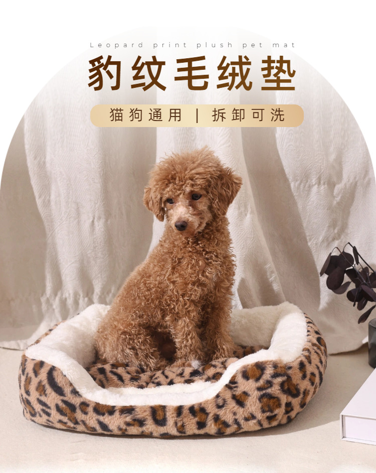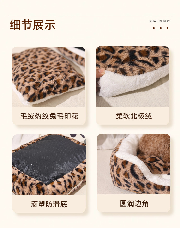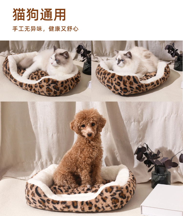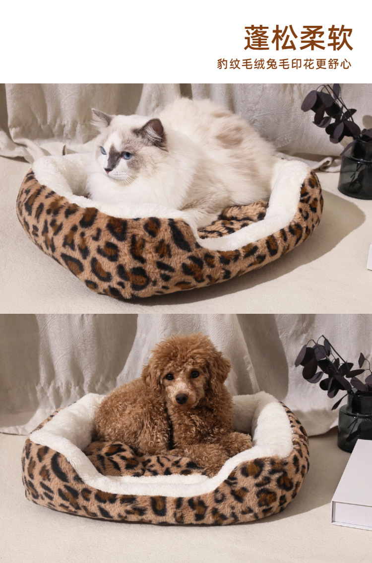 宠物窝豹纹毛绒垫可拆卸踩奶猫窝沙发舒适窝垫犬猫日用窝