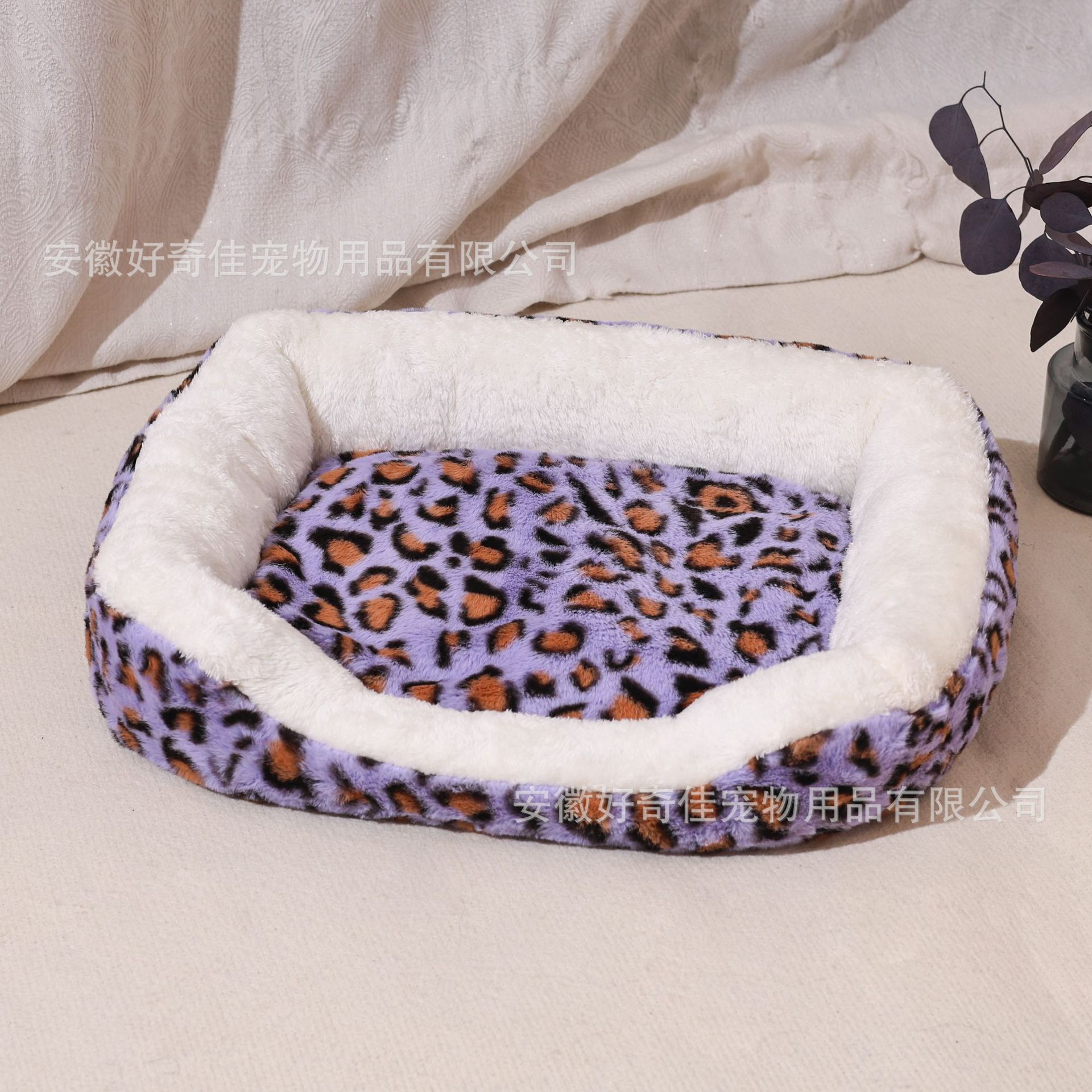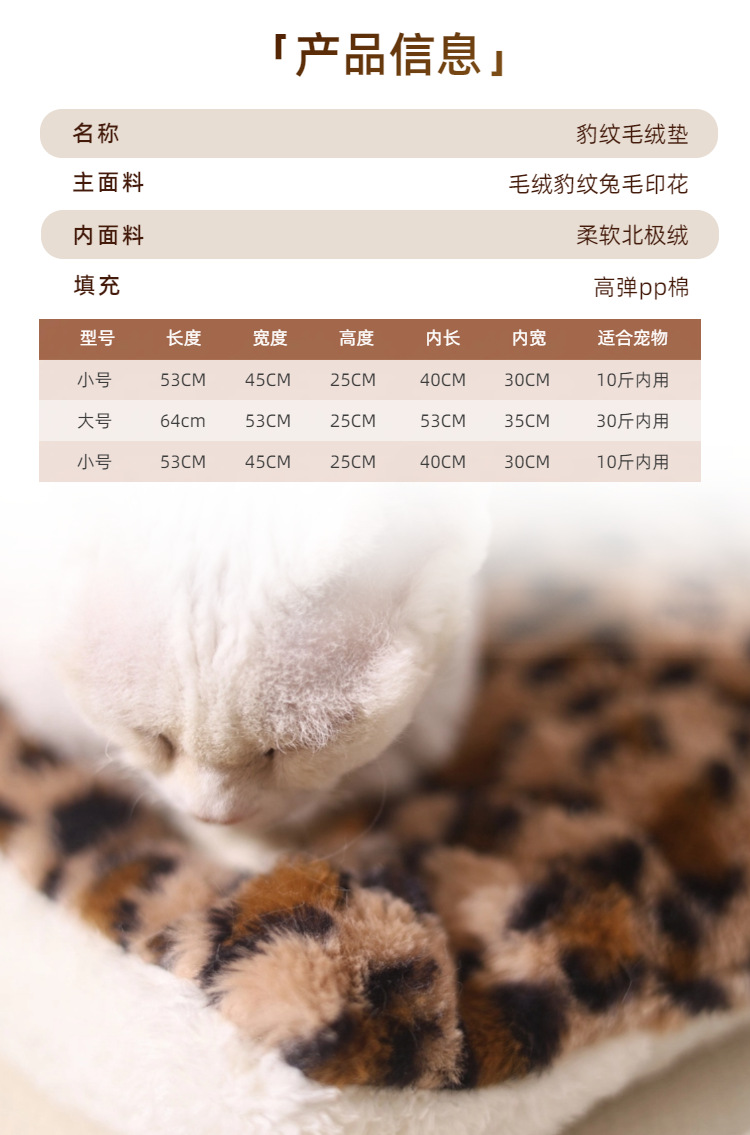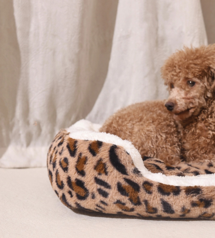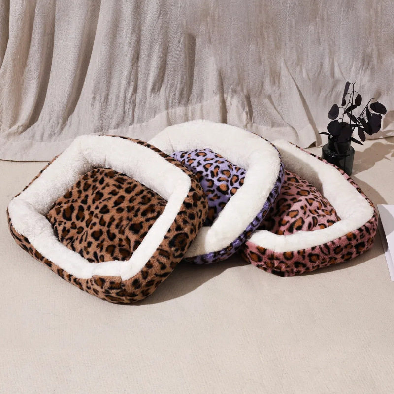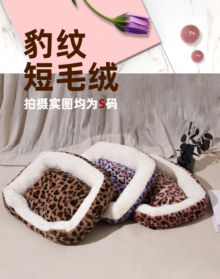 宠物窝豹纹毛绒垫可拆卸踩奶猫窝沙发舒适窝垫犬猫日用窝
